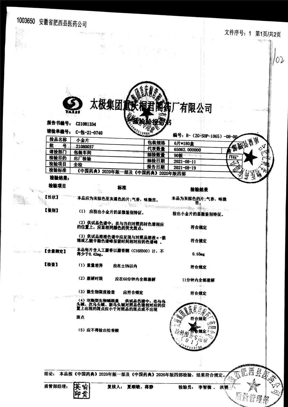 药检报告