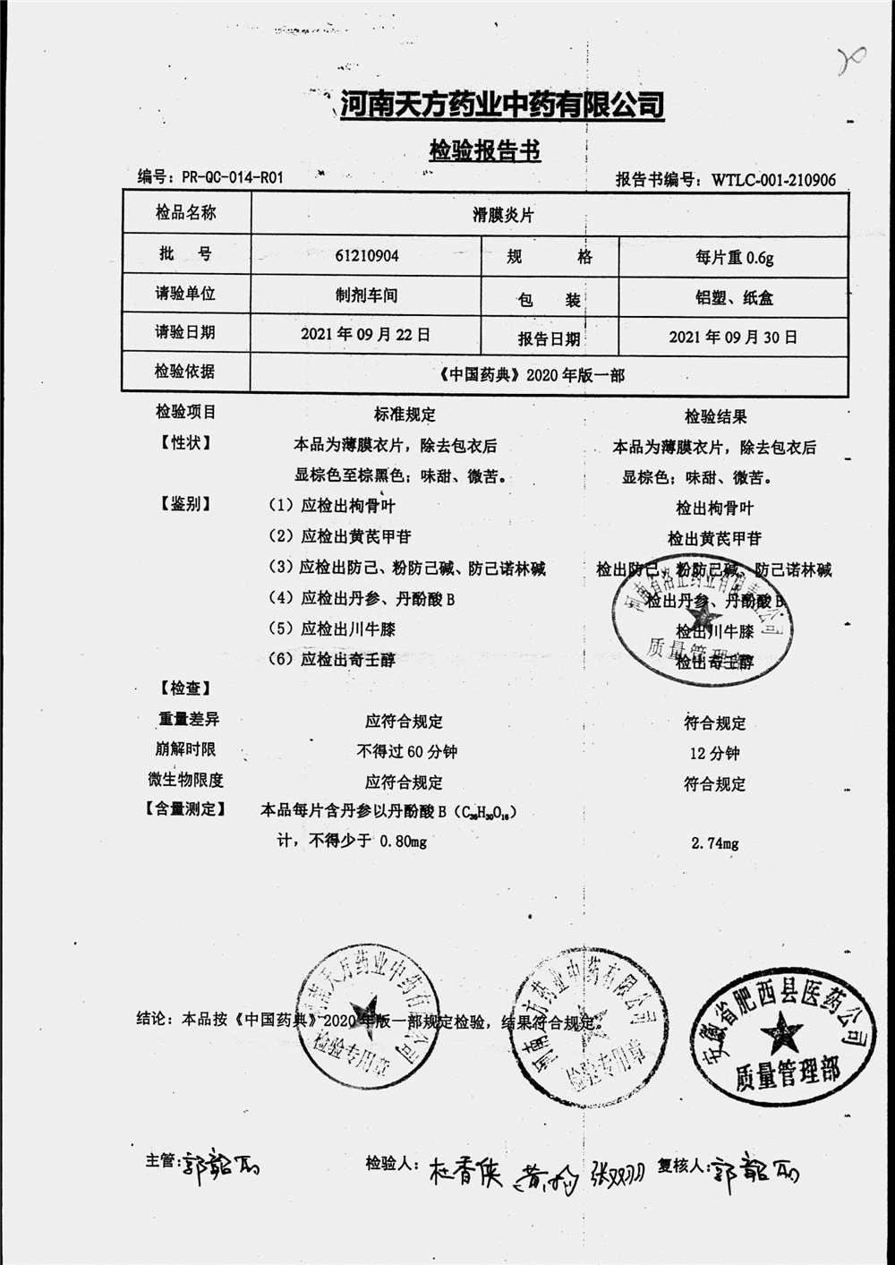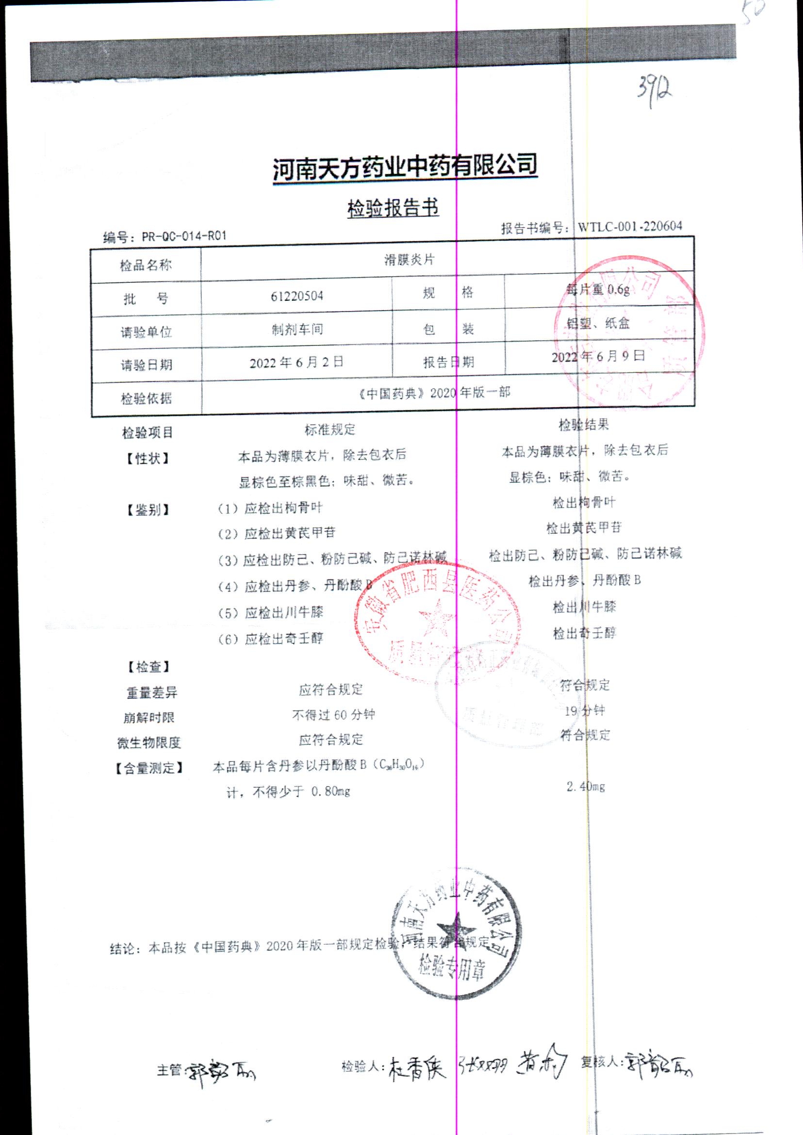 药检报告