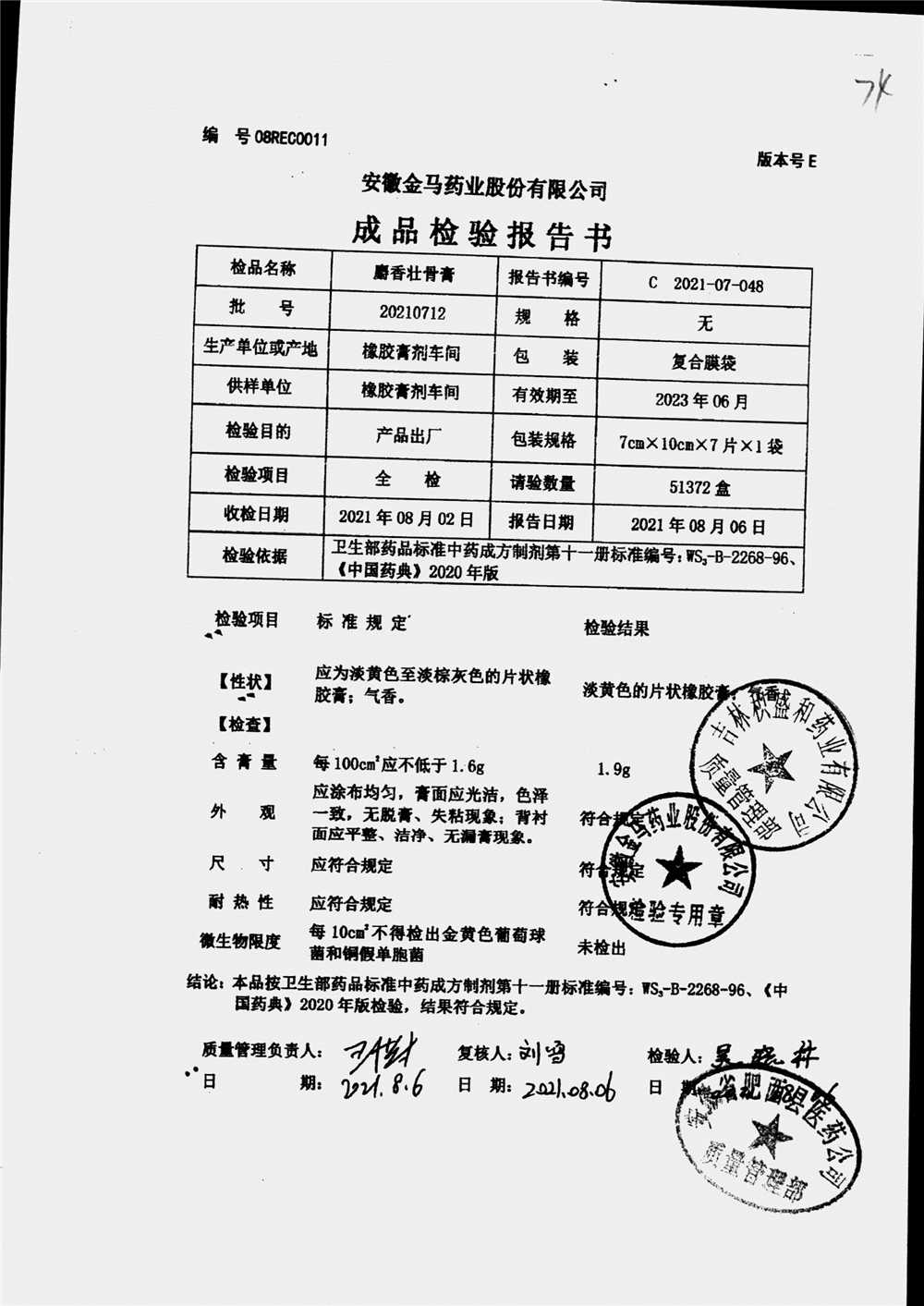 麝香壮骨膏 | 7cm*10cm*7片/袋 | 20210712 | 查看详情 |