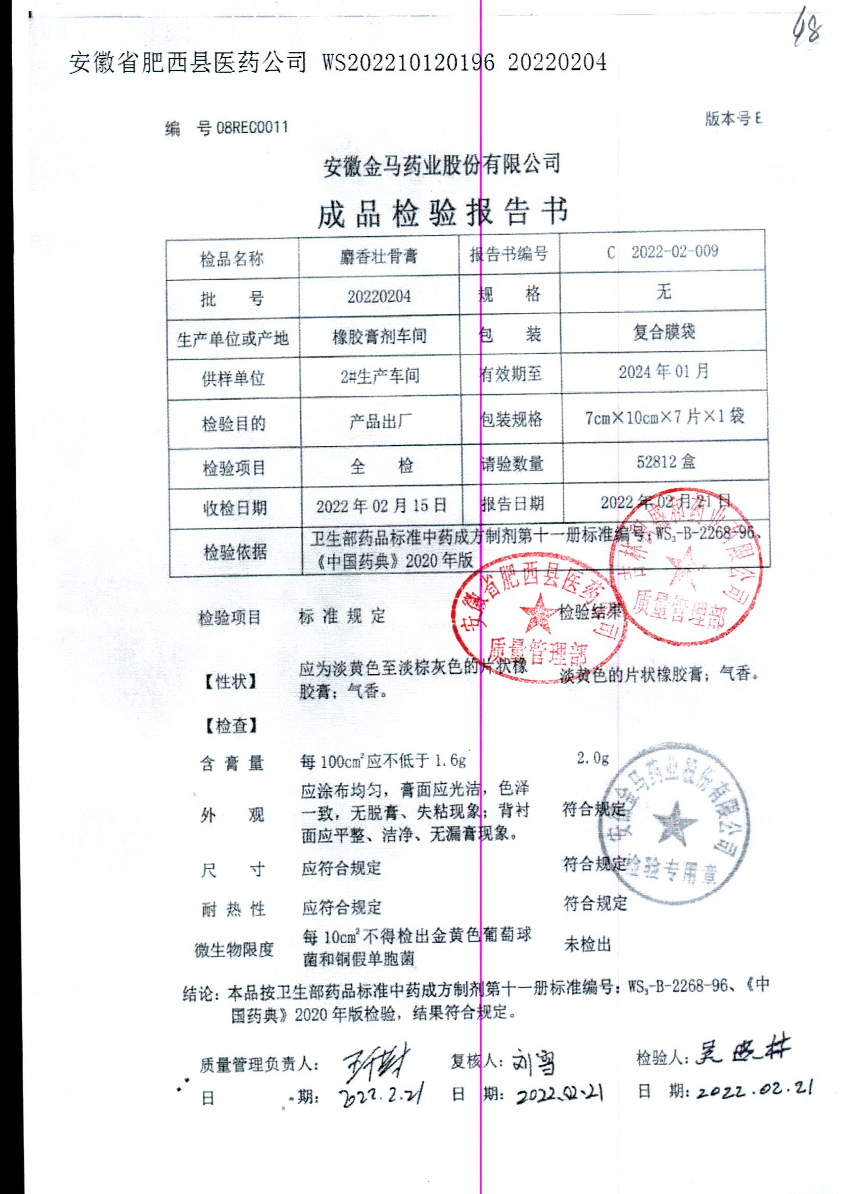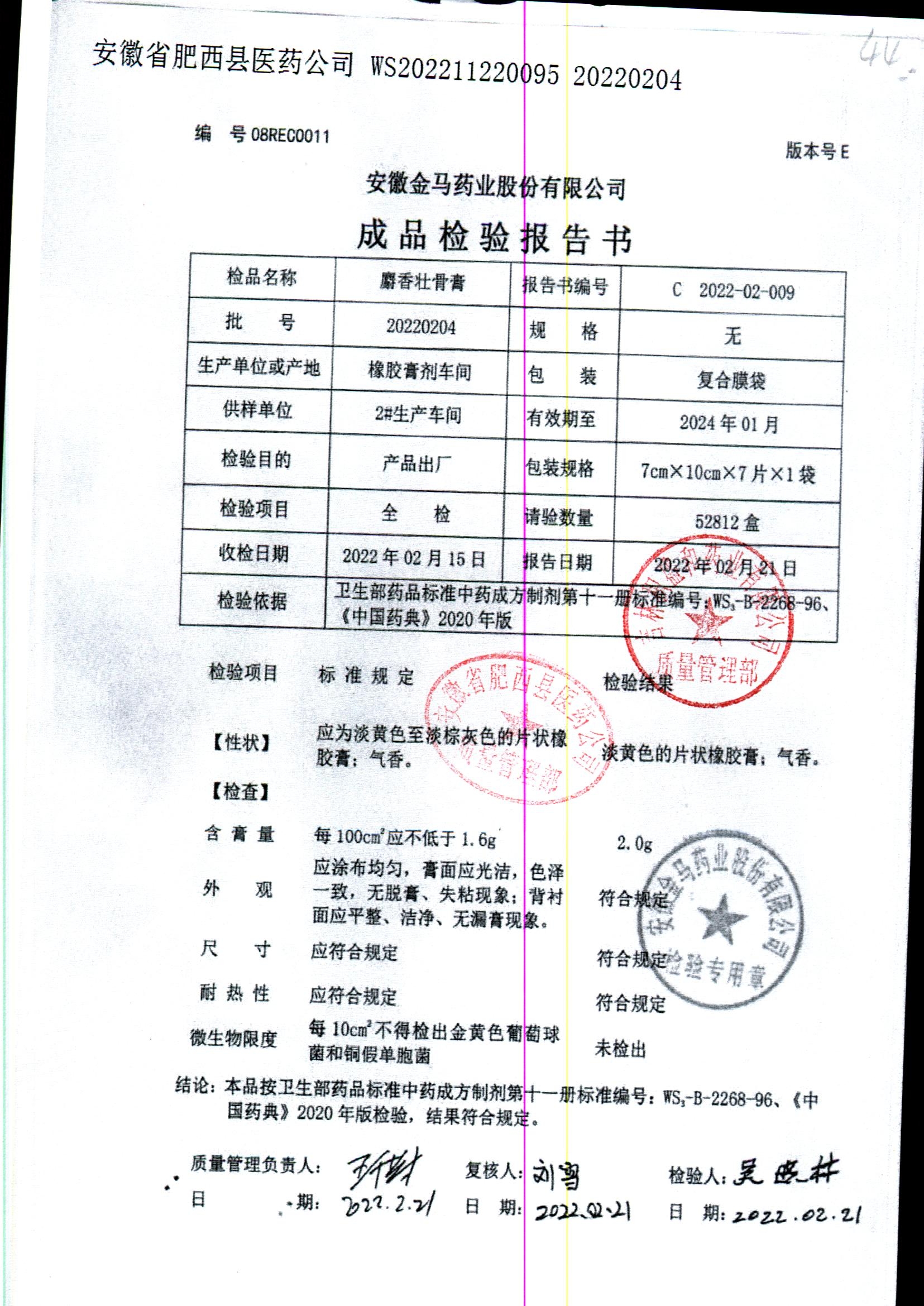 麝香壮骨膏 | 7cm*10cm*7片/袋 | 20220204 | 查看详情 |