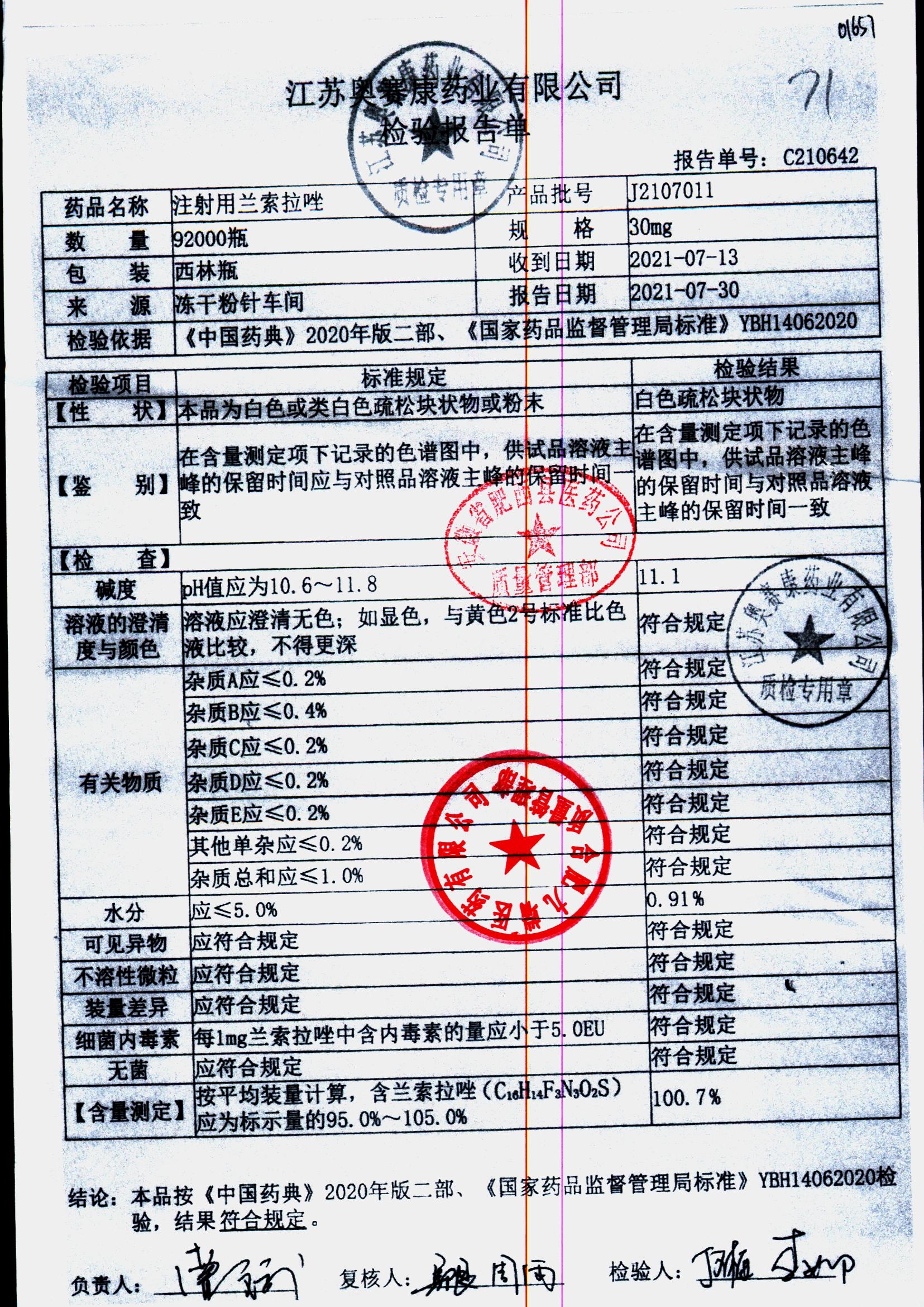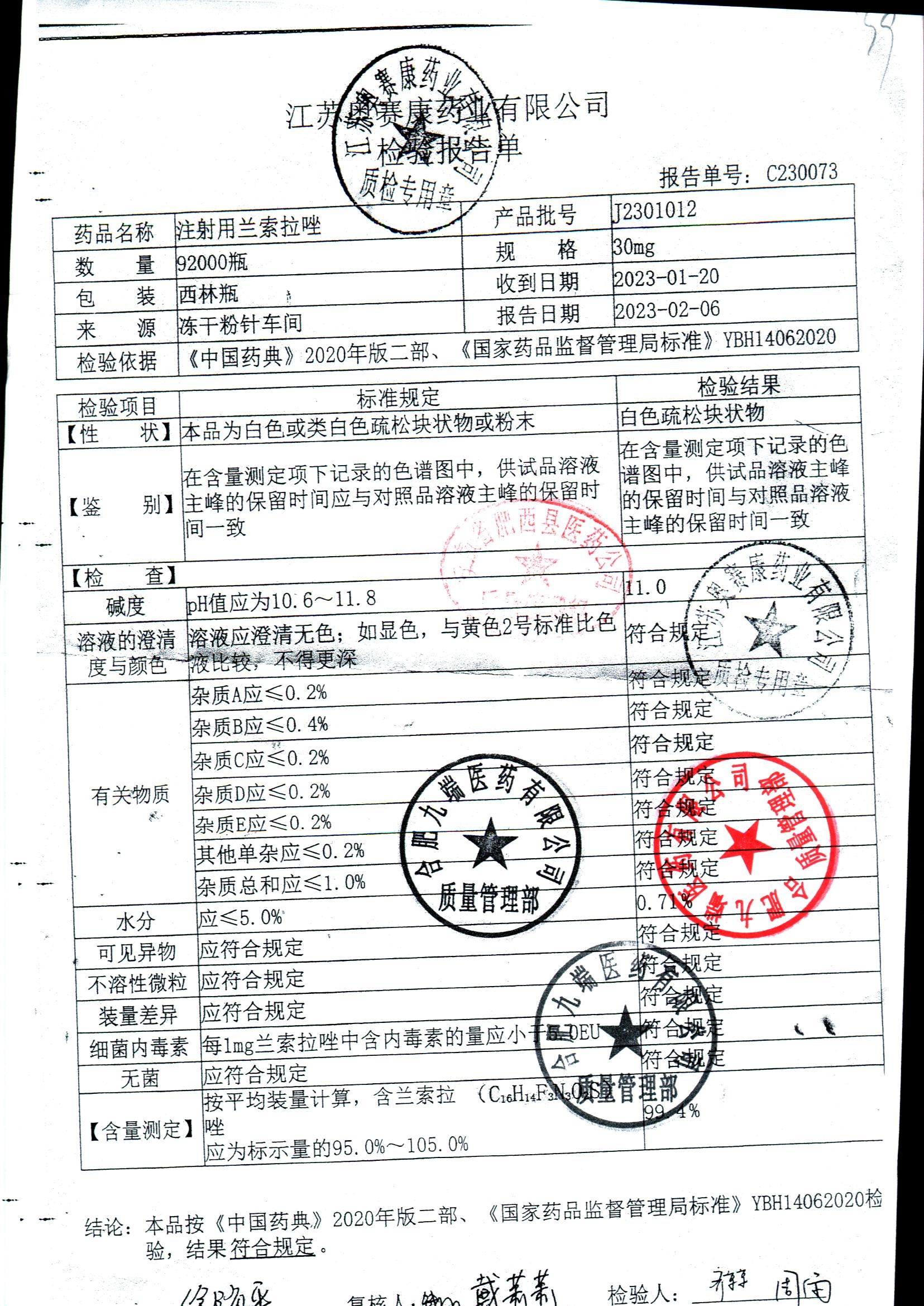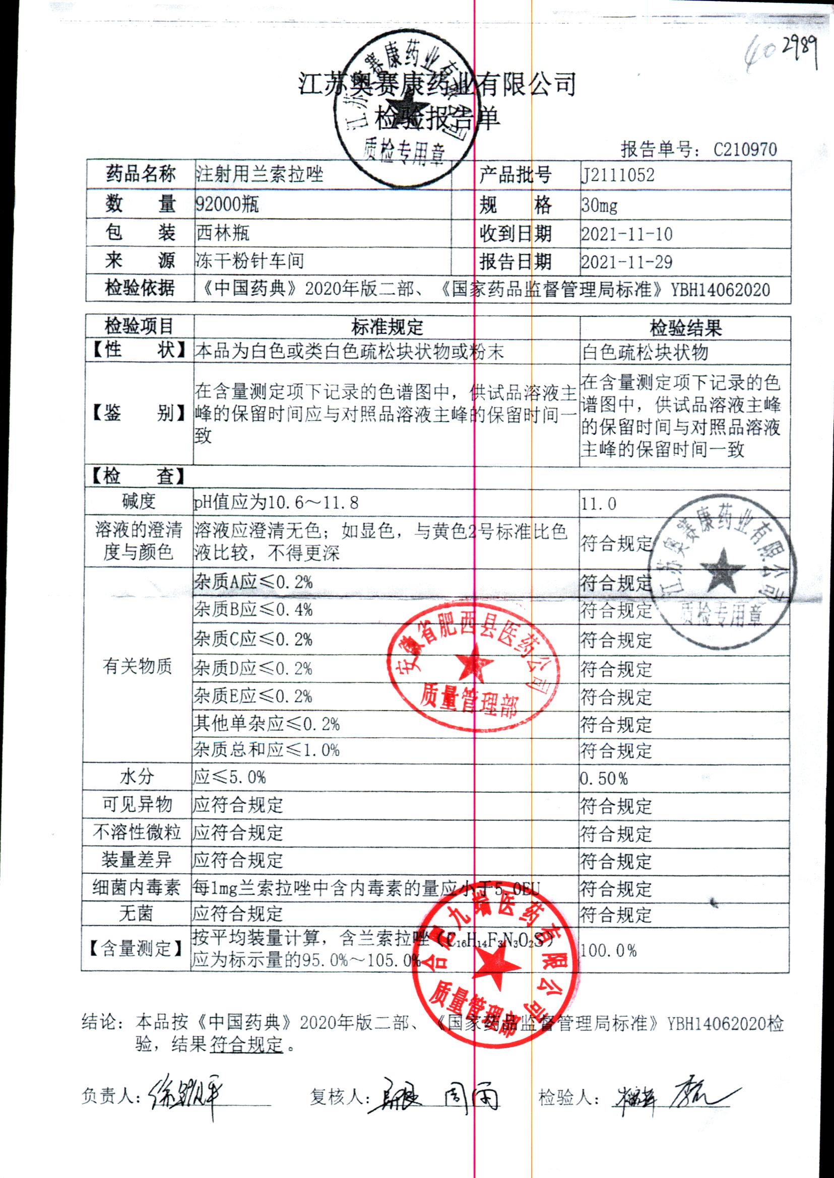 注射用兰索拉唑 | 30mg*10瓶 | J2305022 | 查看详情 |