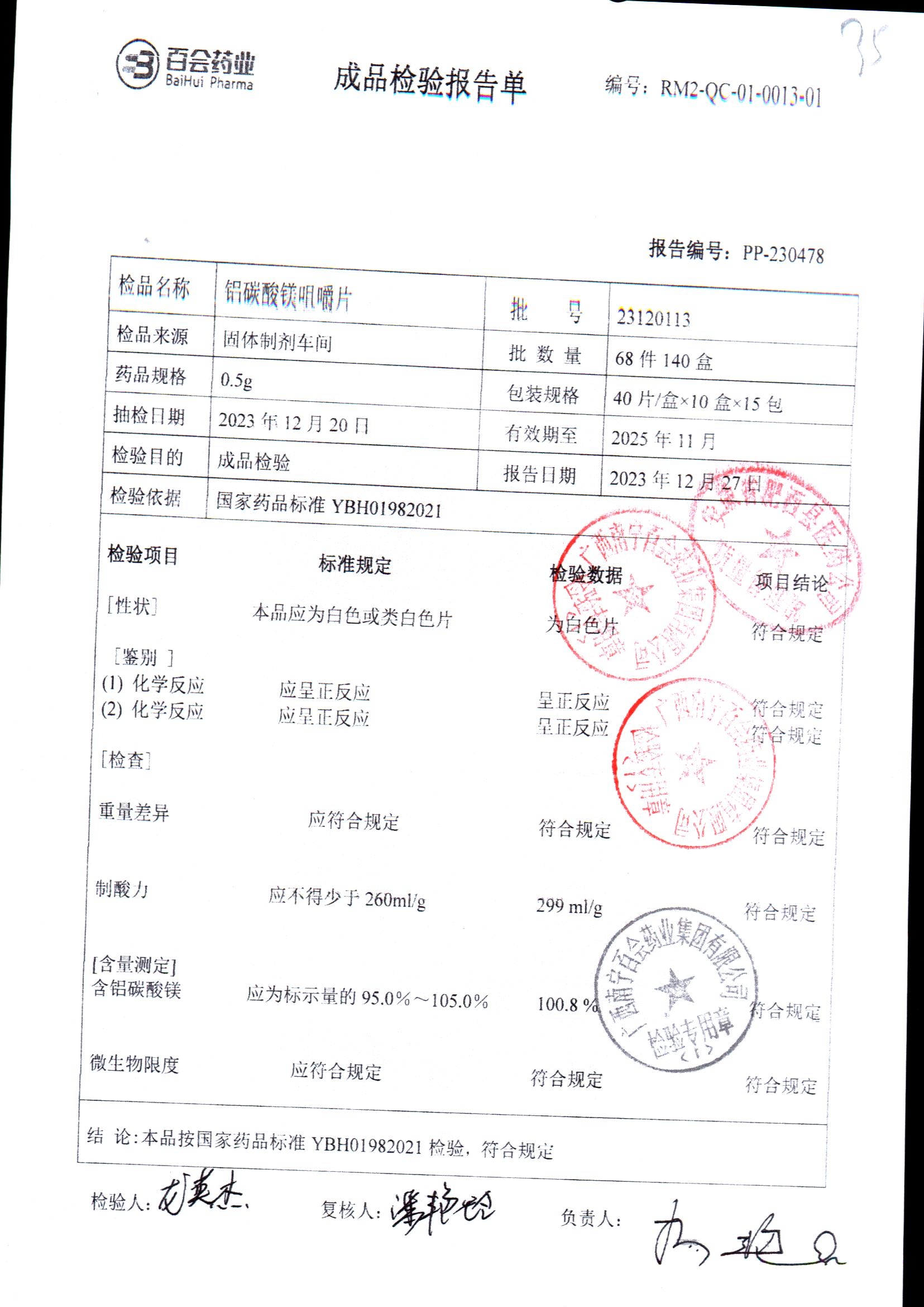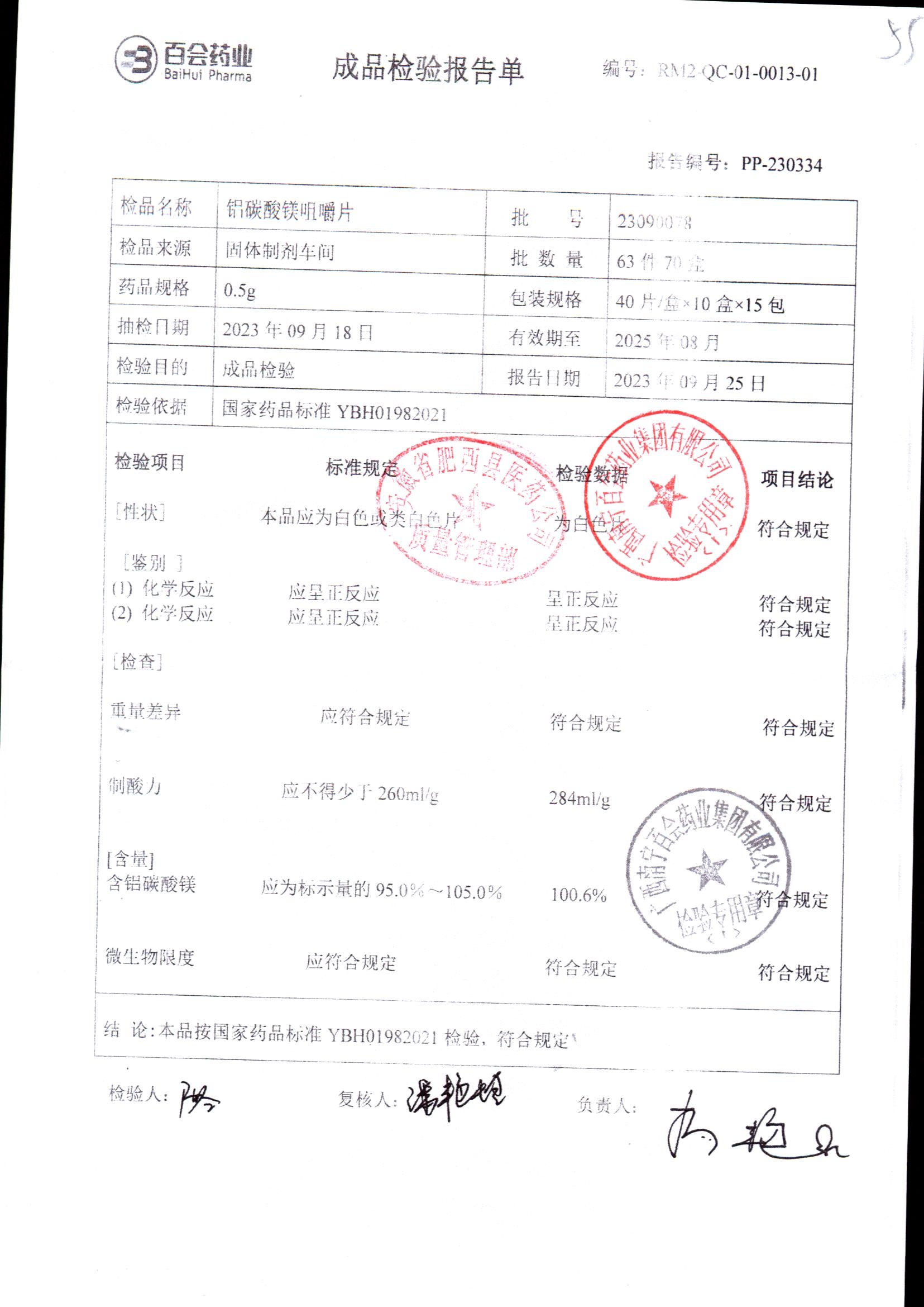 铝碳酸镁咀嚼片 | 0.5g*40片 | 23120113 | 查看详情 |