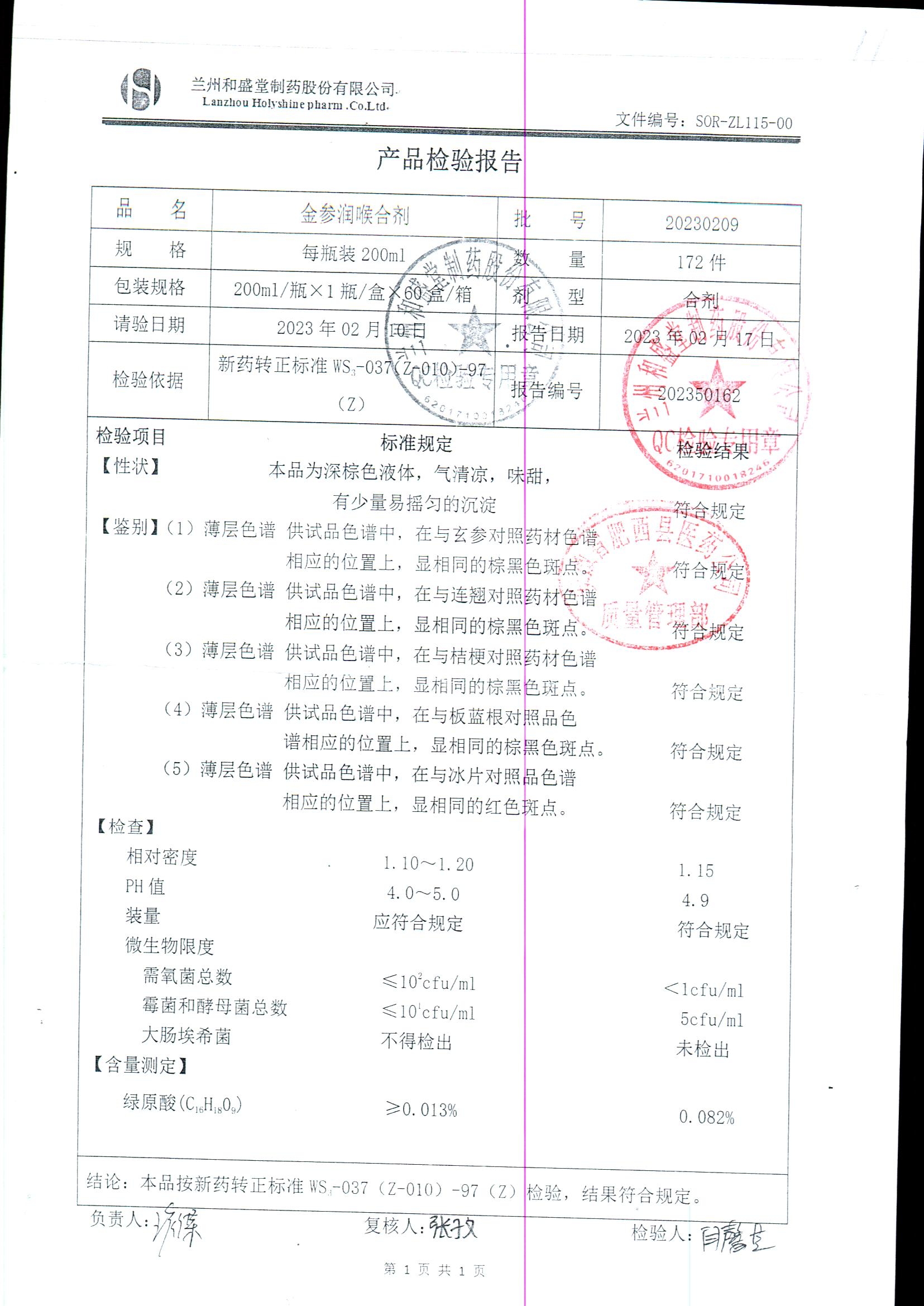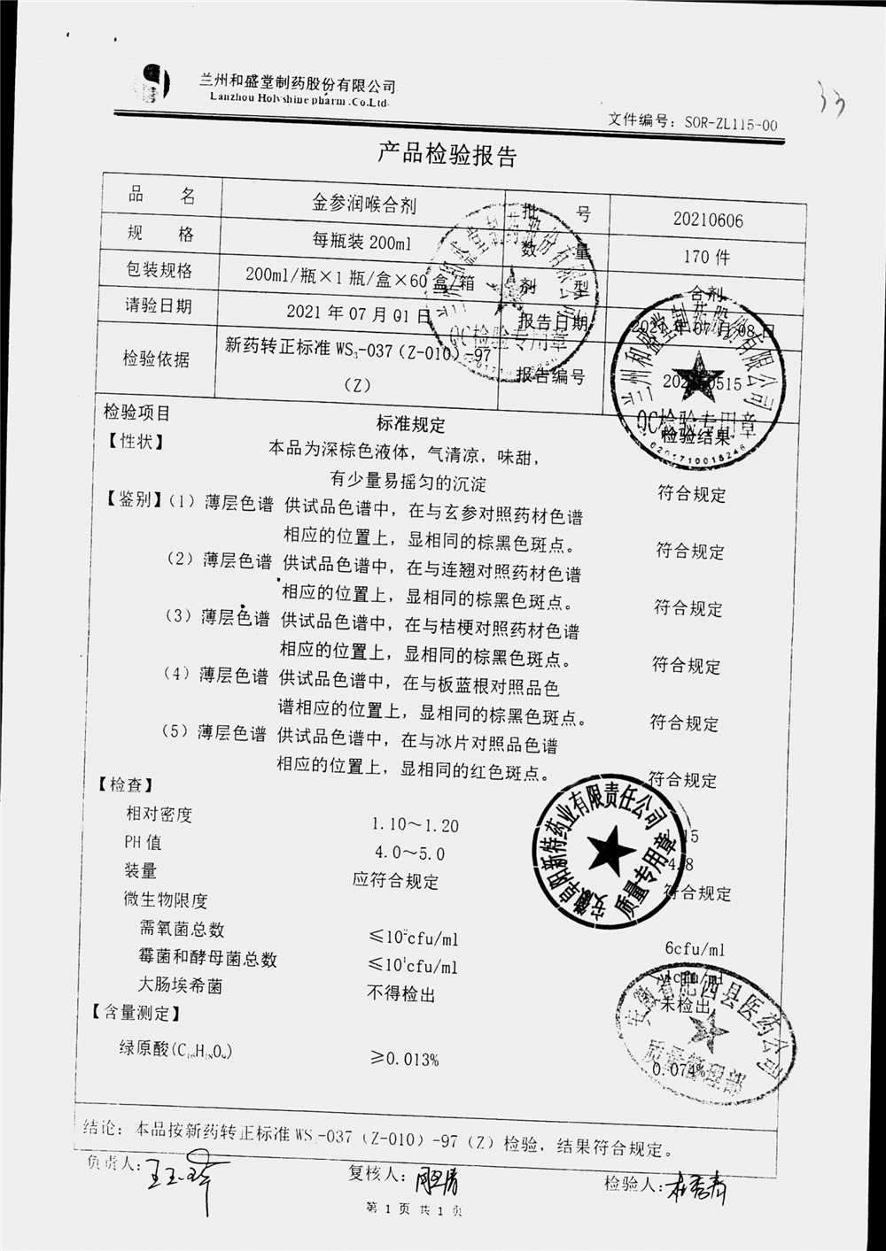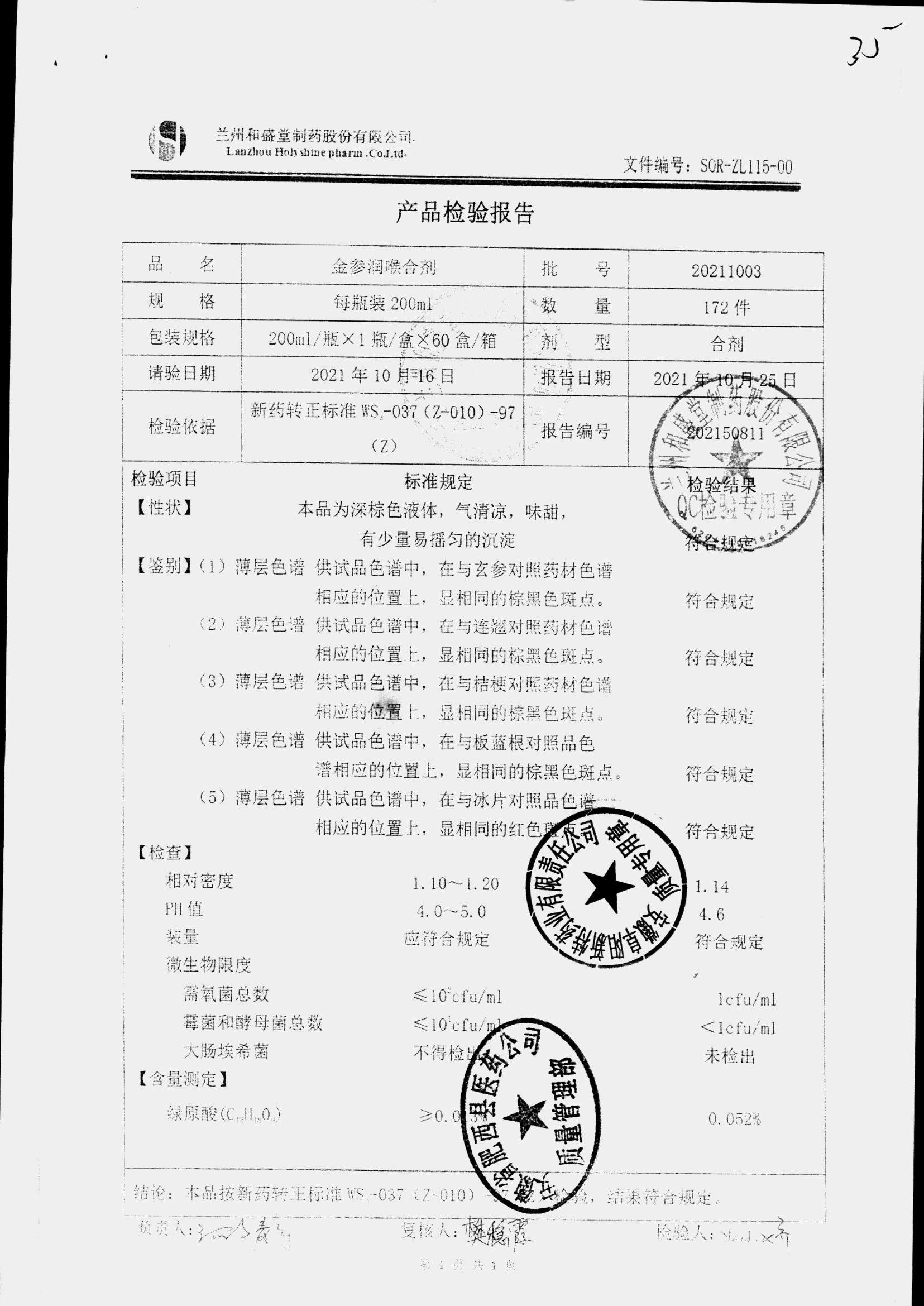 药检报告