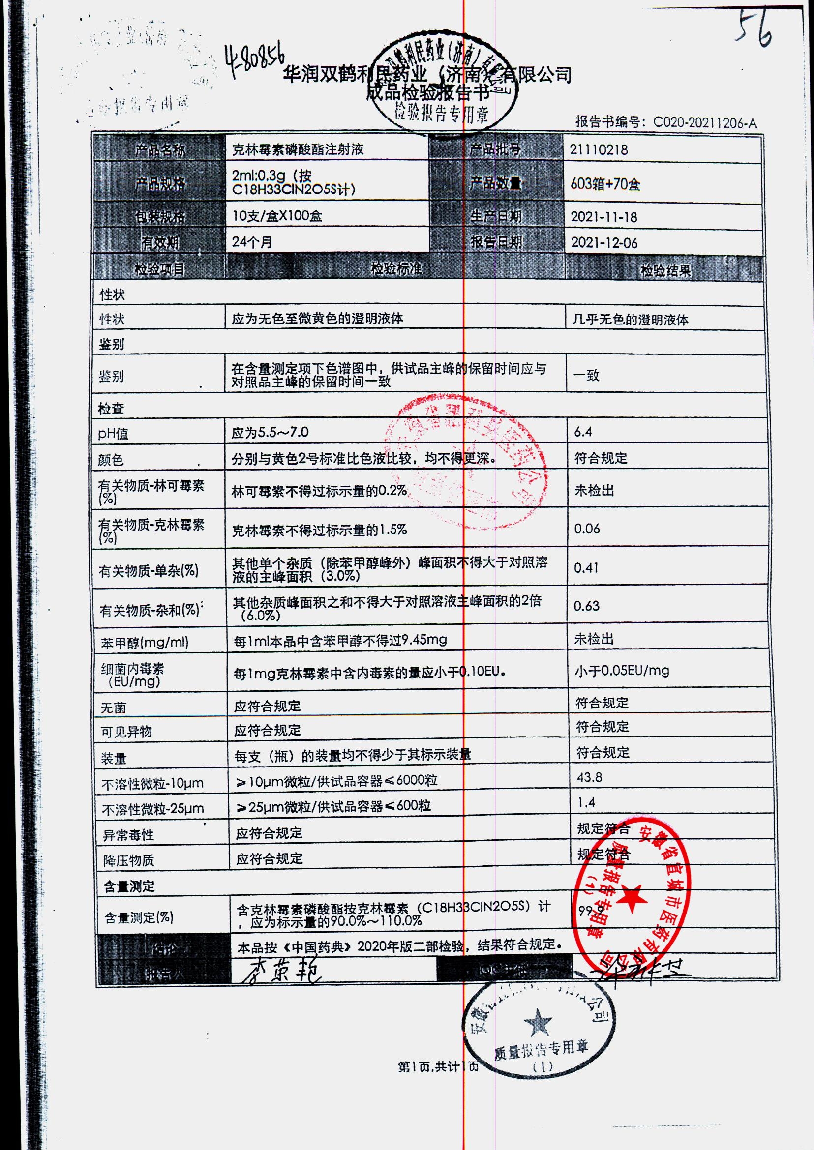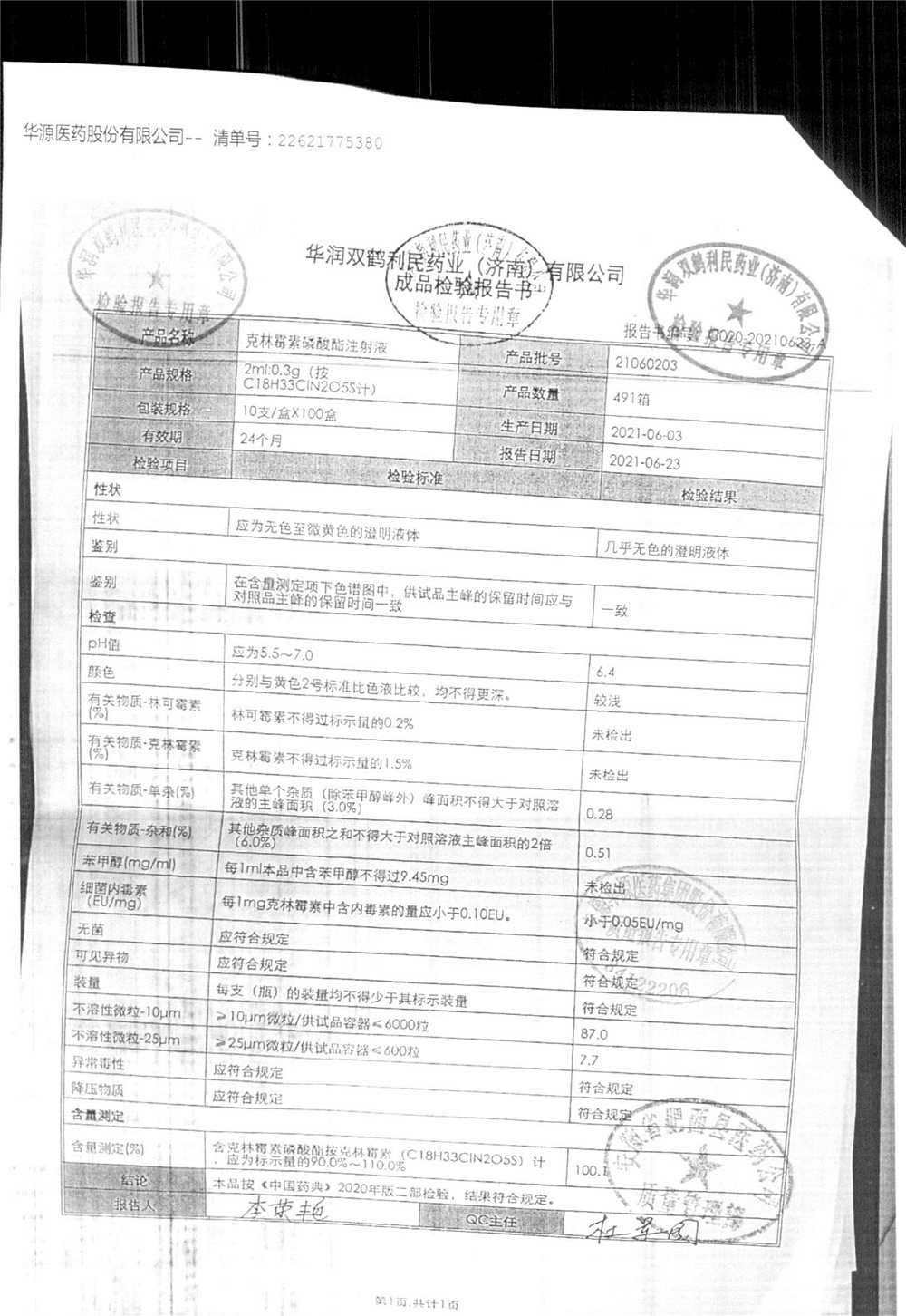 克林霉素磷酸酯注射液 | 2ml:0.3g*10支 | 21100221 | 查看详情 |