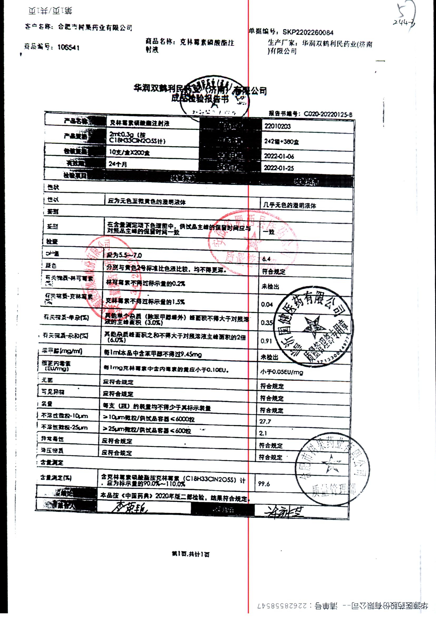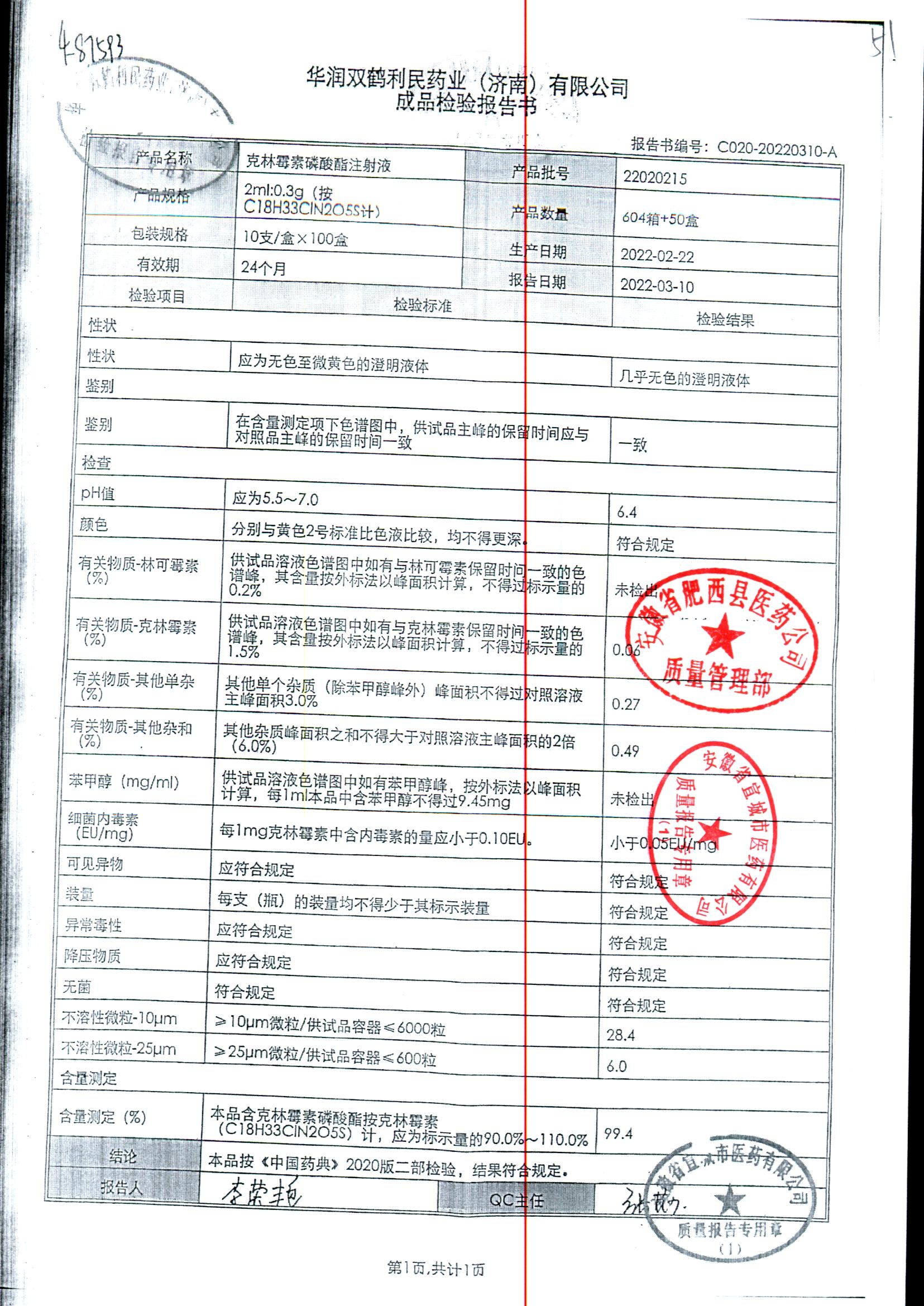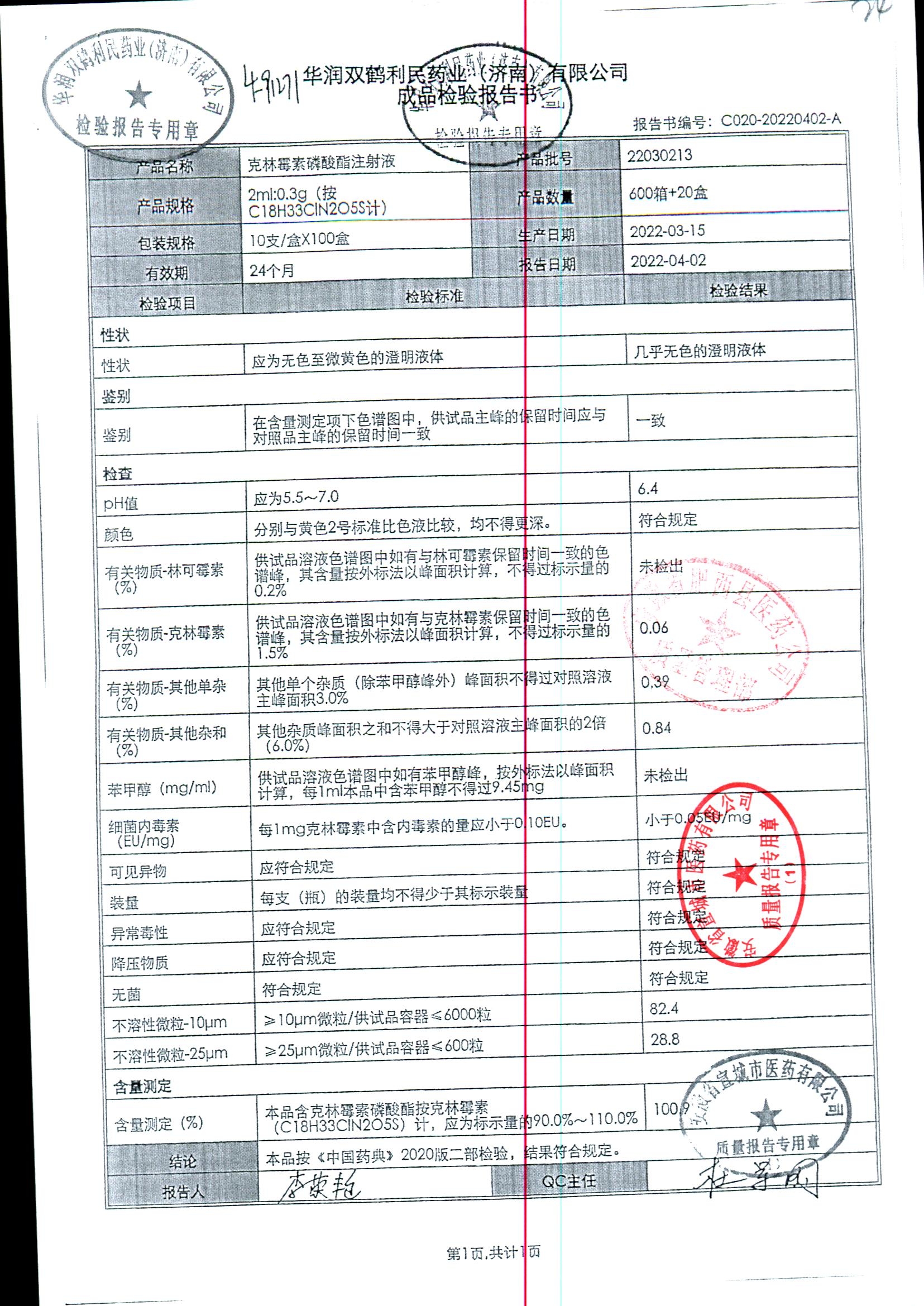 克林霉素磷酸酯注射液 | 2ml:0.3g*10支 | 22020309 | 查看详情 |