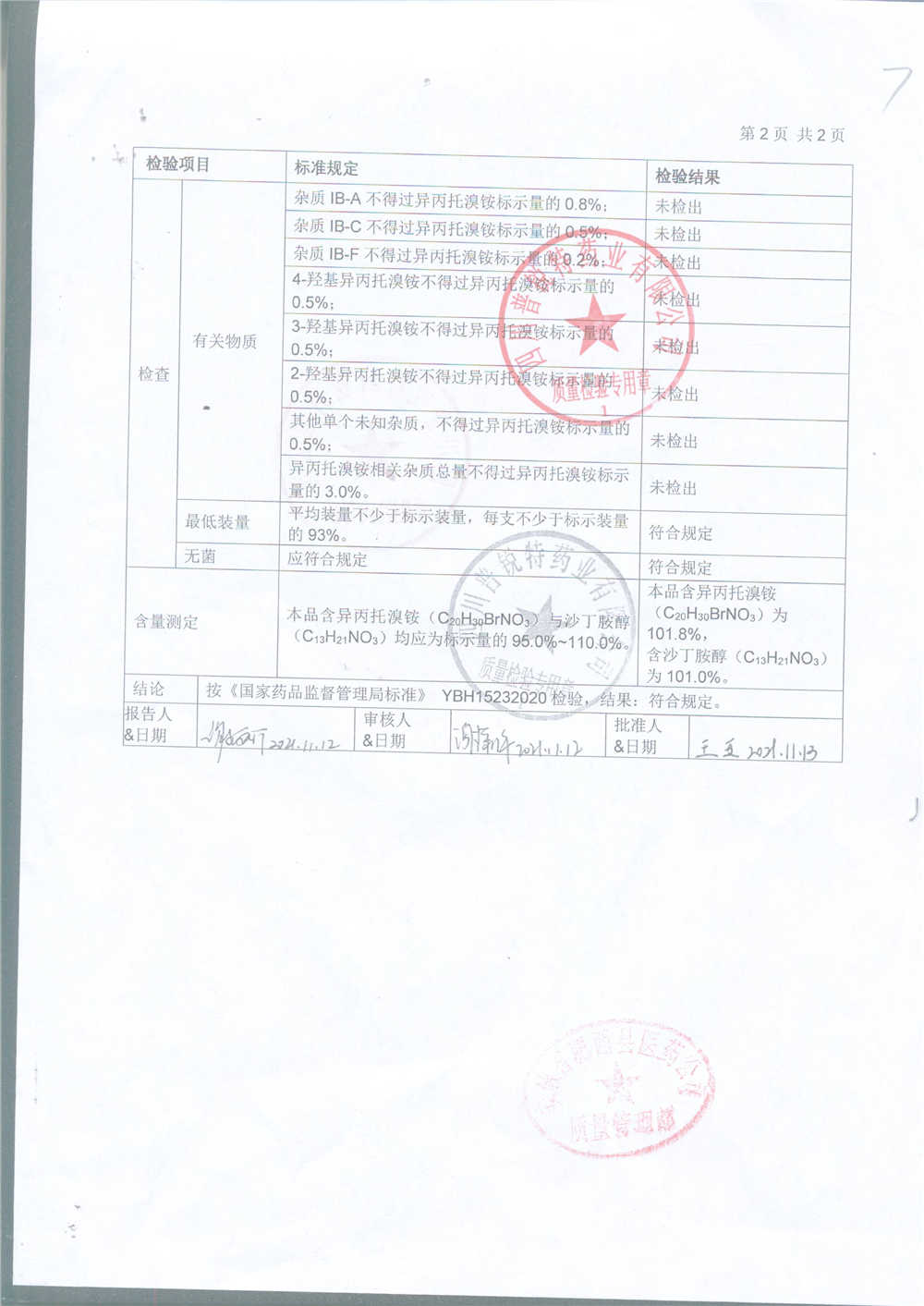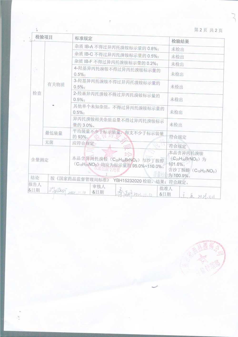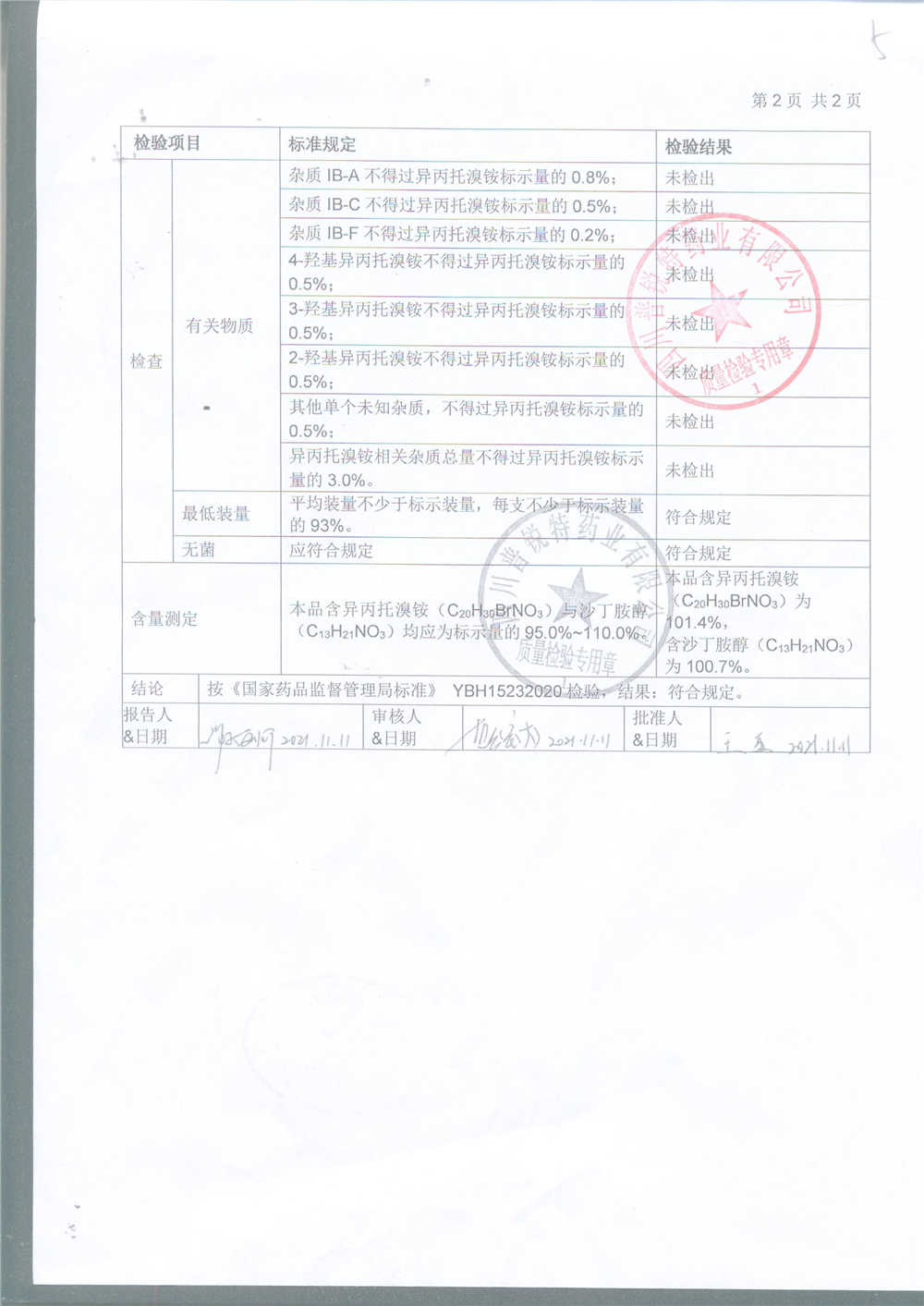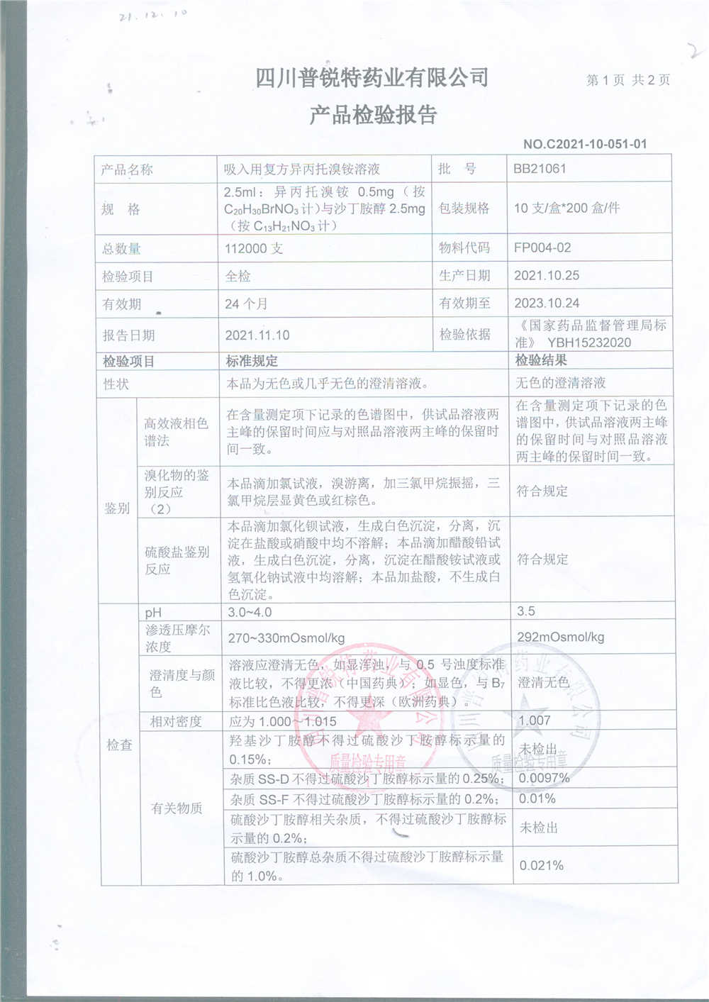 吸入用复方异丙托溴铵溶液 | 2.5ml*10支(异丙托溴铵0.5mg与沙丁胺醇2.5mg) | BB21061(2/2) | 查看详情 |