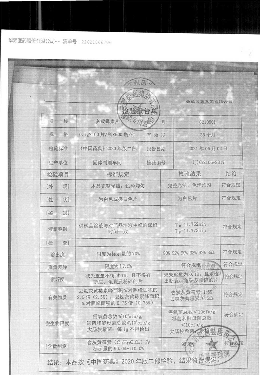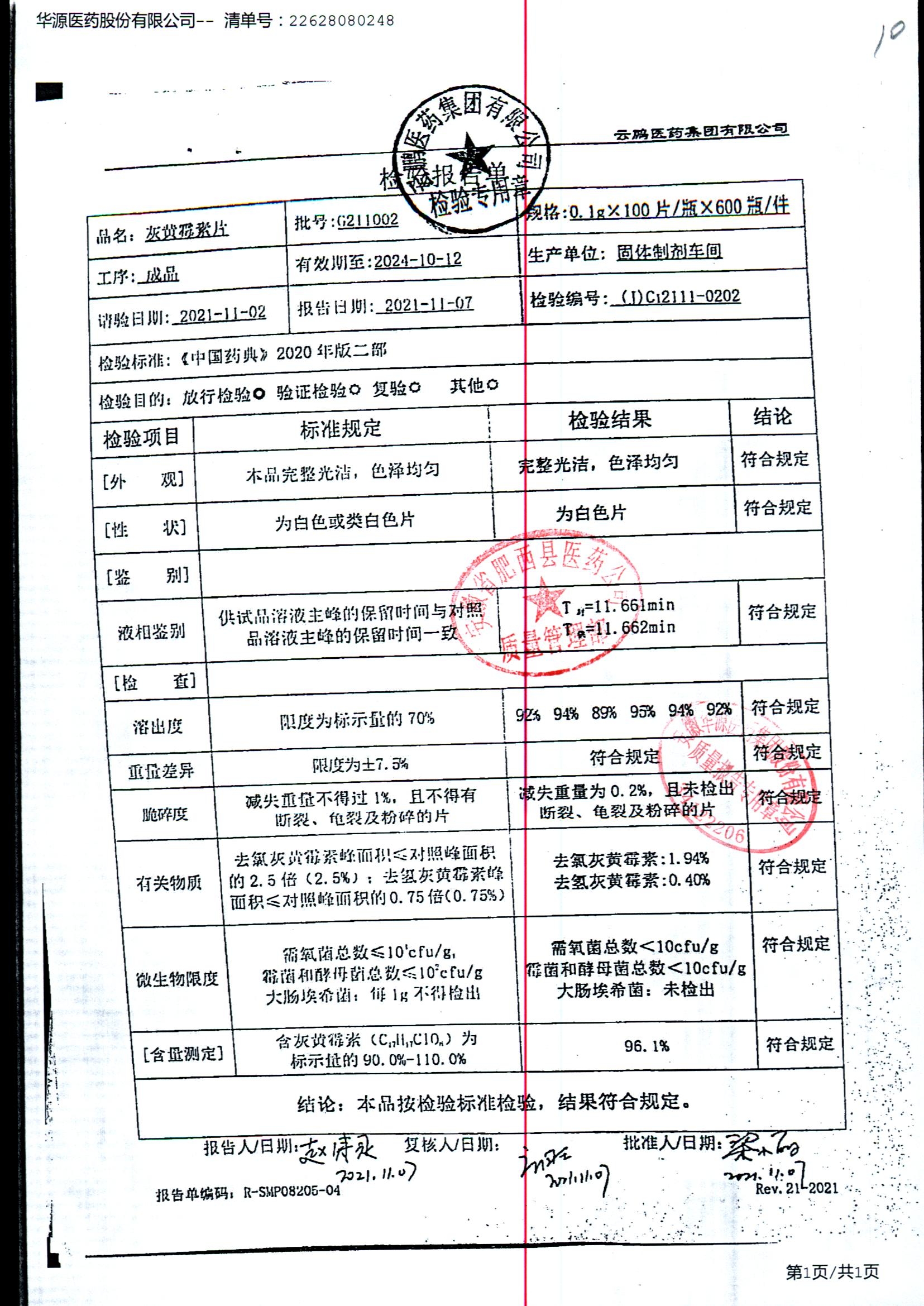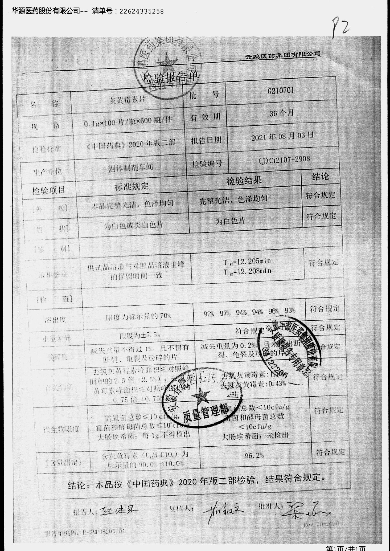 灰黄霉素片