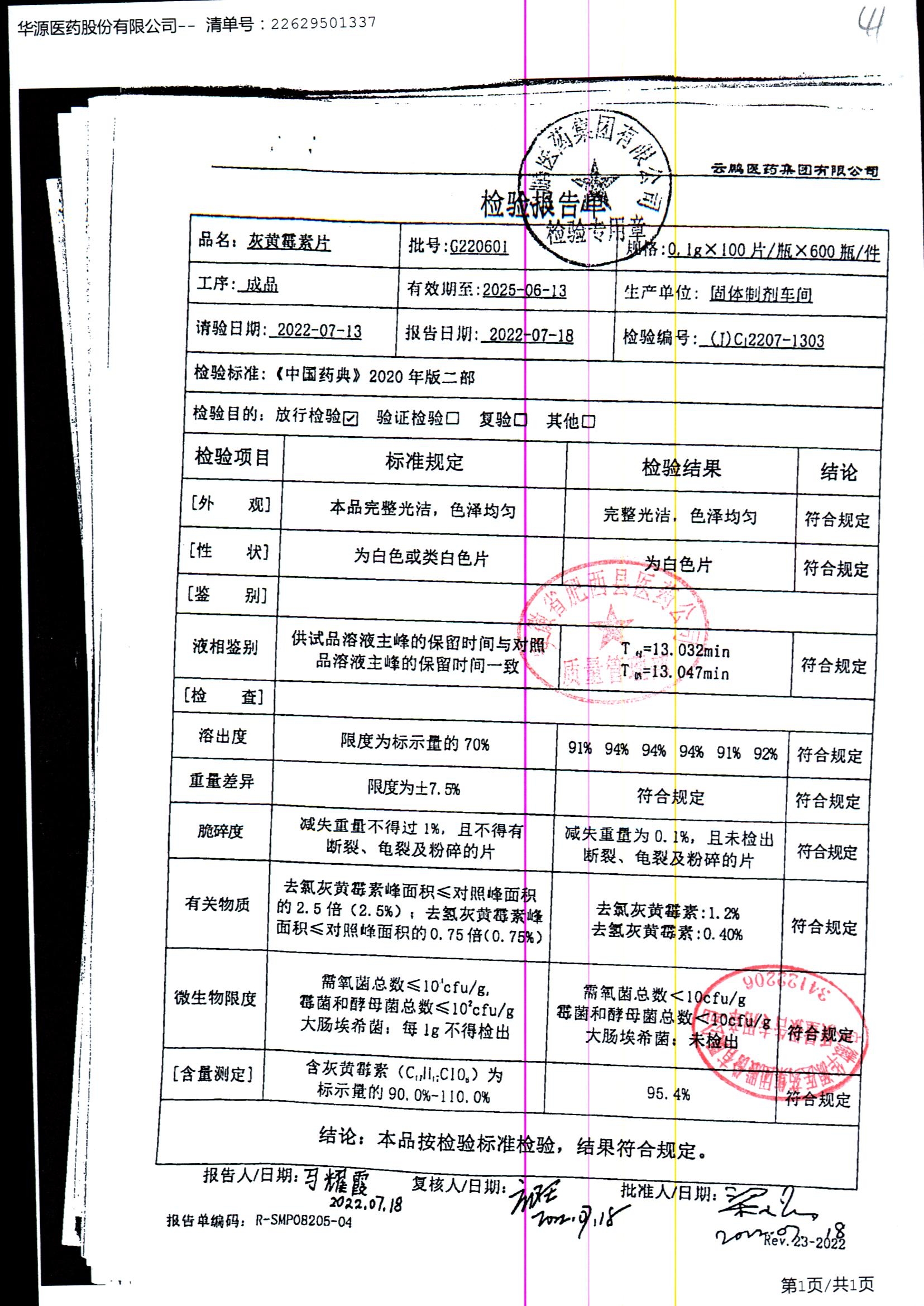 药检报告