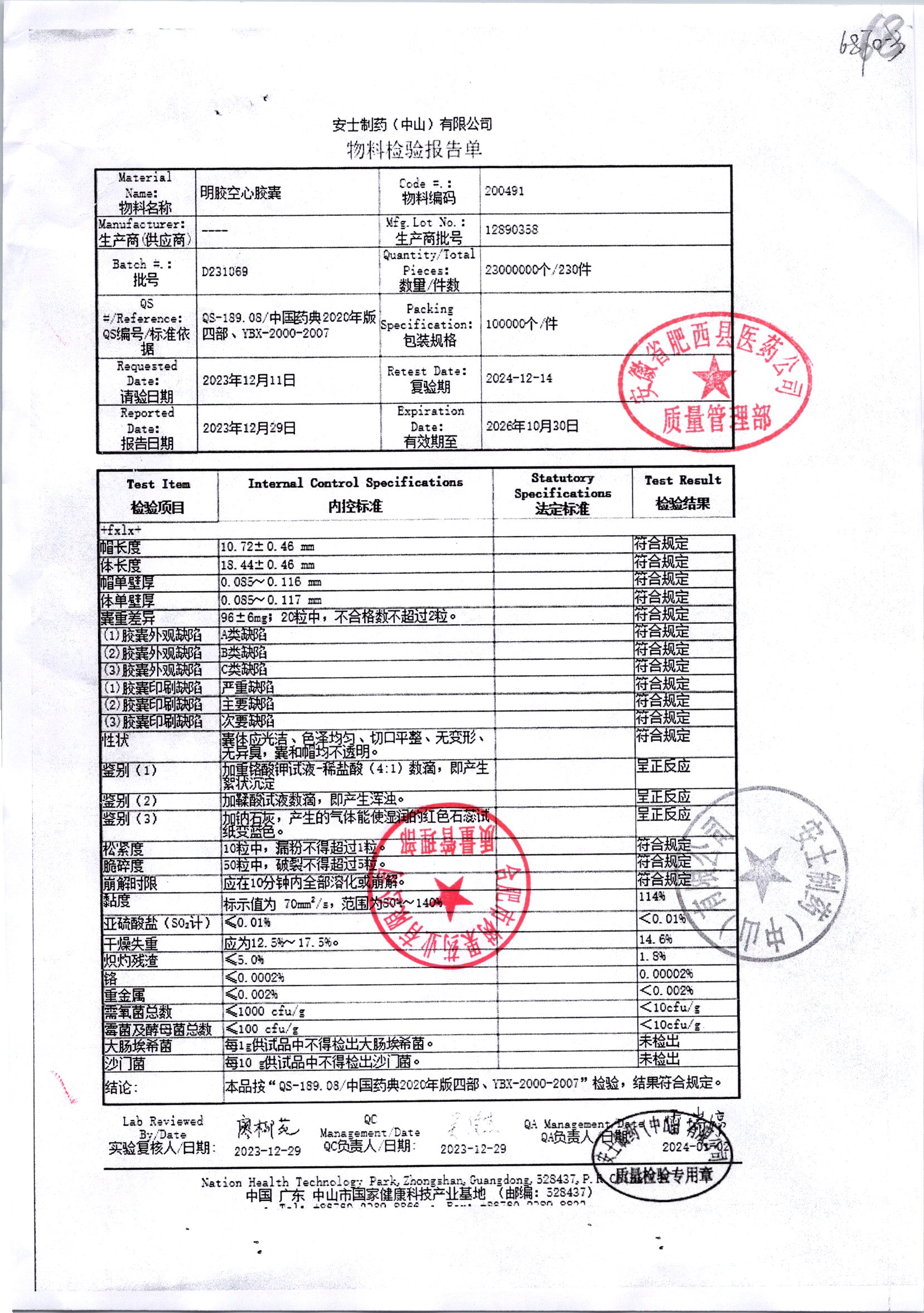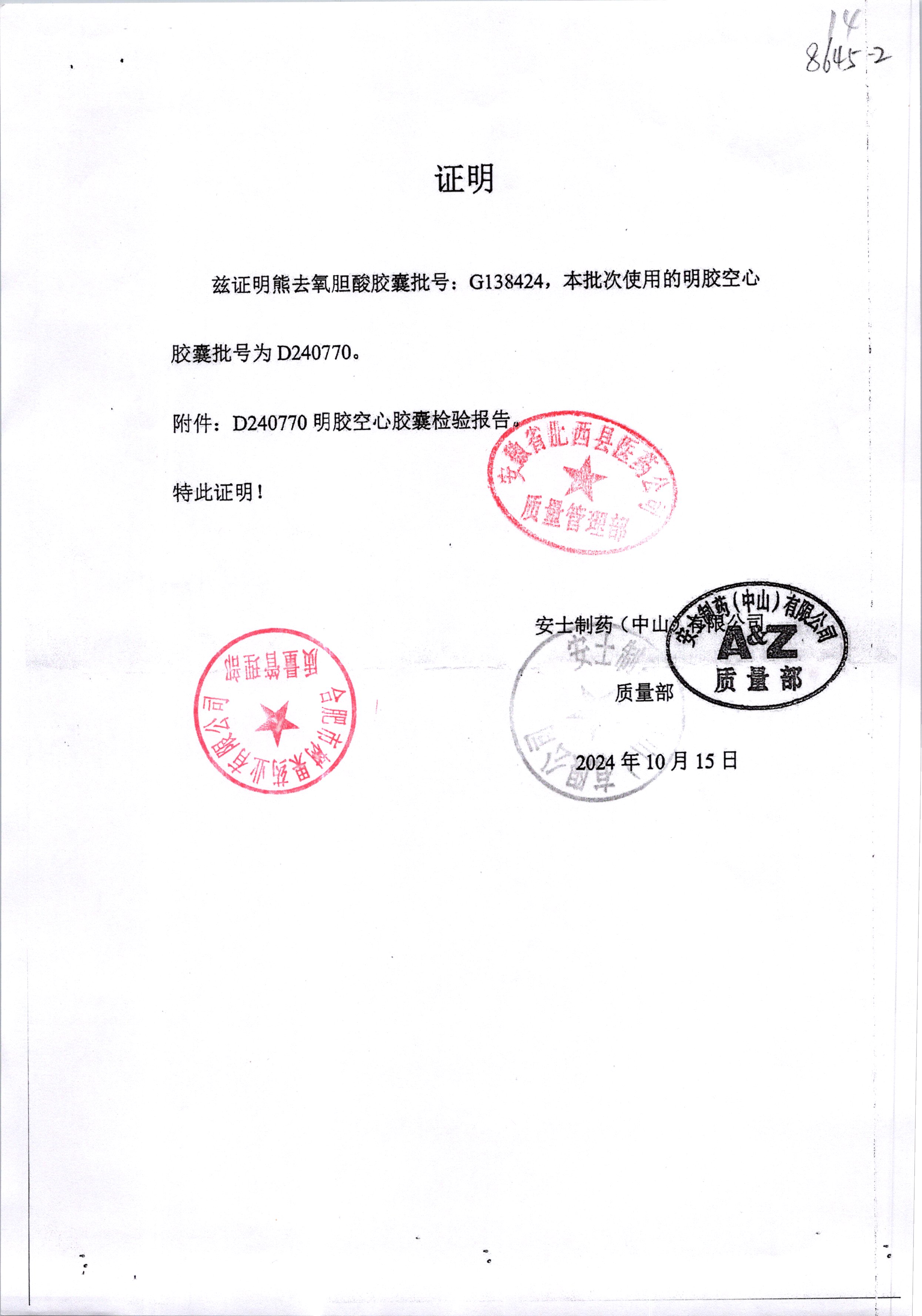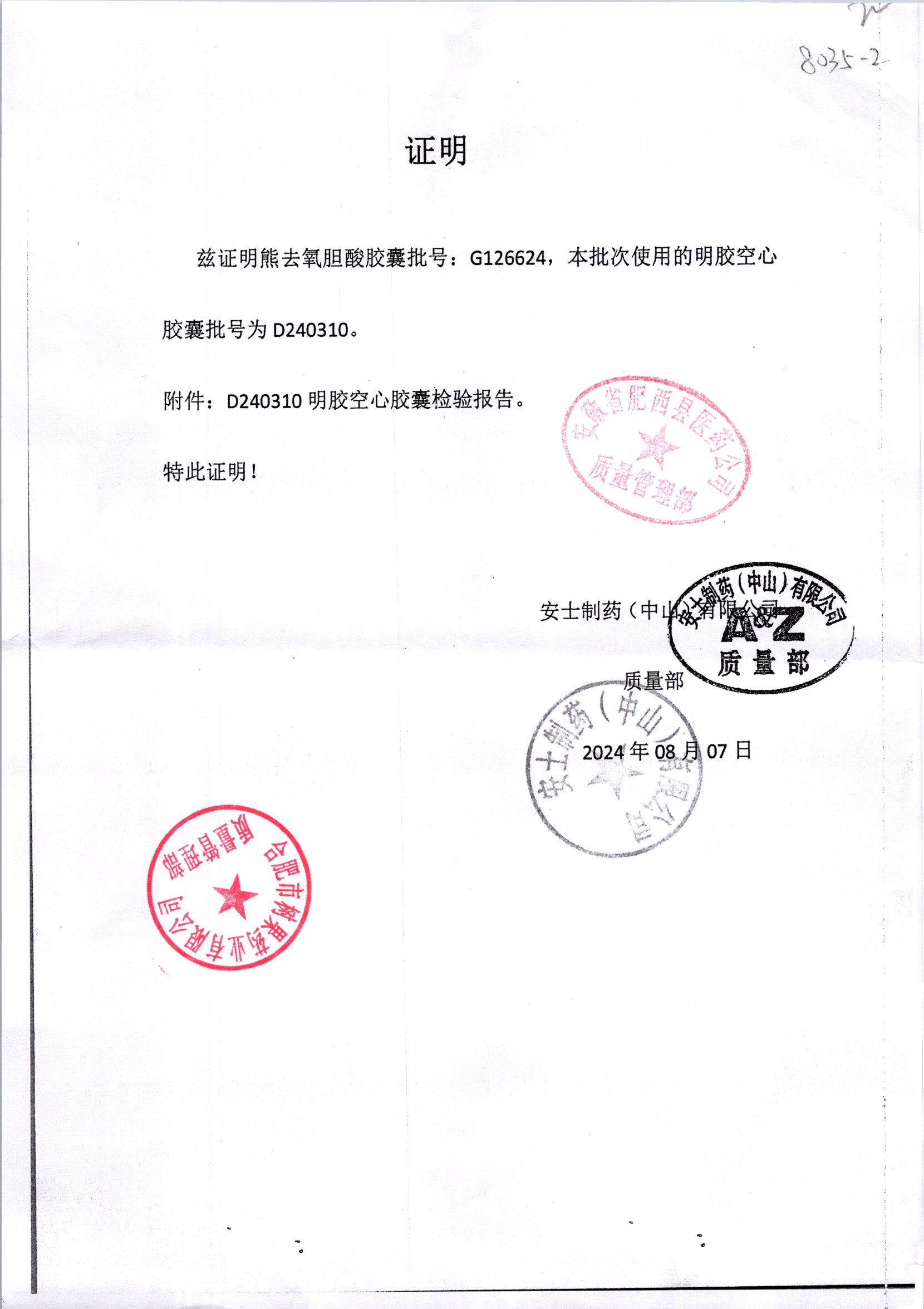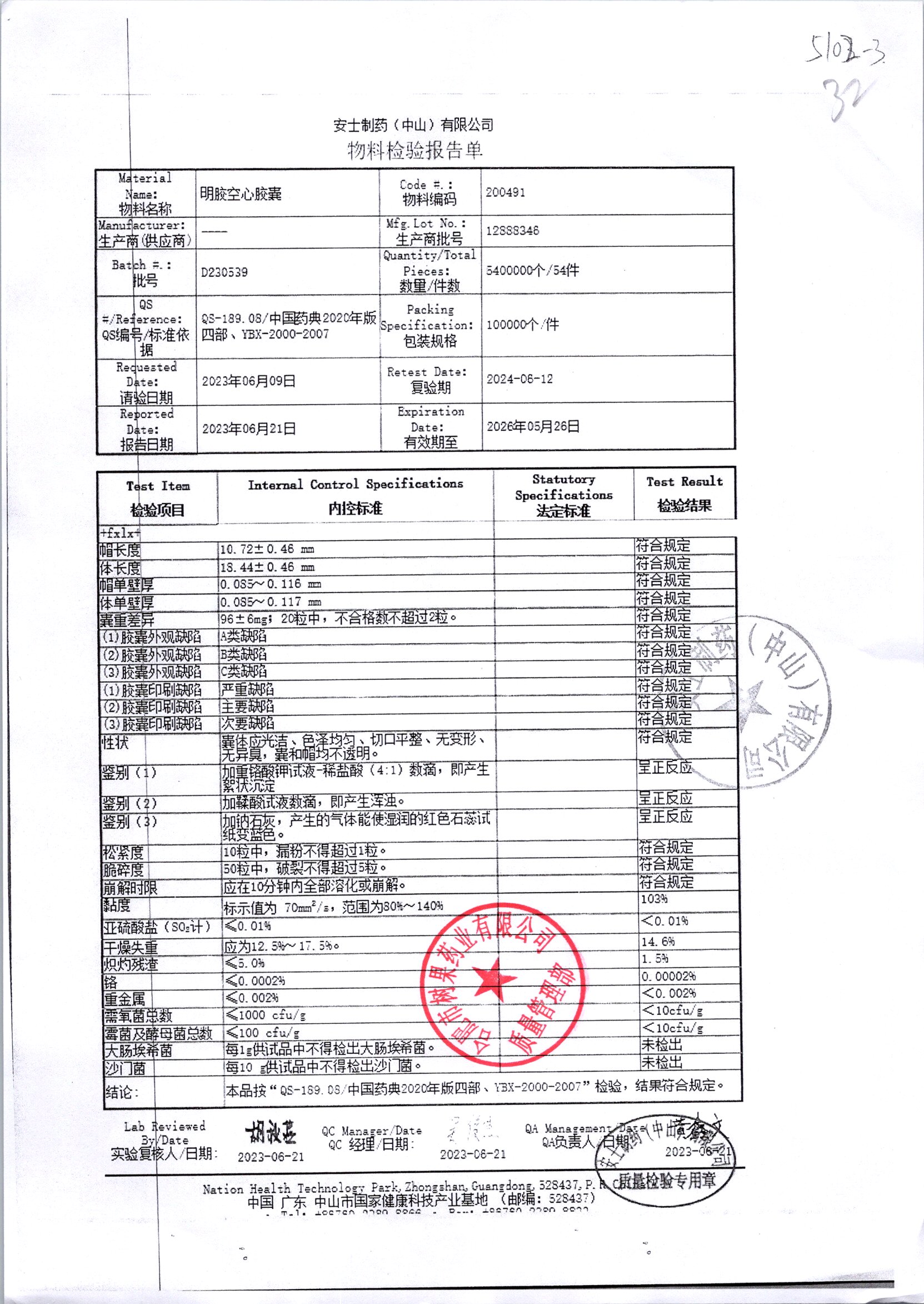 名称 | 规格 | 批号 | 药检报告 |