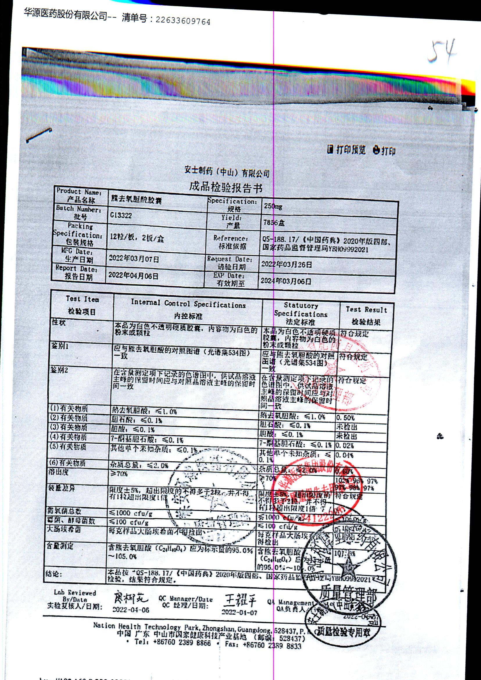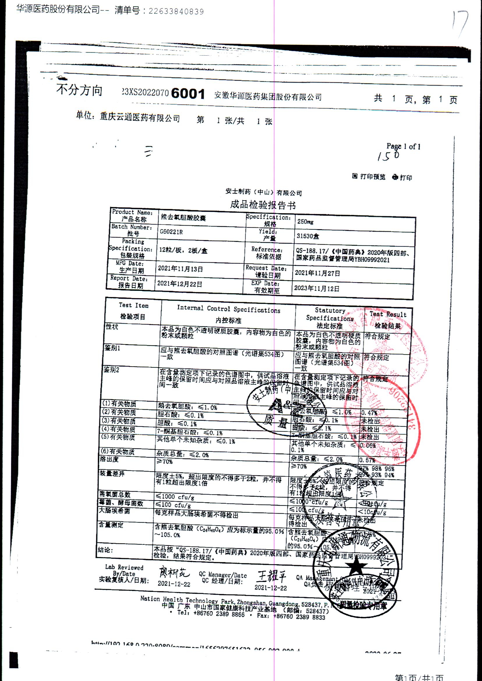 熊去氧胆酸胶囊 | 250mg*12s*2板 | G58422/3 | 查看详情 |
