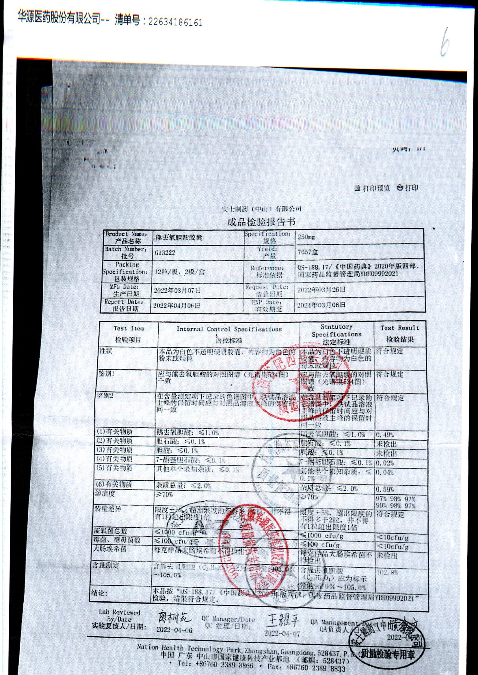 熊去氧胆酸胶囊 | 250mg*12s*2板 | G138424/3 | 查看详情 |