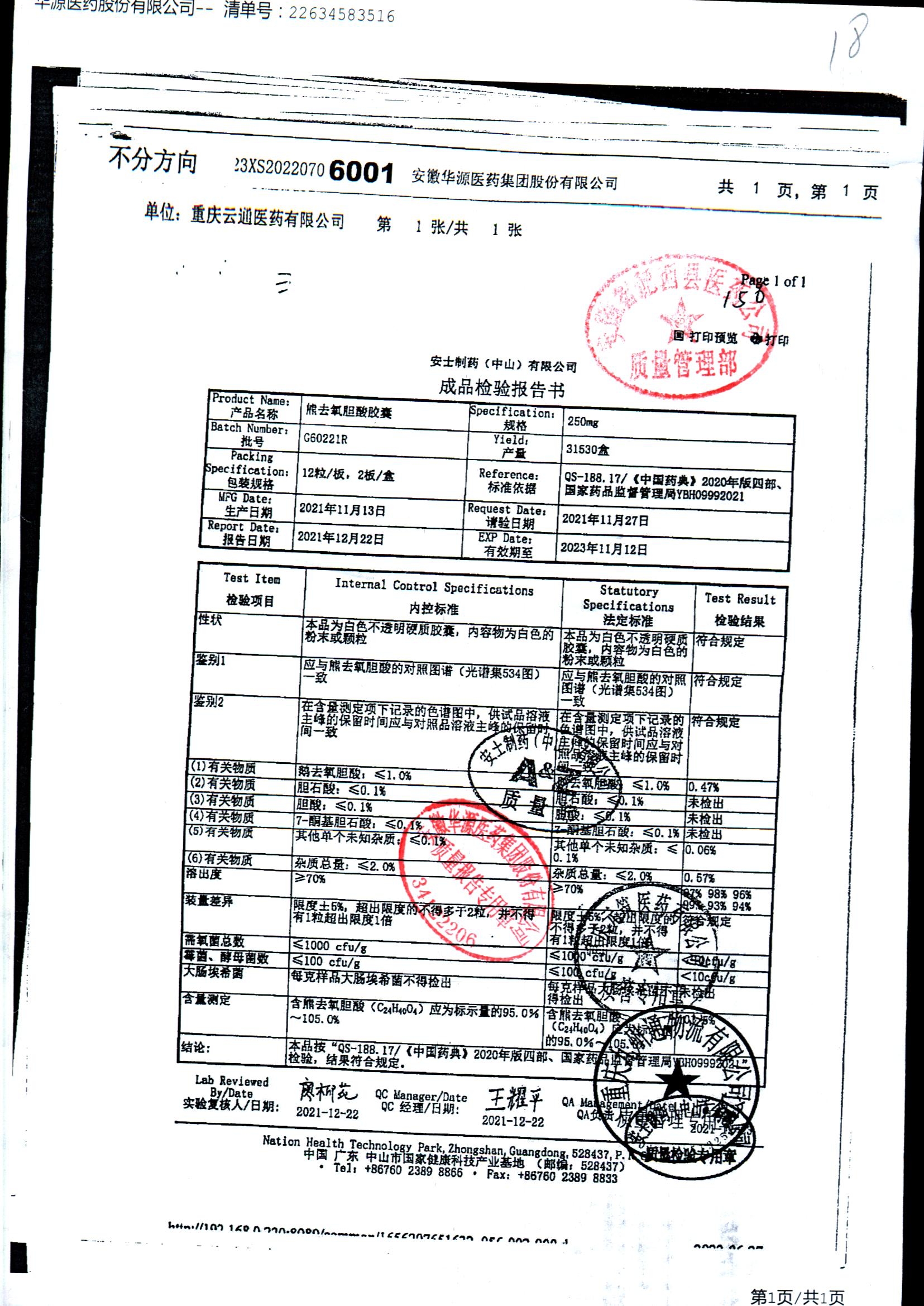 熊去氧胆酸胶囊 | 250mg*12s*2板 | G35423/1 | 查看详情 |