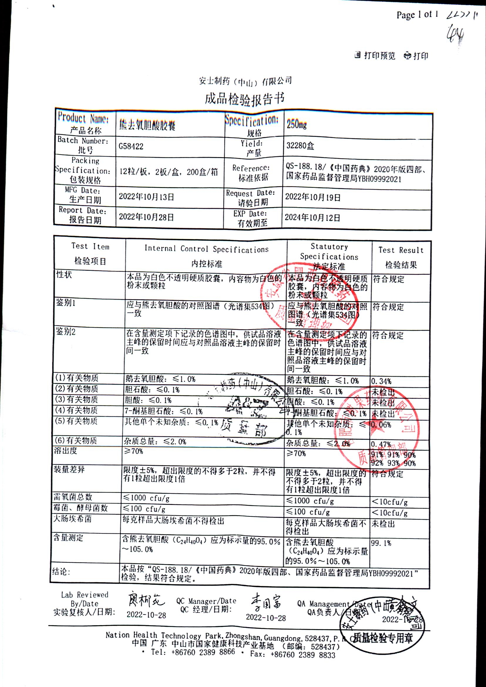 熊去氧胆酸胶囊 | 250mg*12s*2板 | G35423/2 | 查看详情 |