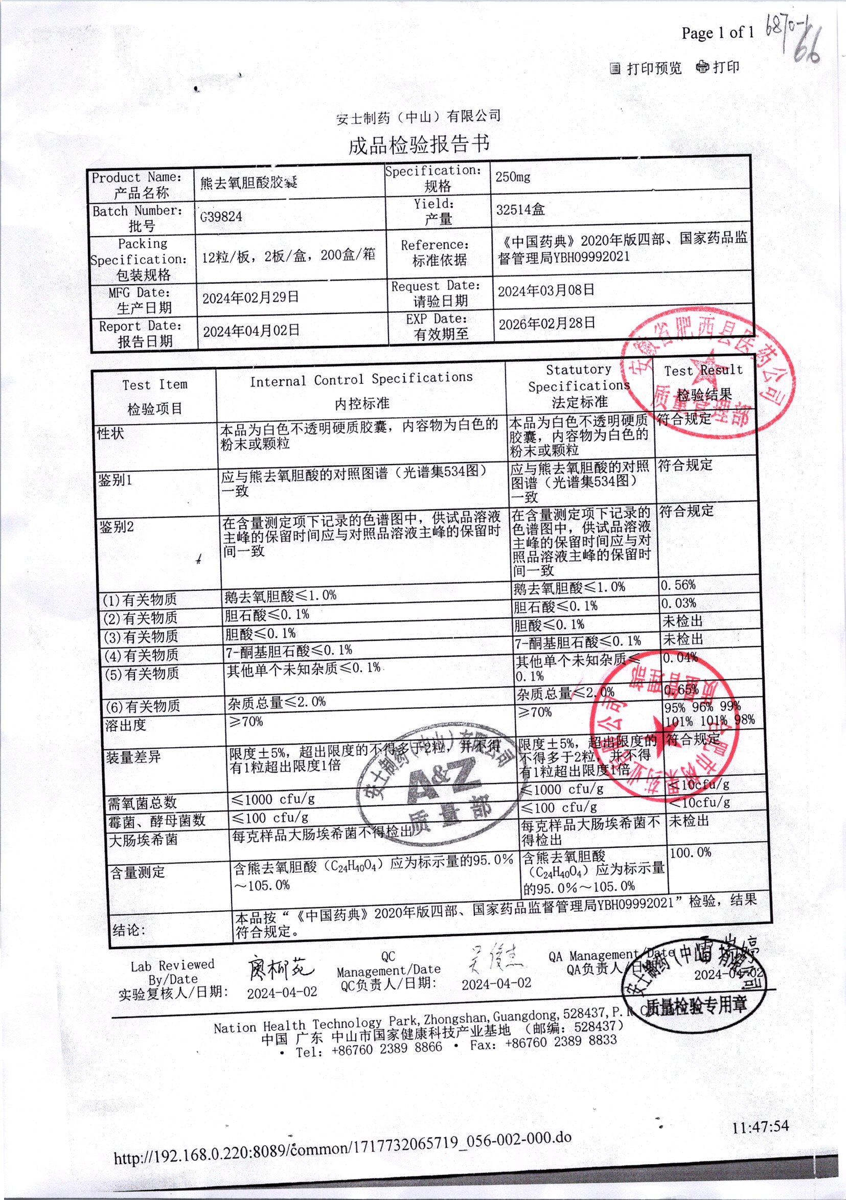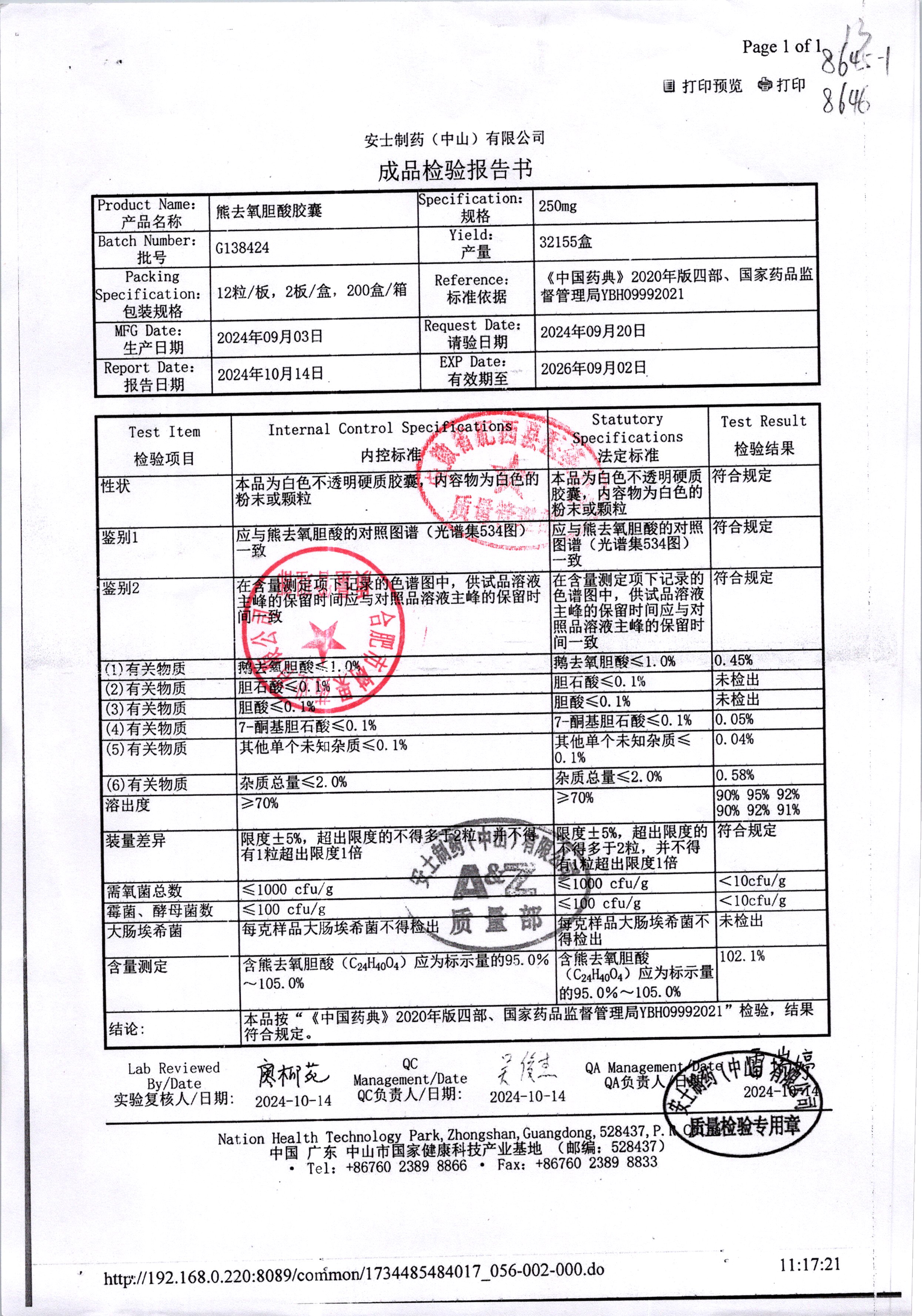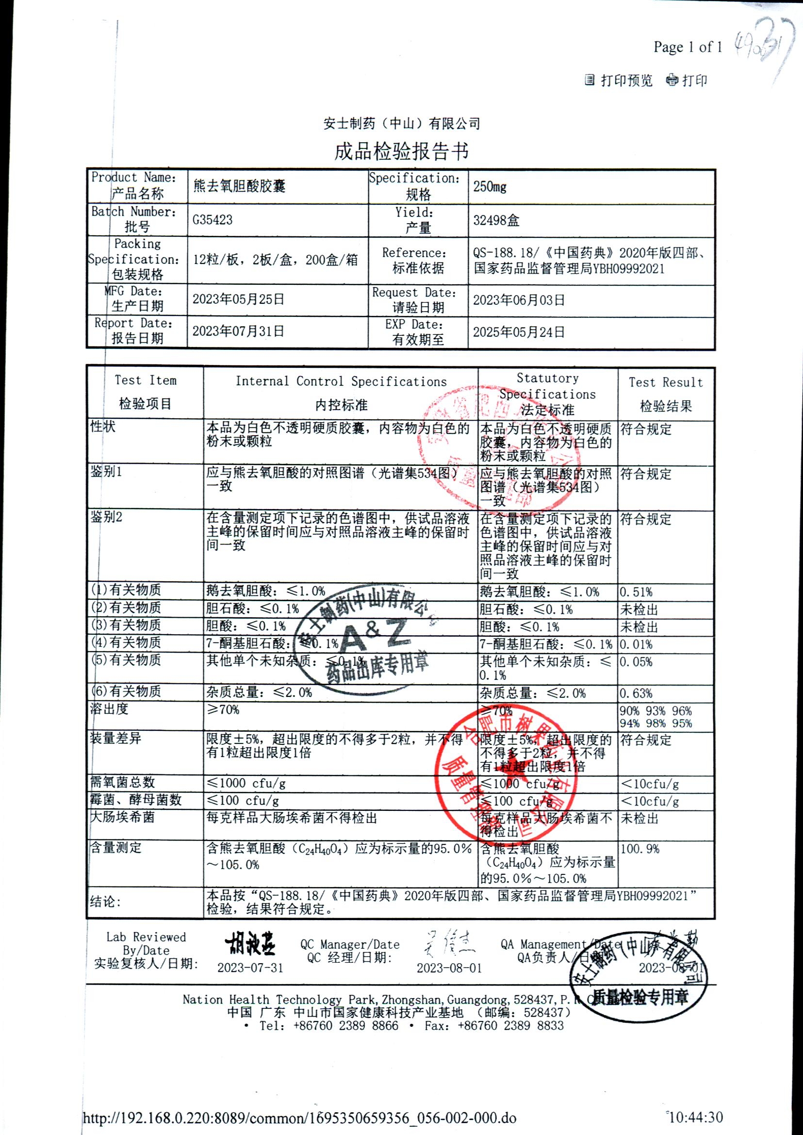 熊去氧胆酸胶囊 | 250mg*12s*2板 | G51421 | 查看详情 |