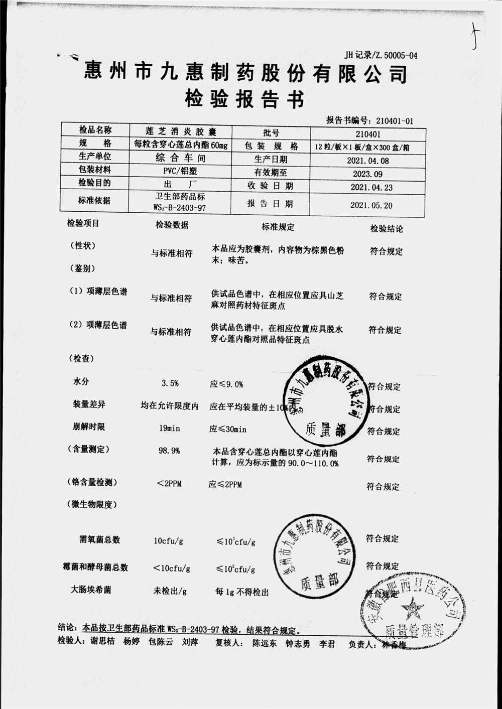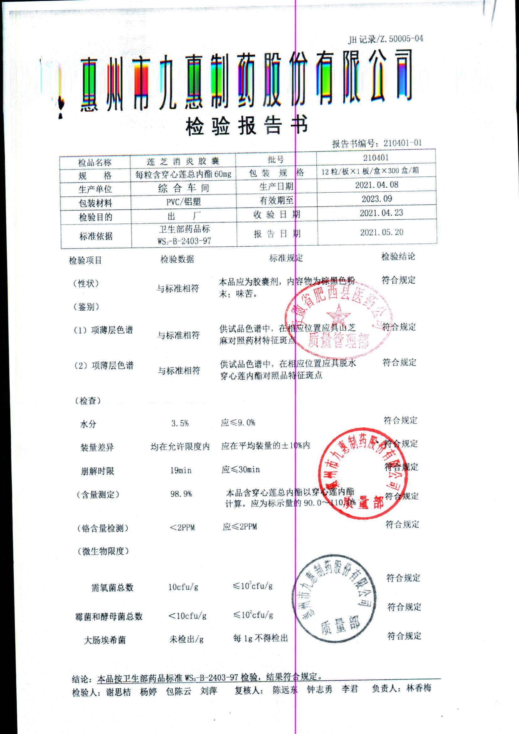 药检报告