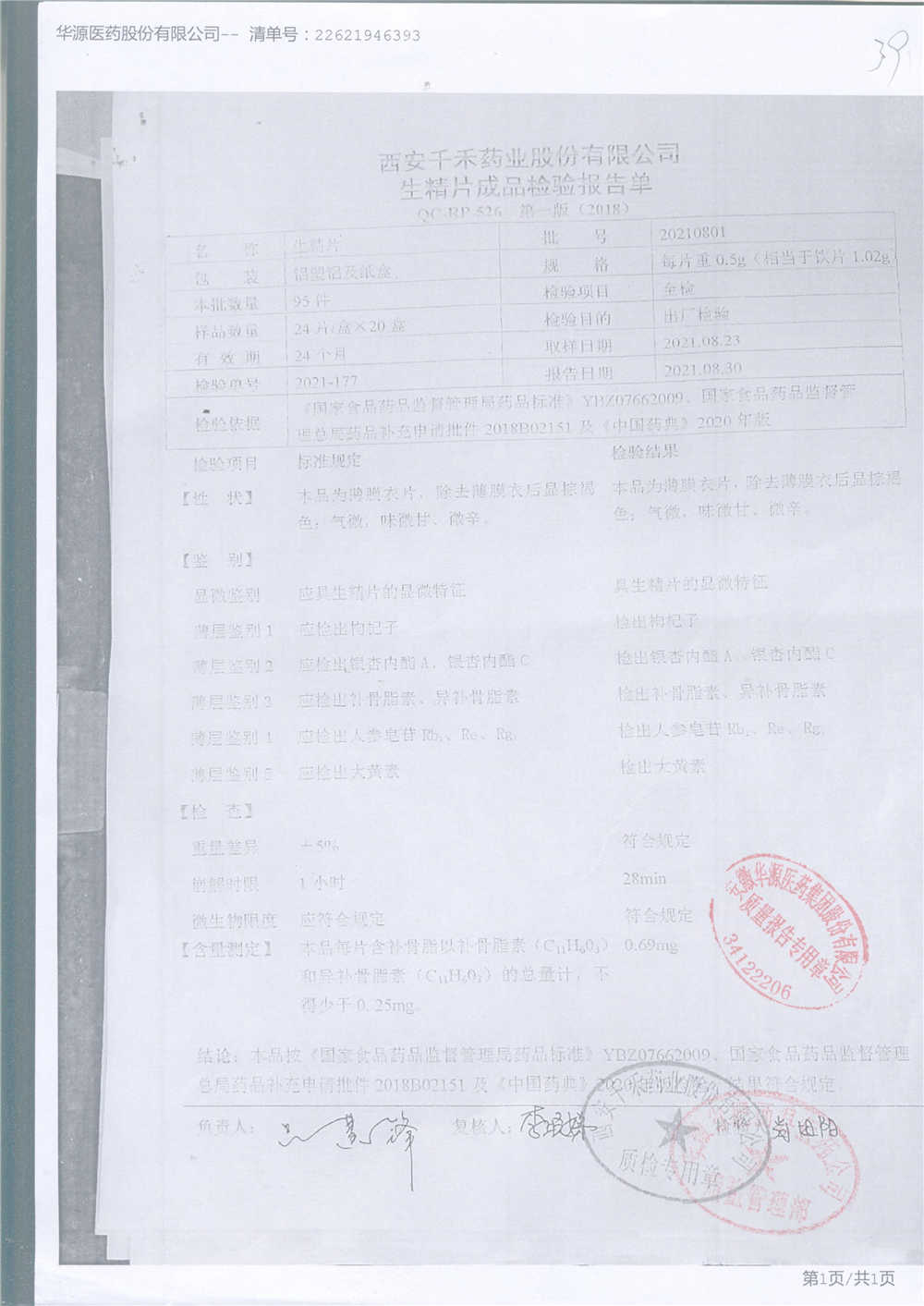生精片 | 0.5g*2*12片 | 20210802 | 查看详情 |