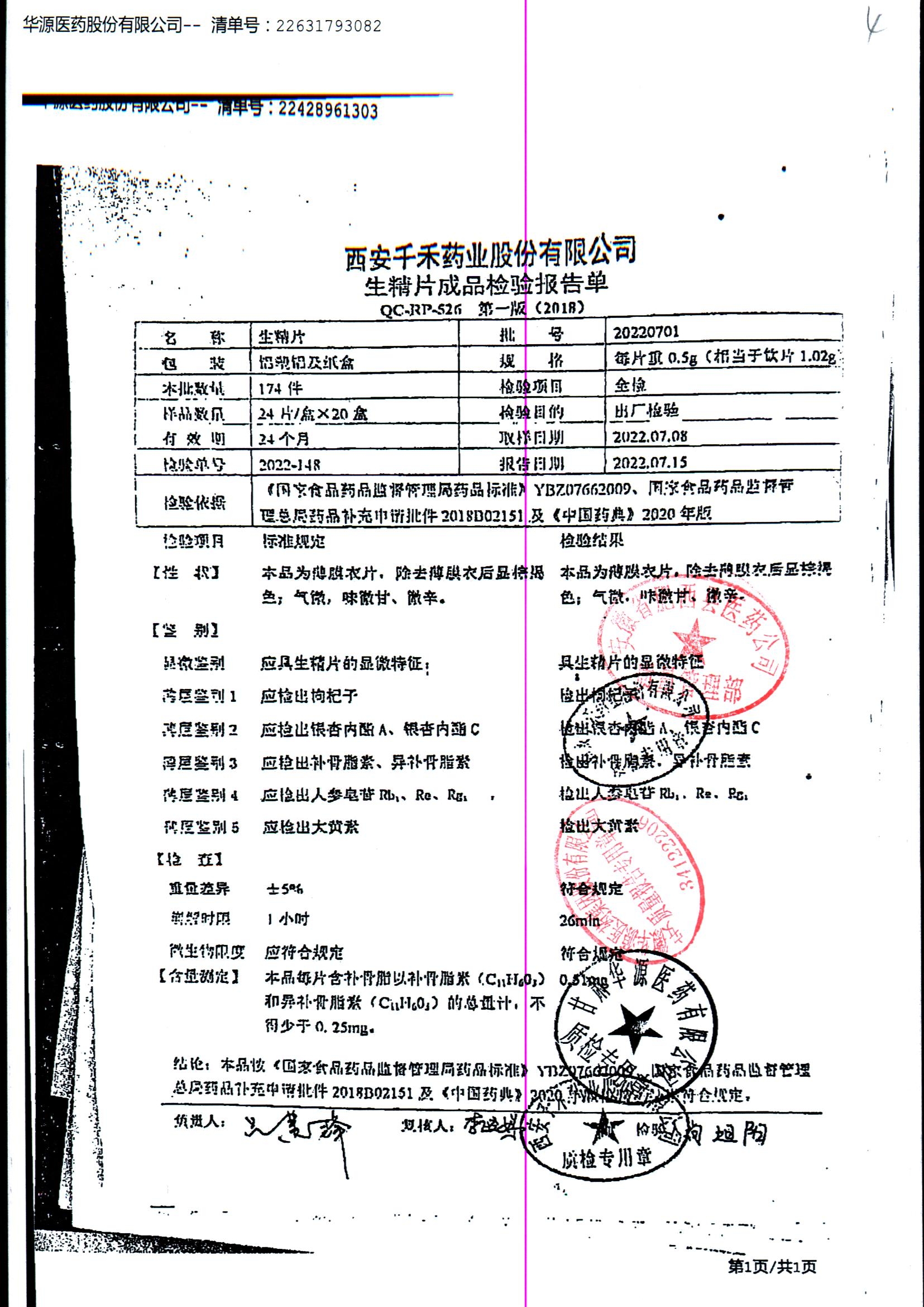 生精片 | 0.5g*2*12片 | 20220701 | 查看详情 |