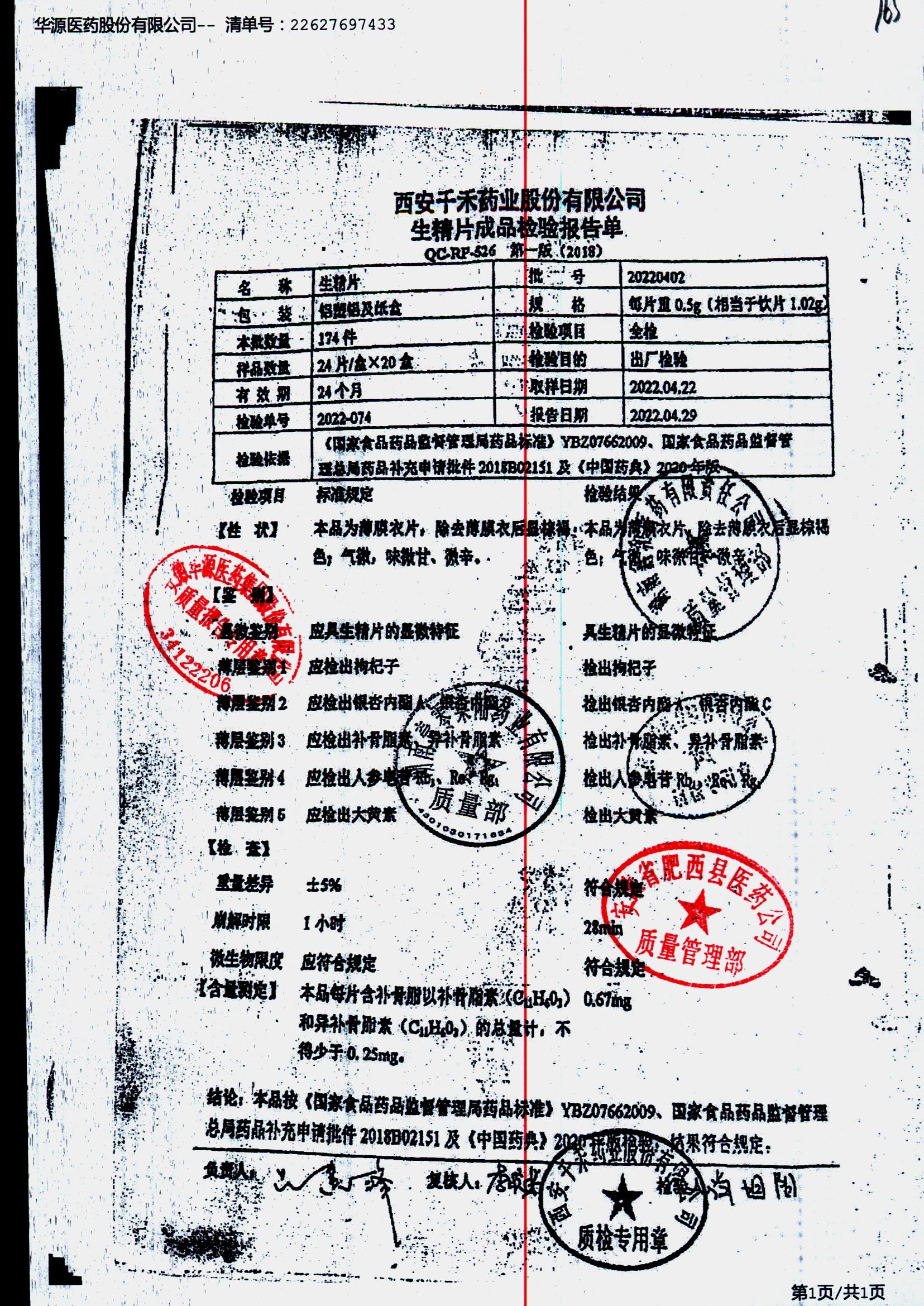 生精片 | 0.5g*2*12片 | 20220402 | 查看详情 |