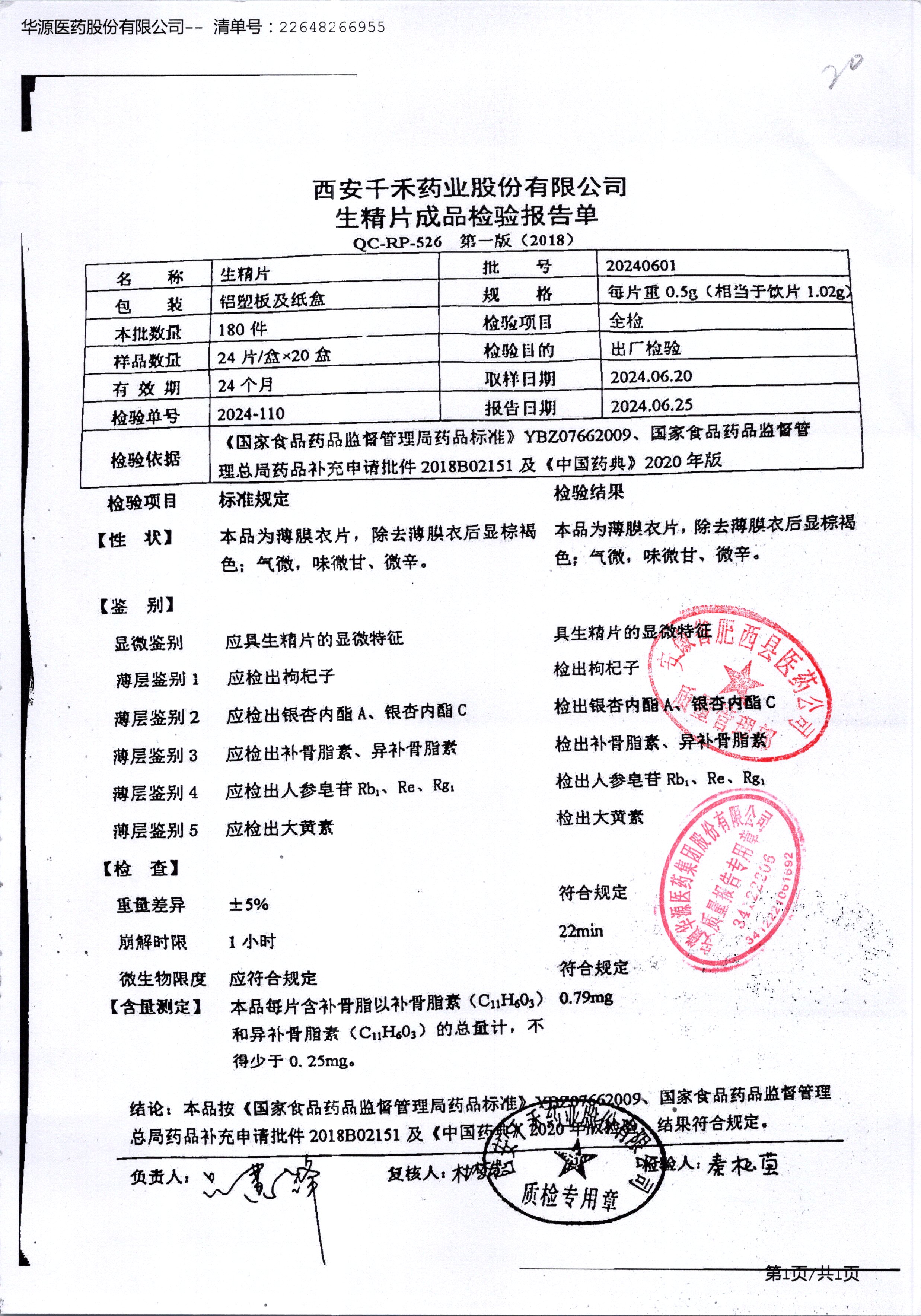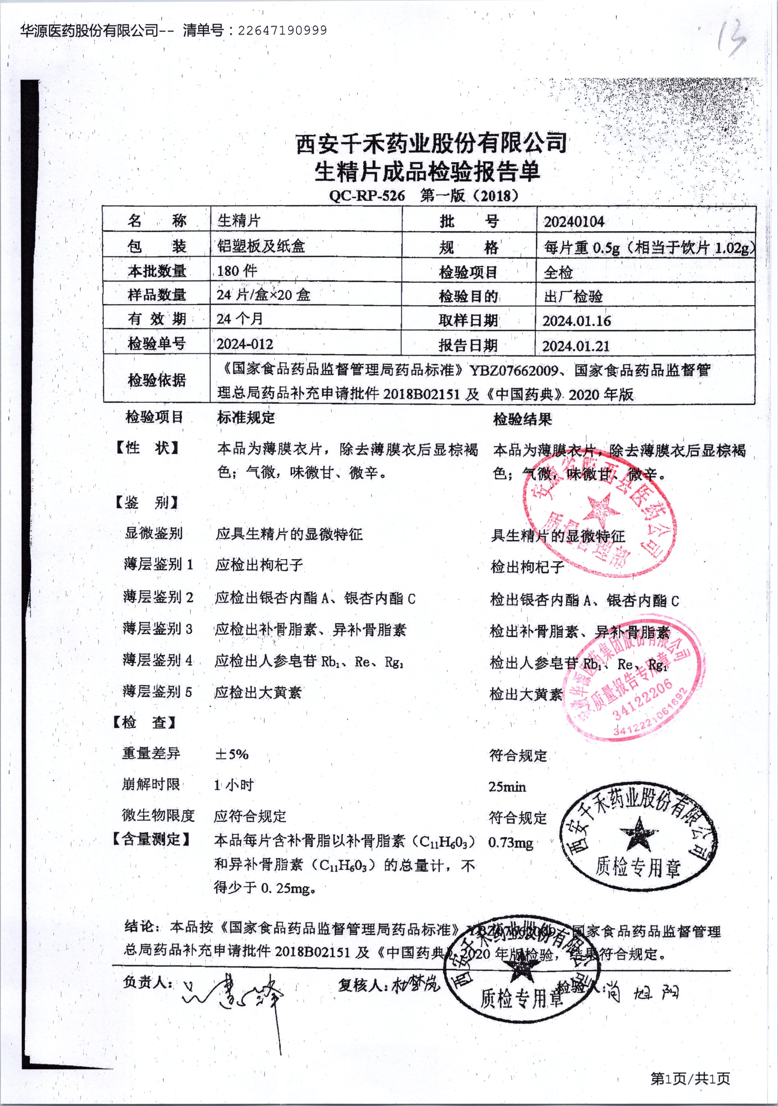 生精片 | 0.5g*2*12片 | 20240601 | 查看详情 |
