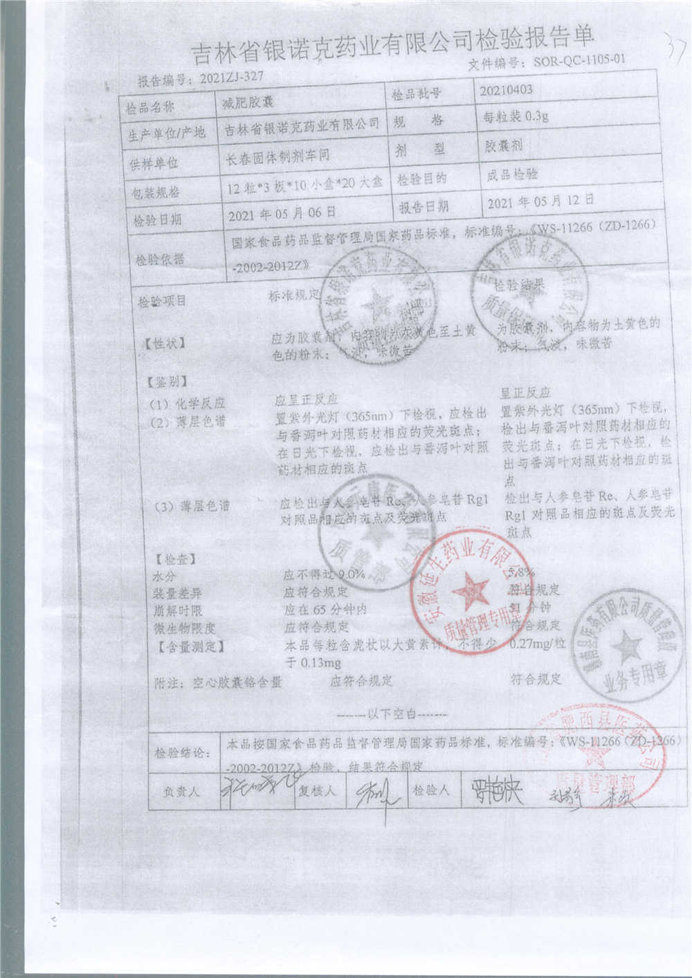 药检报告
