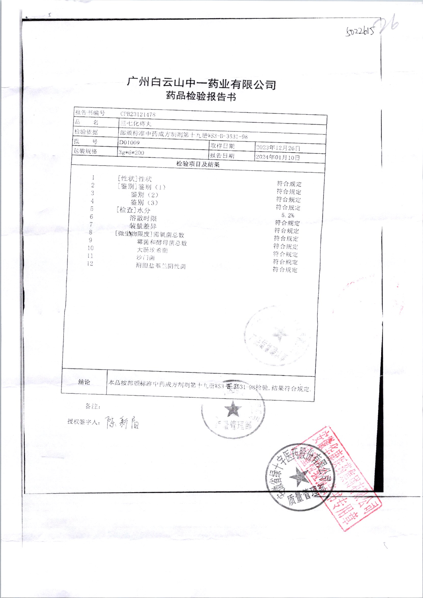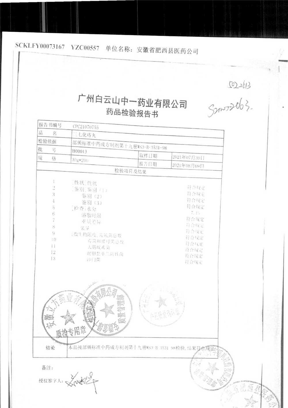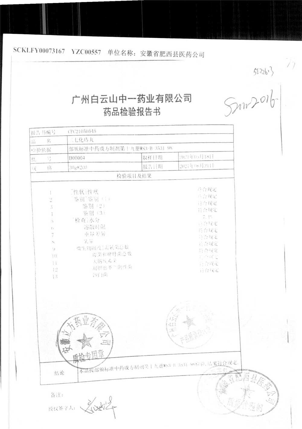 药检报告