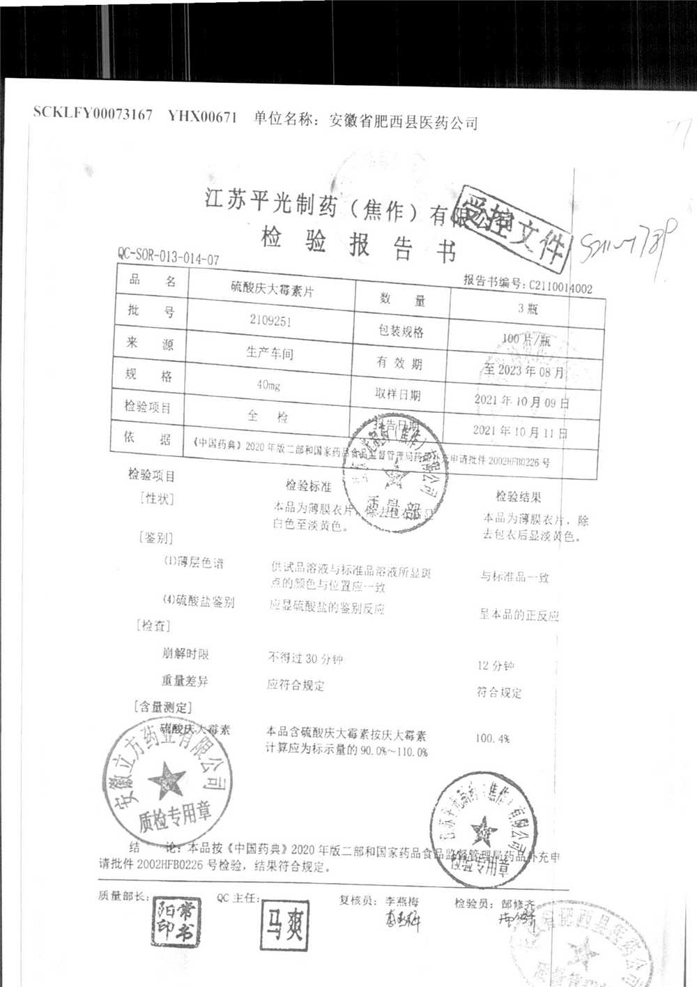 药检报告