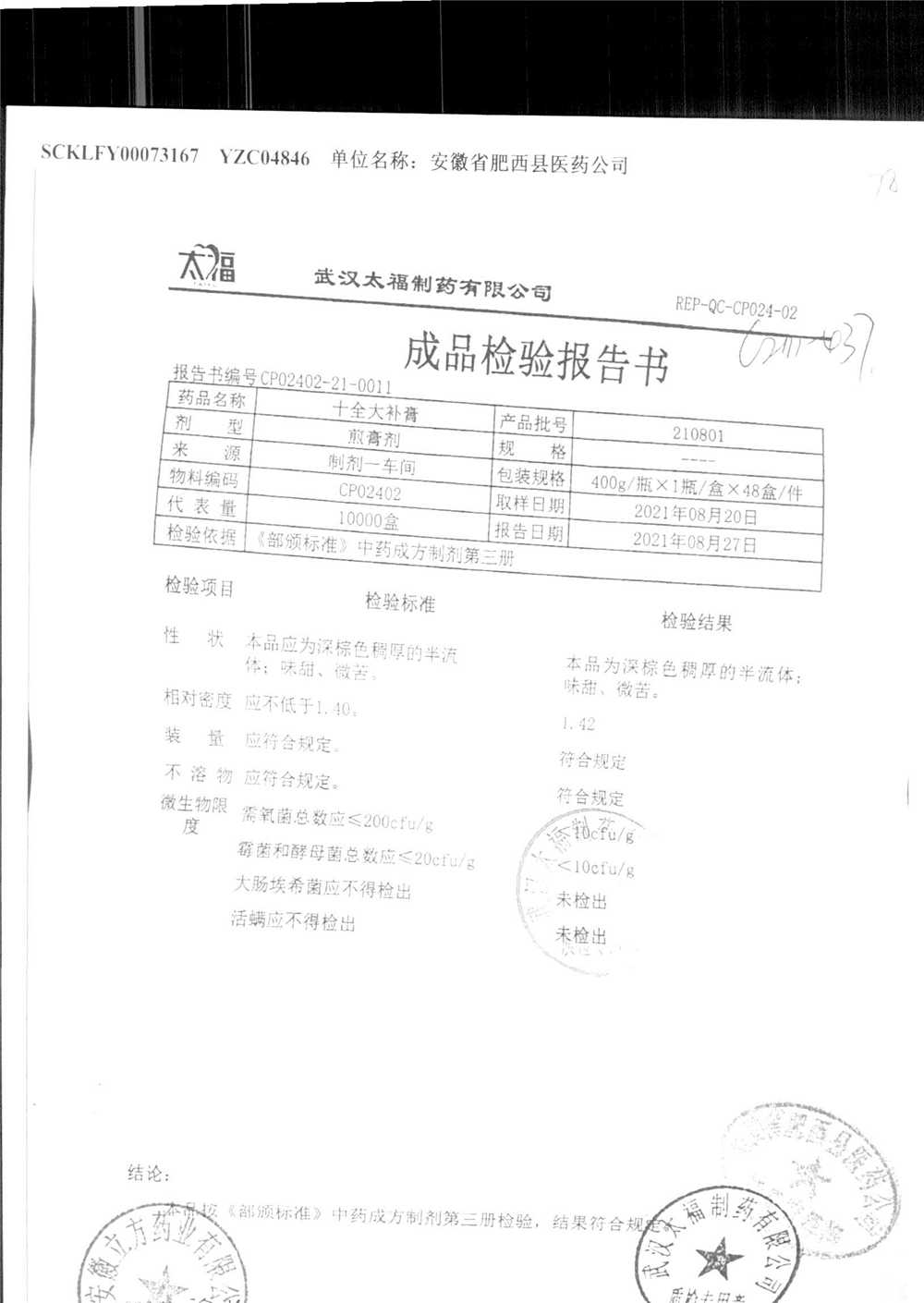 药检报告
