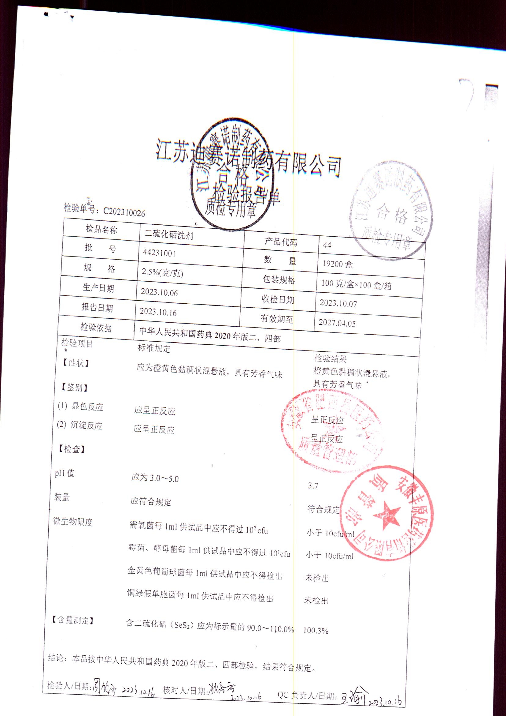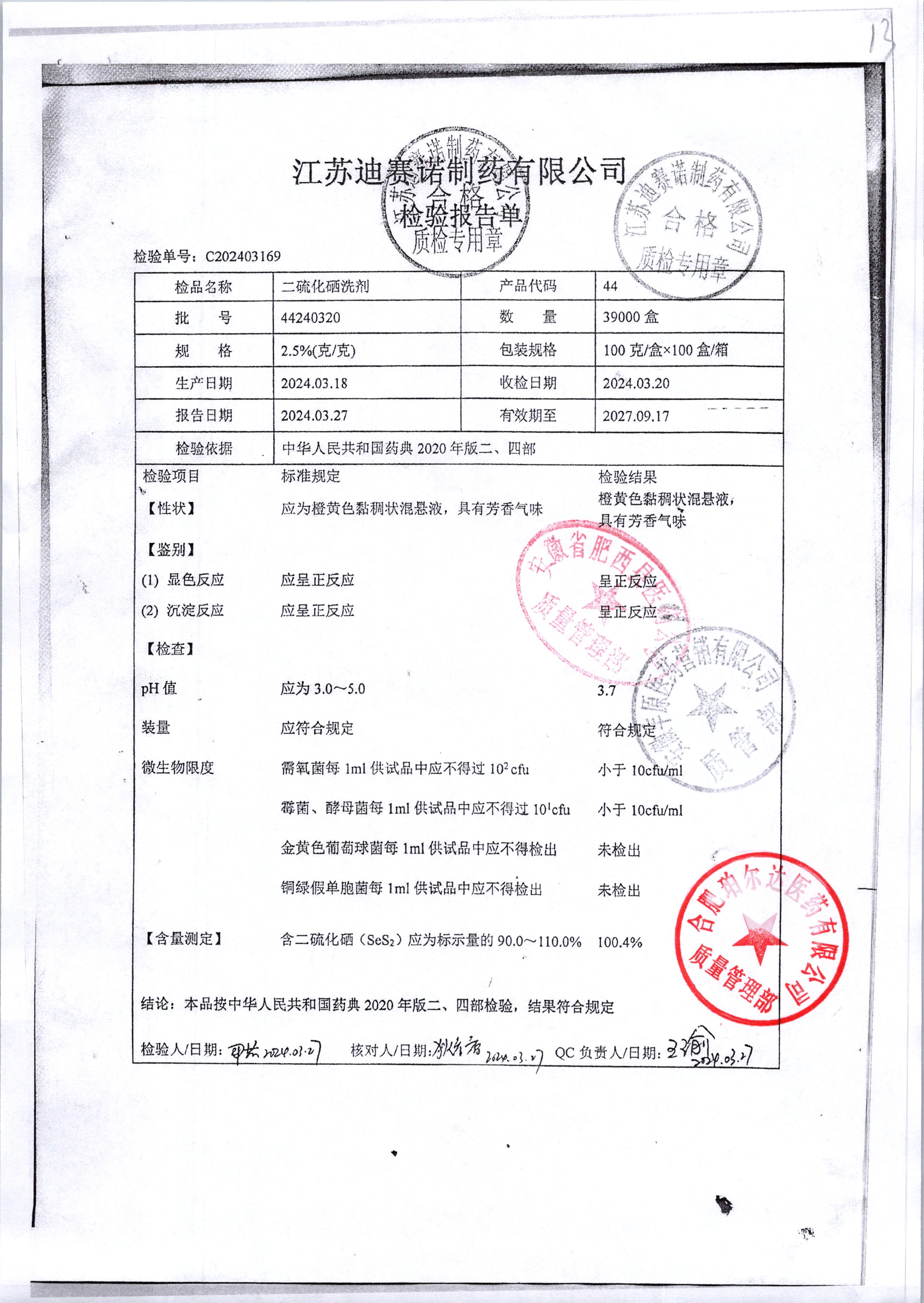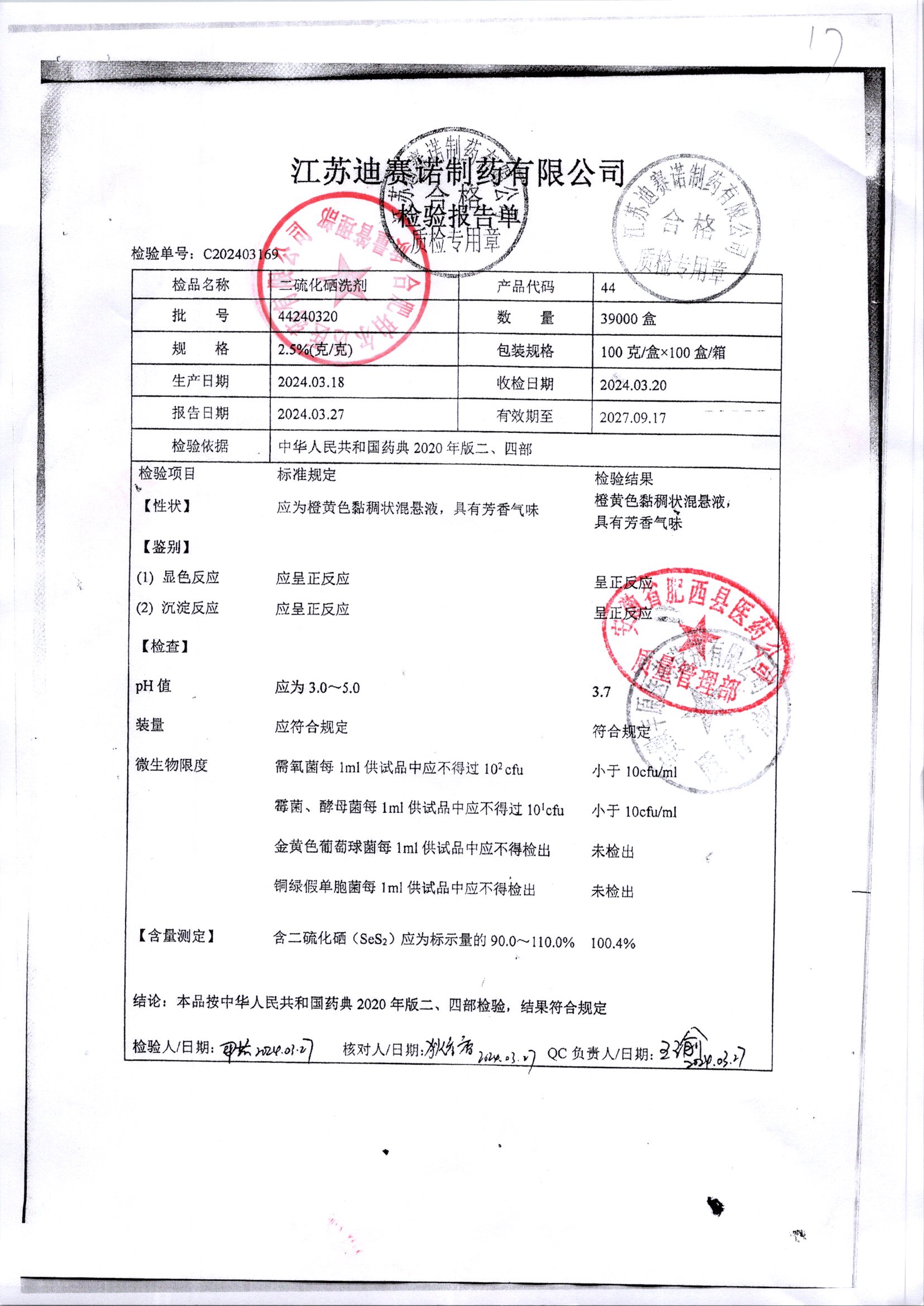 二硫化硒洗剂 | 100g2.5%(g/g) | 44240320 | 查看详情 |