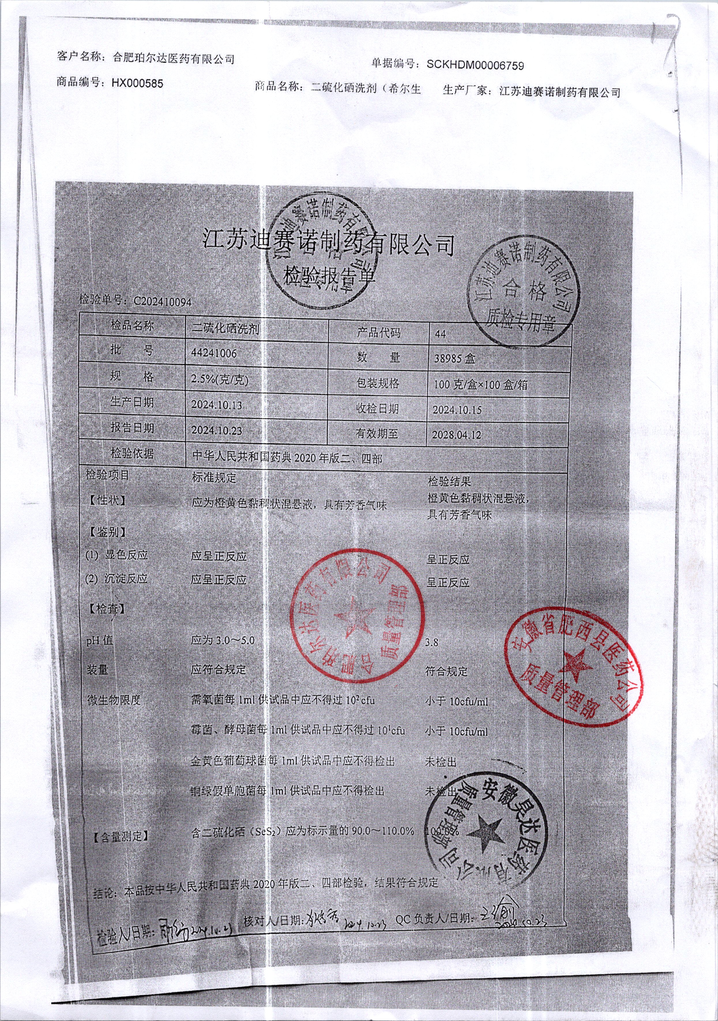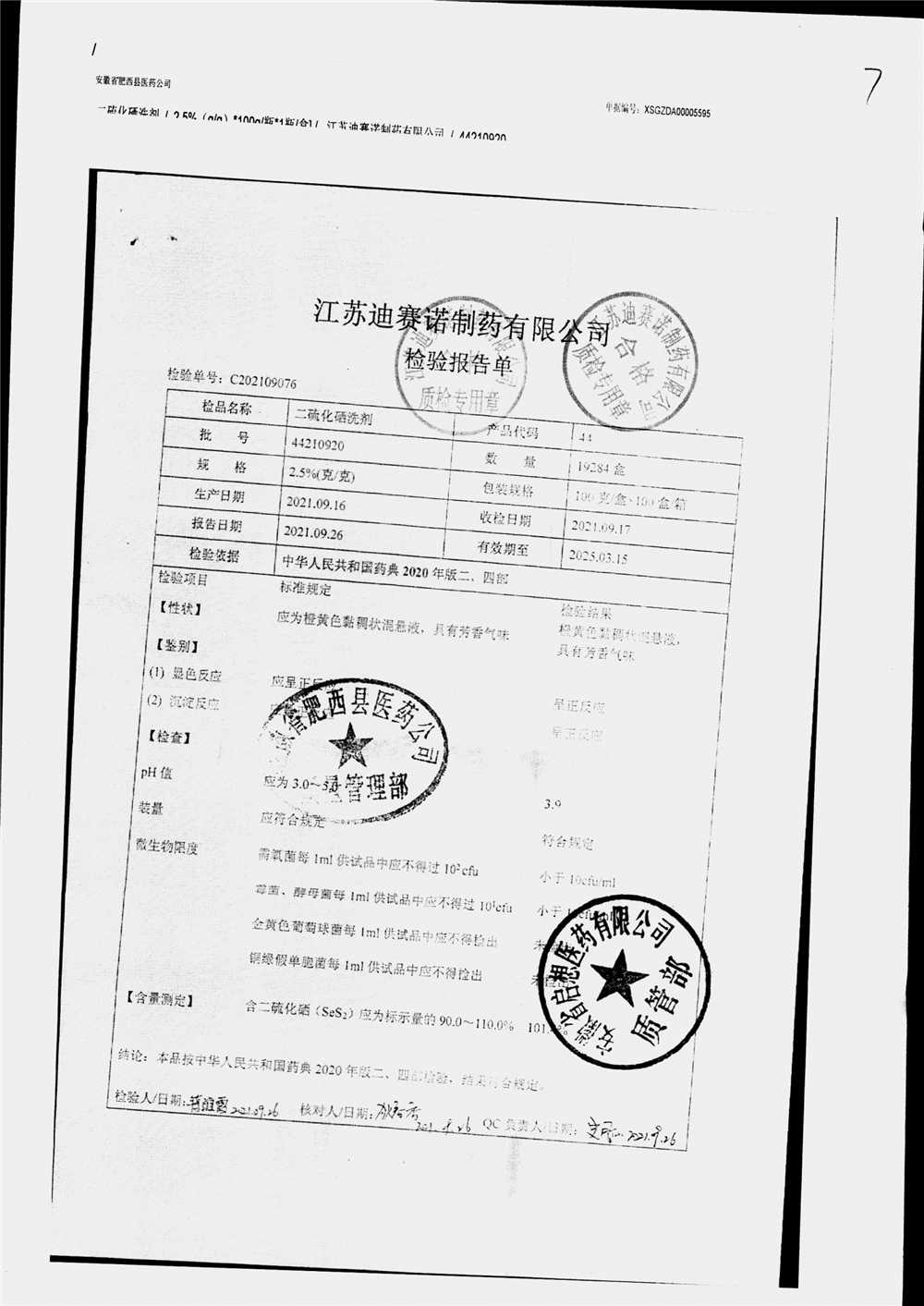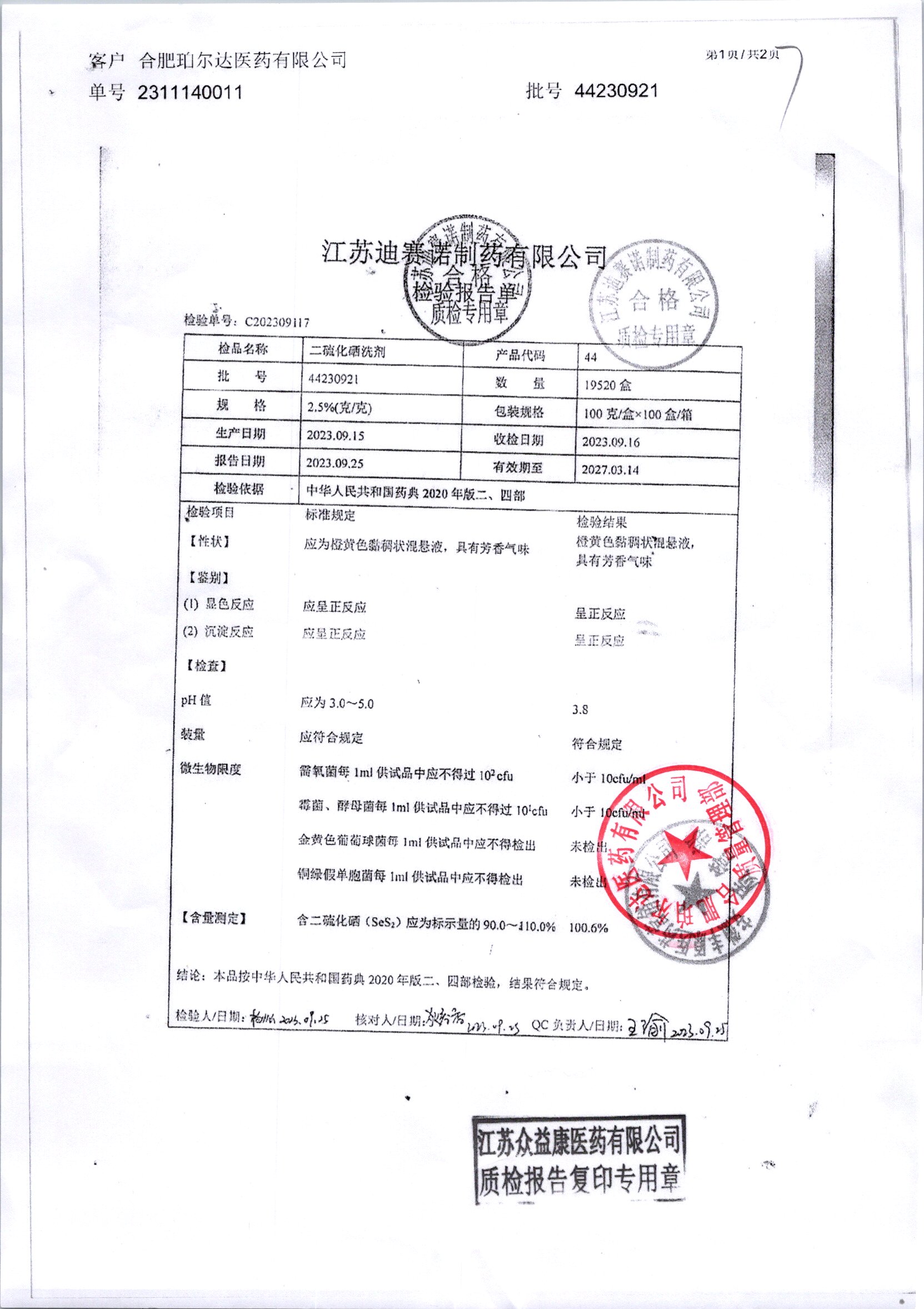 二硫化硒洗剂 | 100g2.5%(g/g) | 44240320 | 查看详情 |