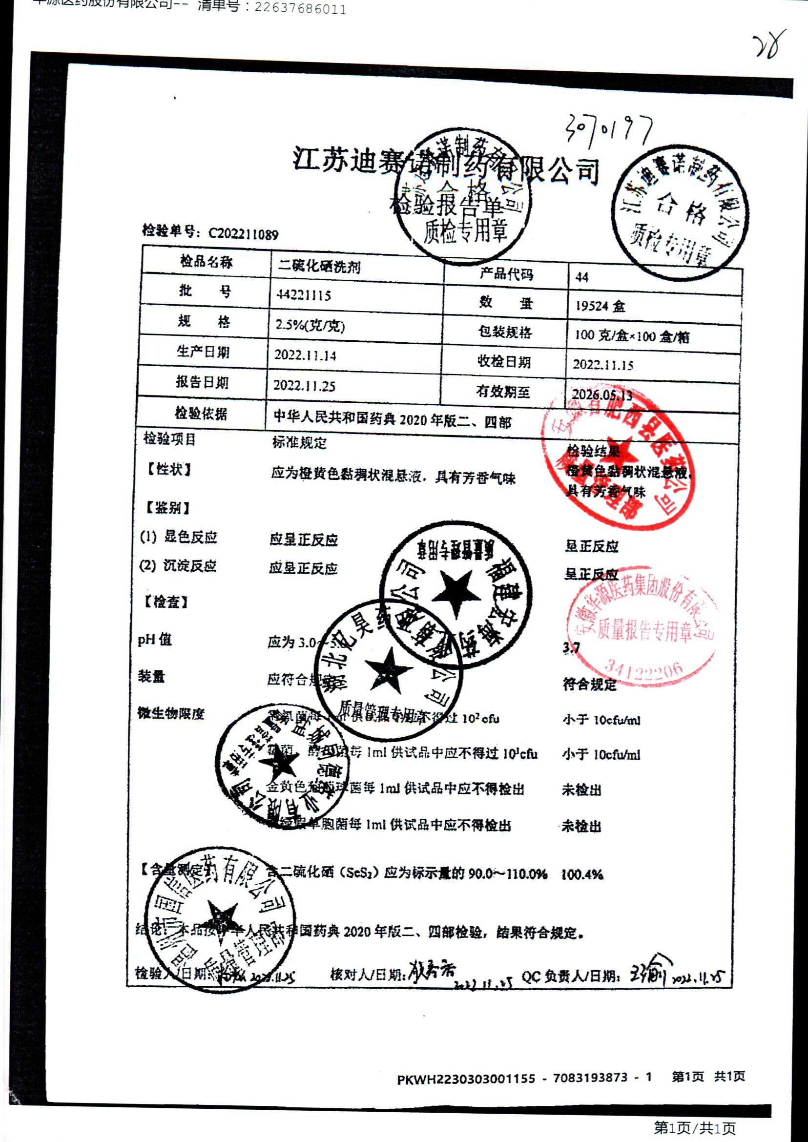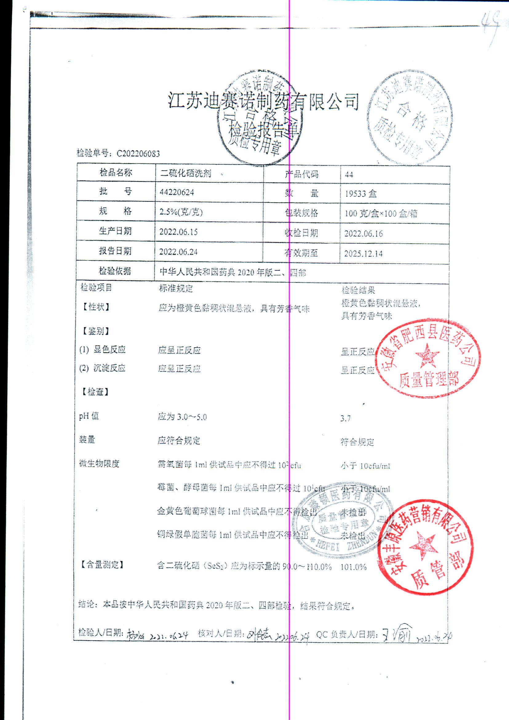 二硫化硒洗剂 | 100g2.5%(g/g) | 44241201/1 | 查看详情 |