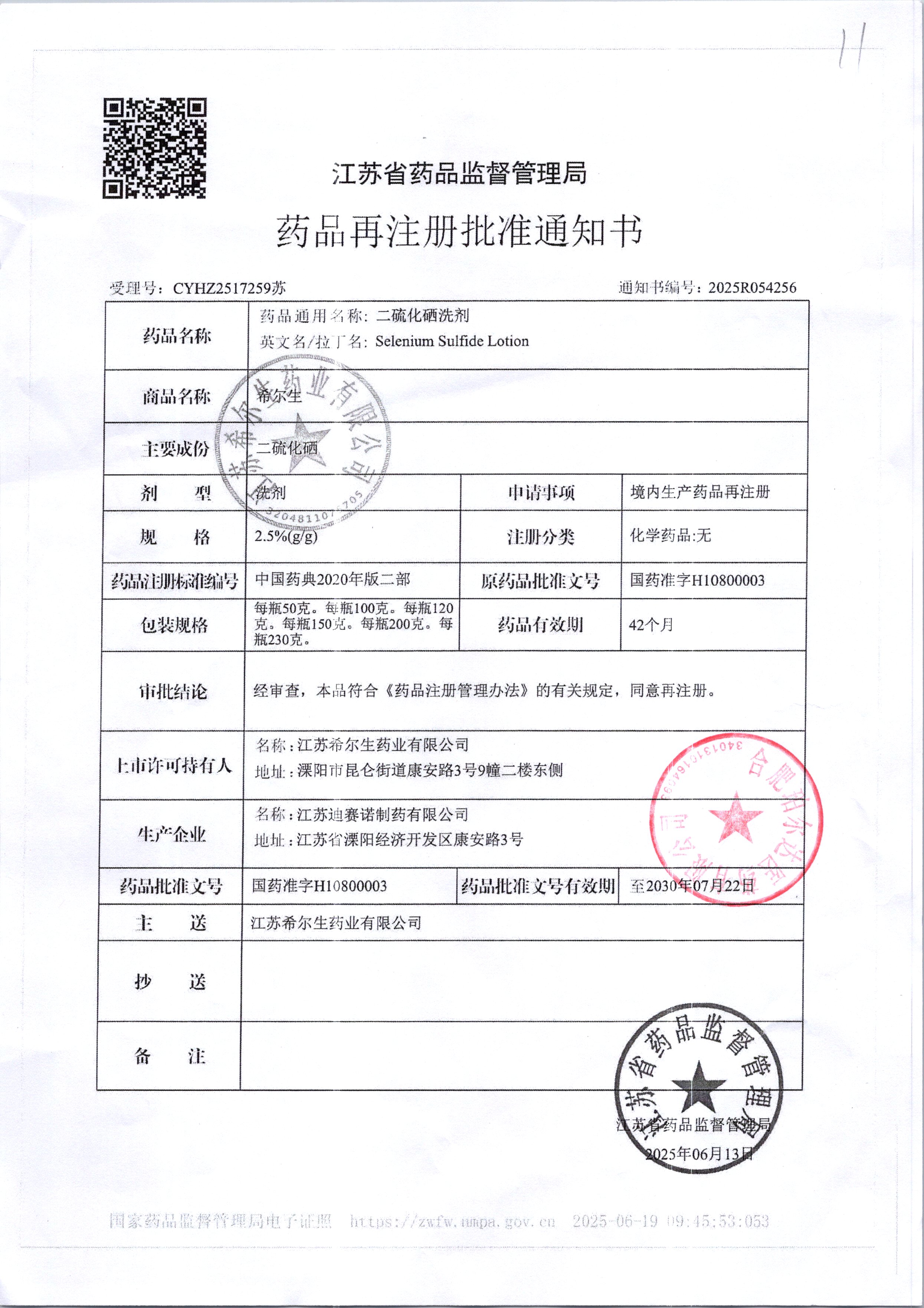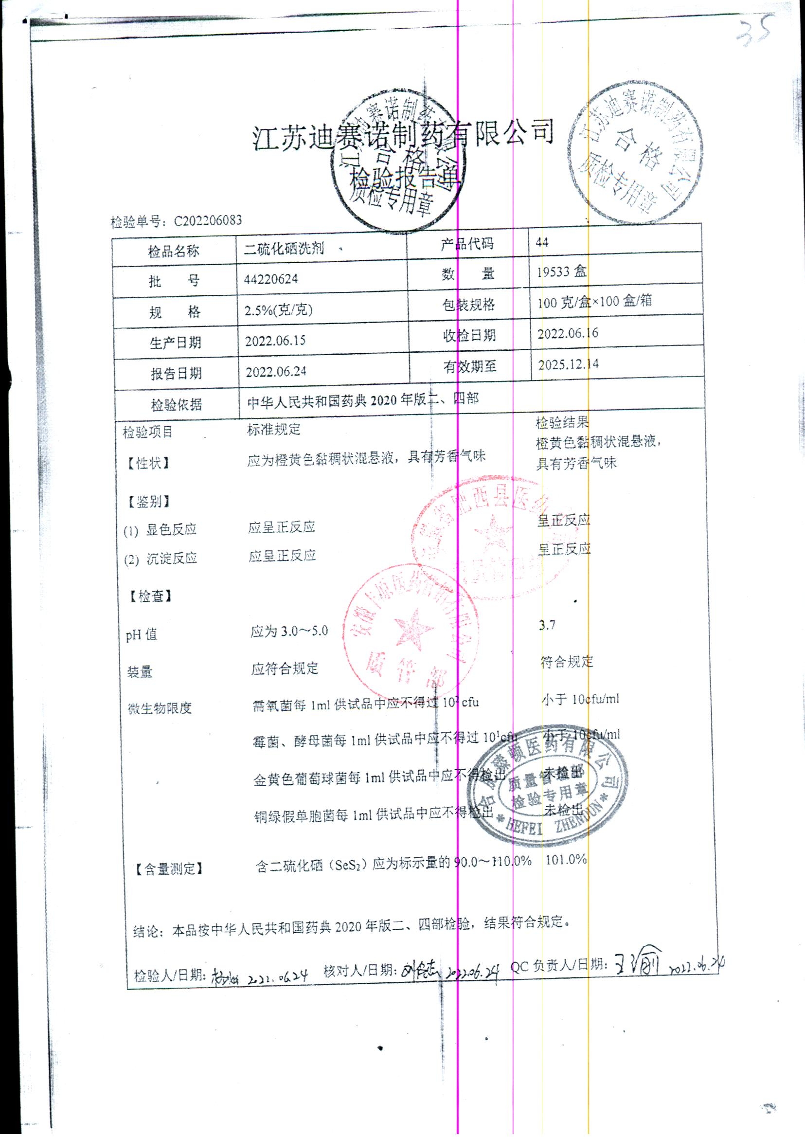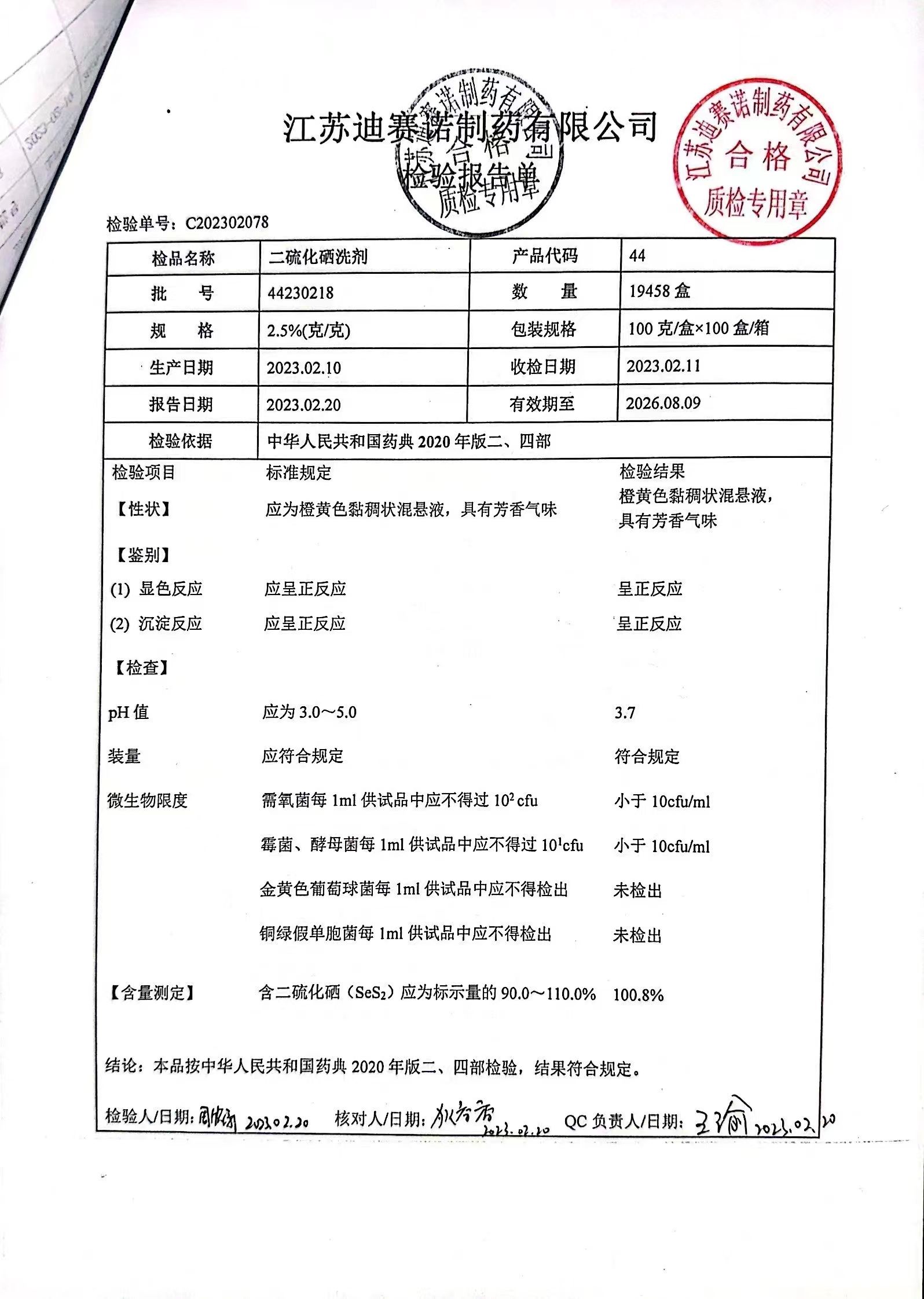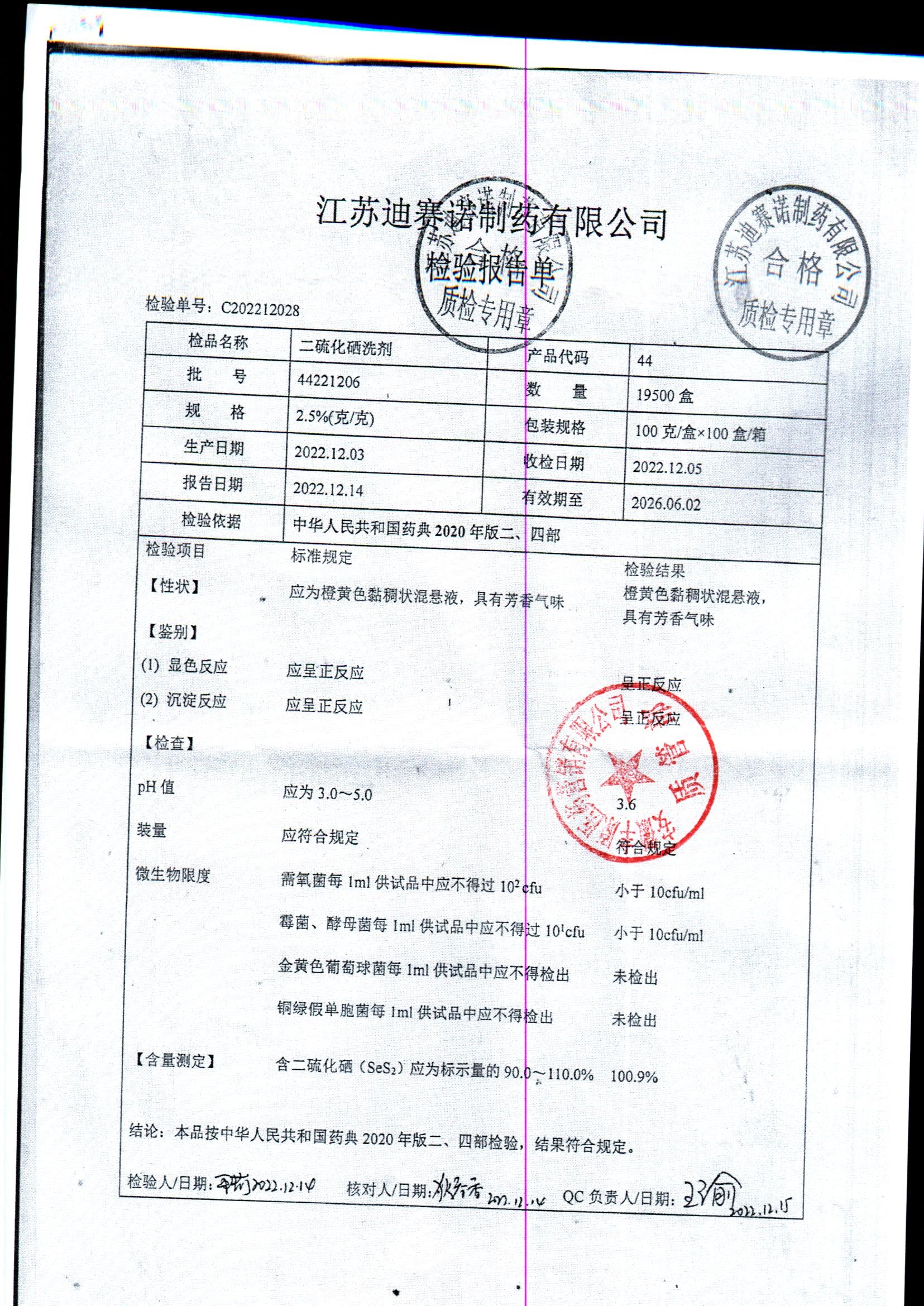 二硫化硒洗剂 | 100g2.5%(g/g) | 44241201/2 | 查看详情 |