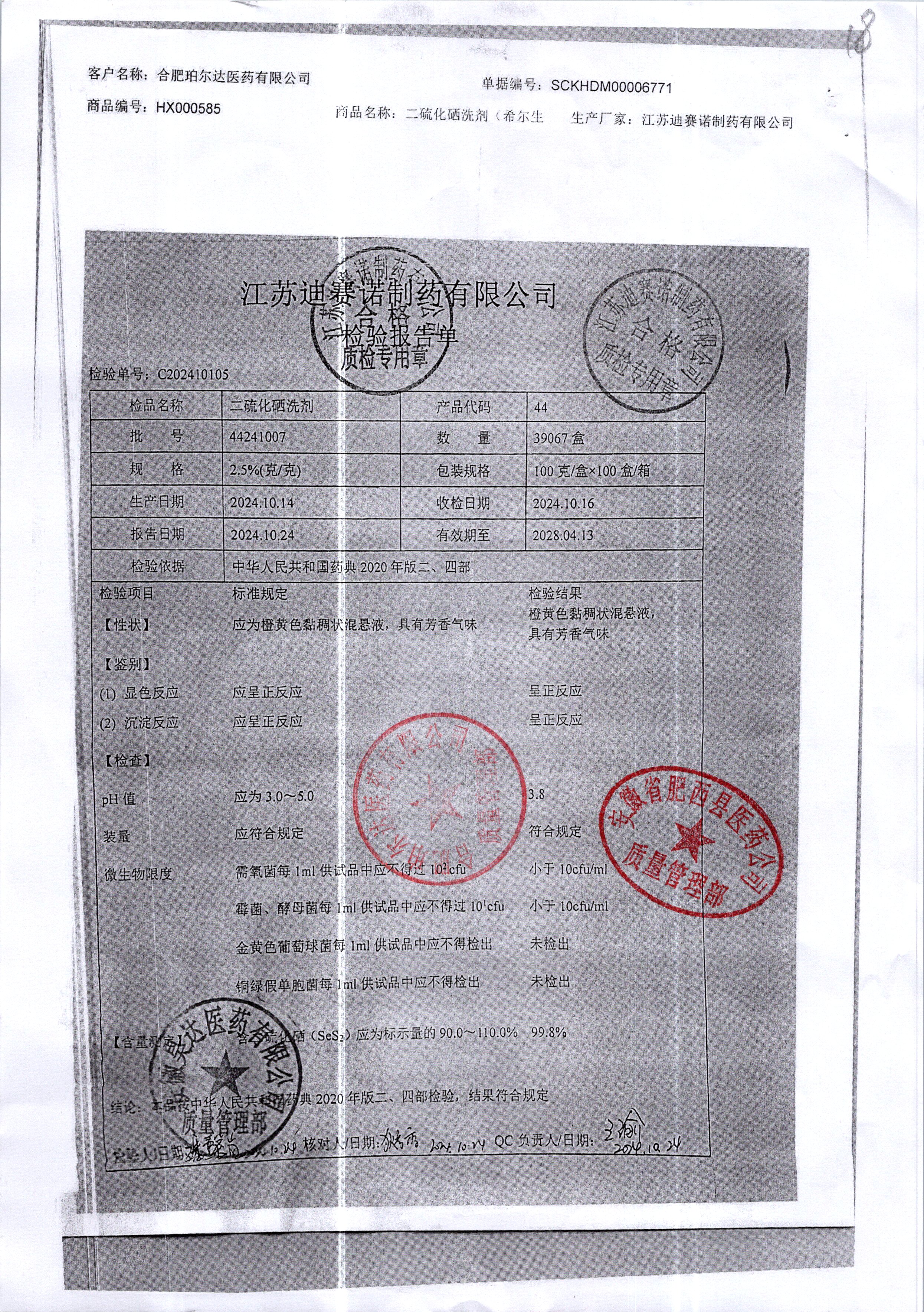 二硫化硒洗剂 | 100g2.5%(g/g) | 44241007 | 查看详情 |