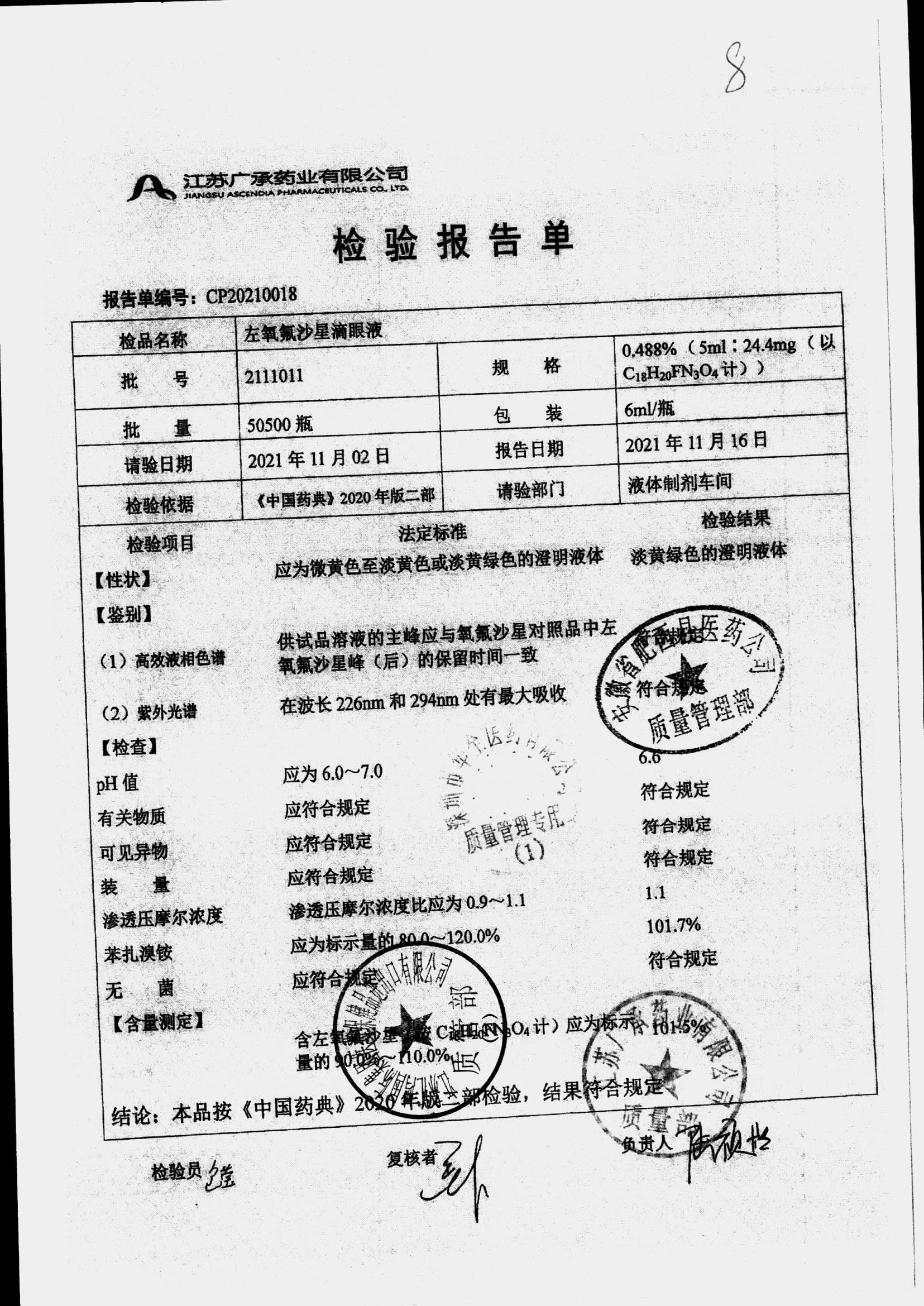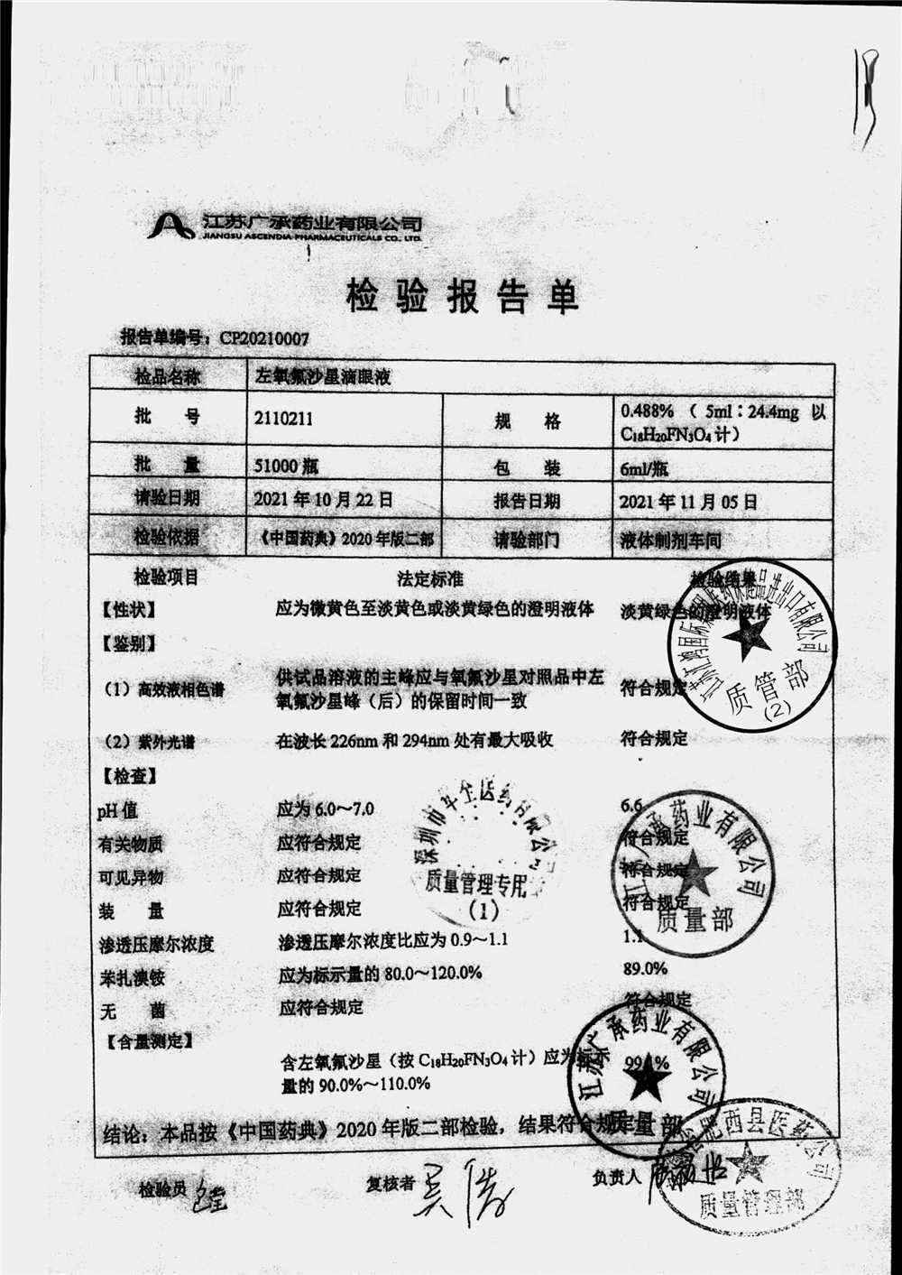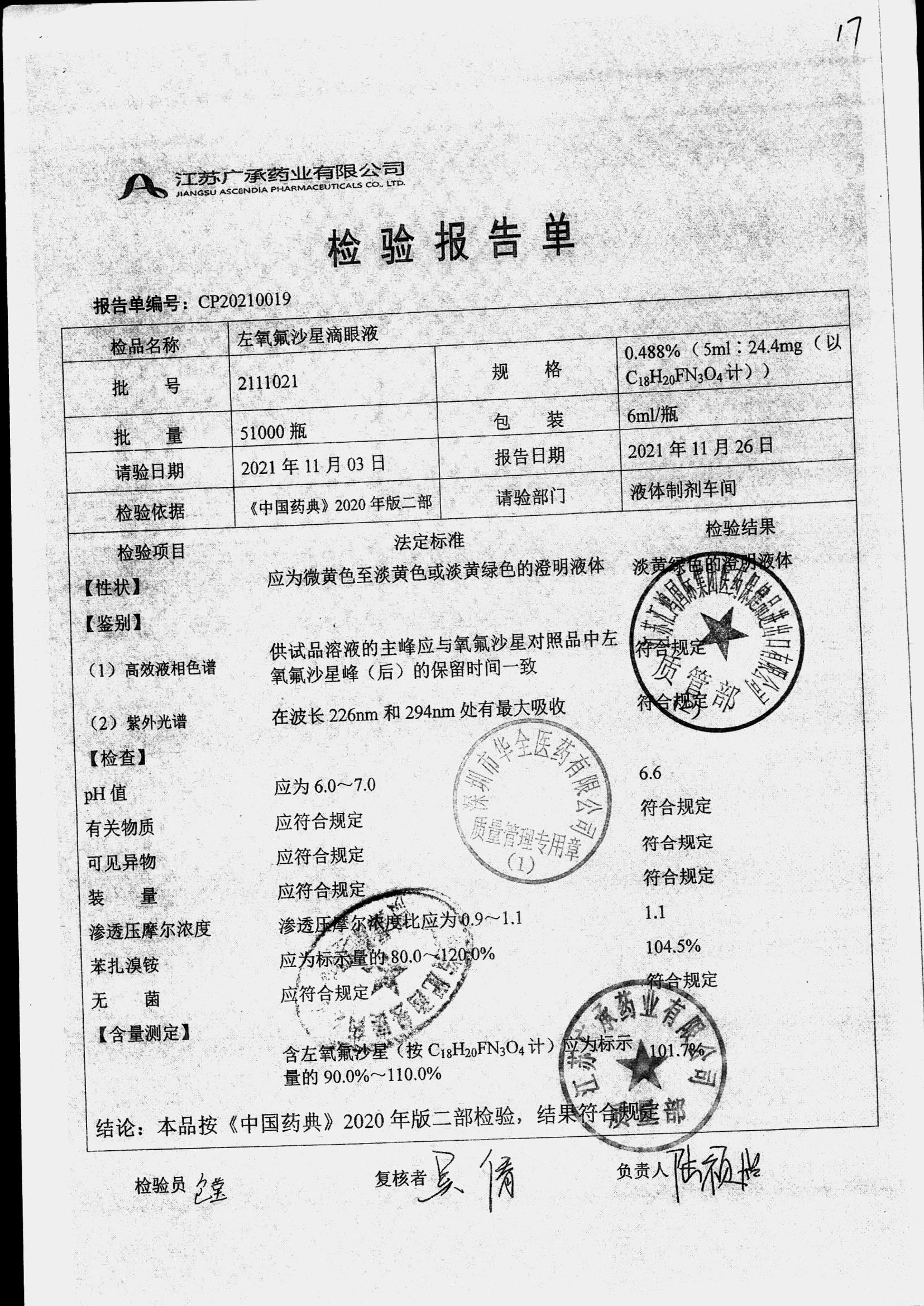 左氧氟沙星滴眼液 | 0.488%*6ml | 2111021 | 查看详情 |