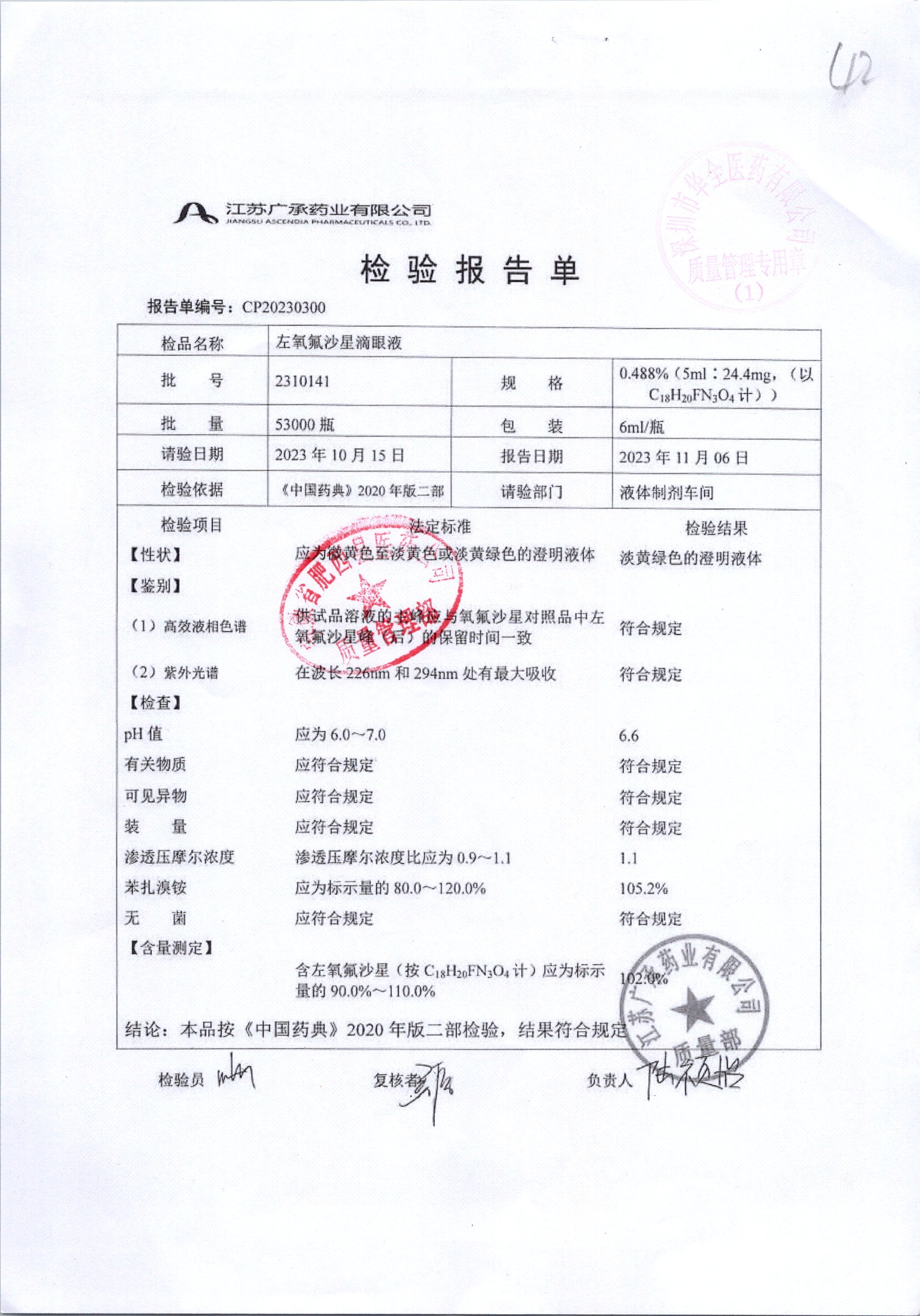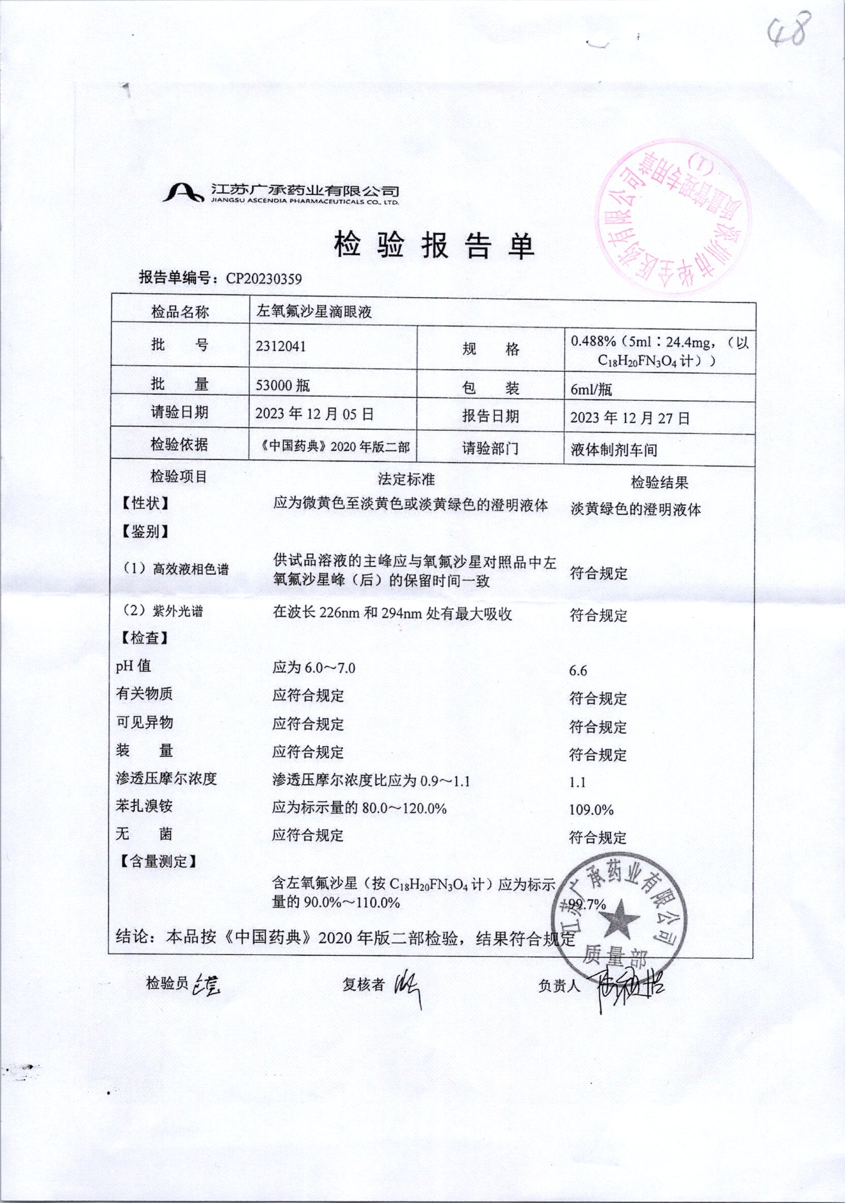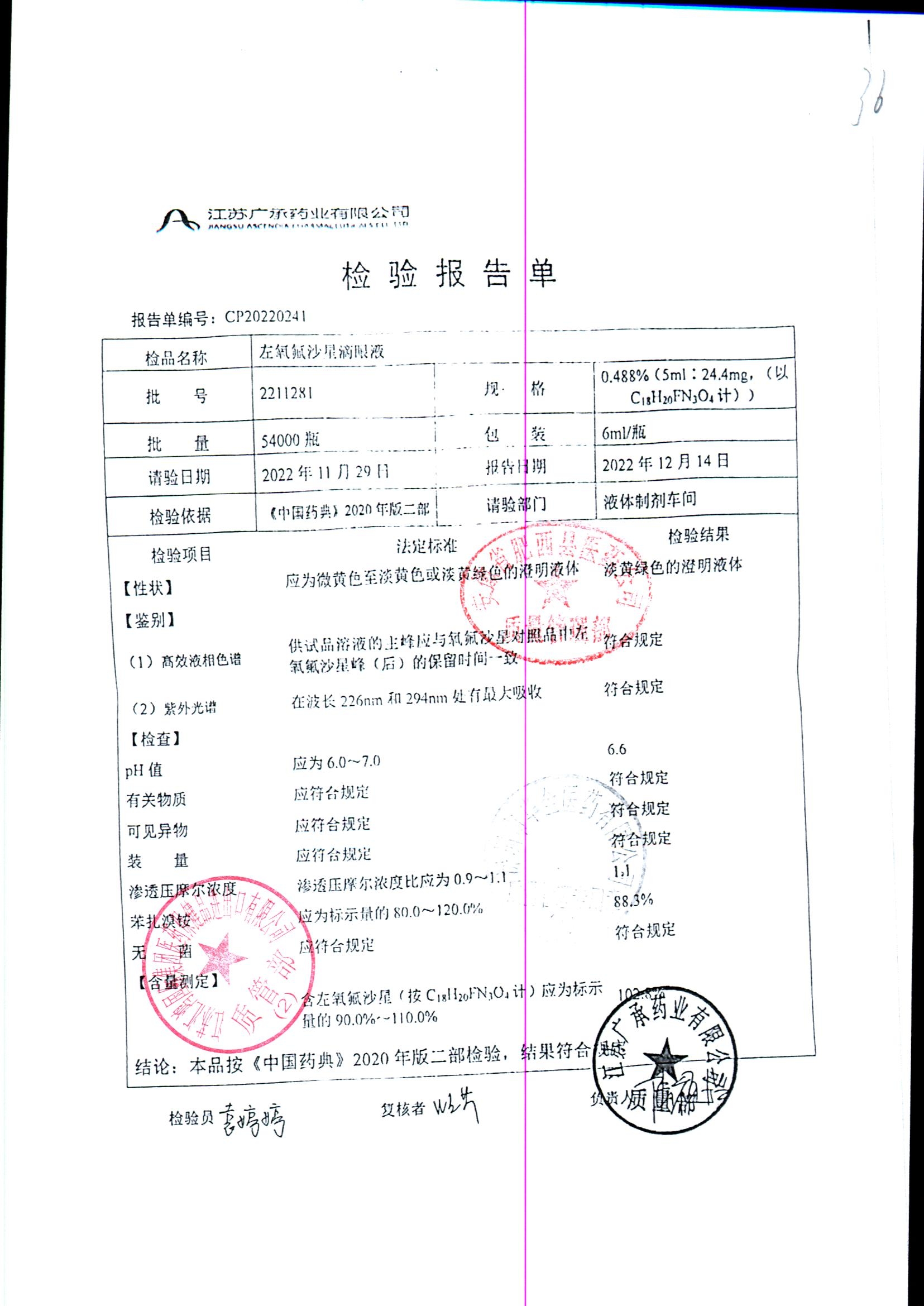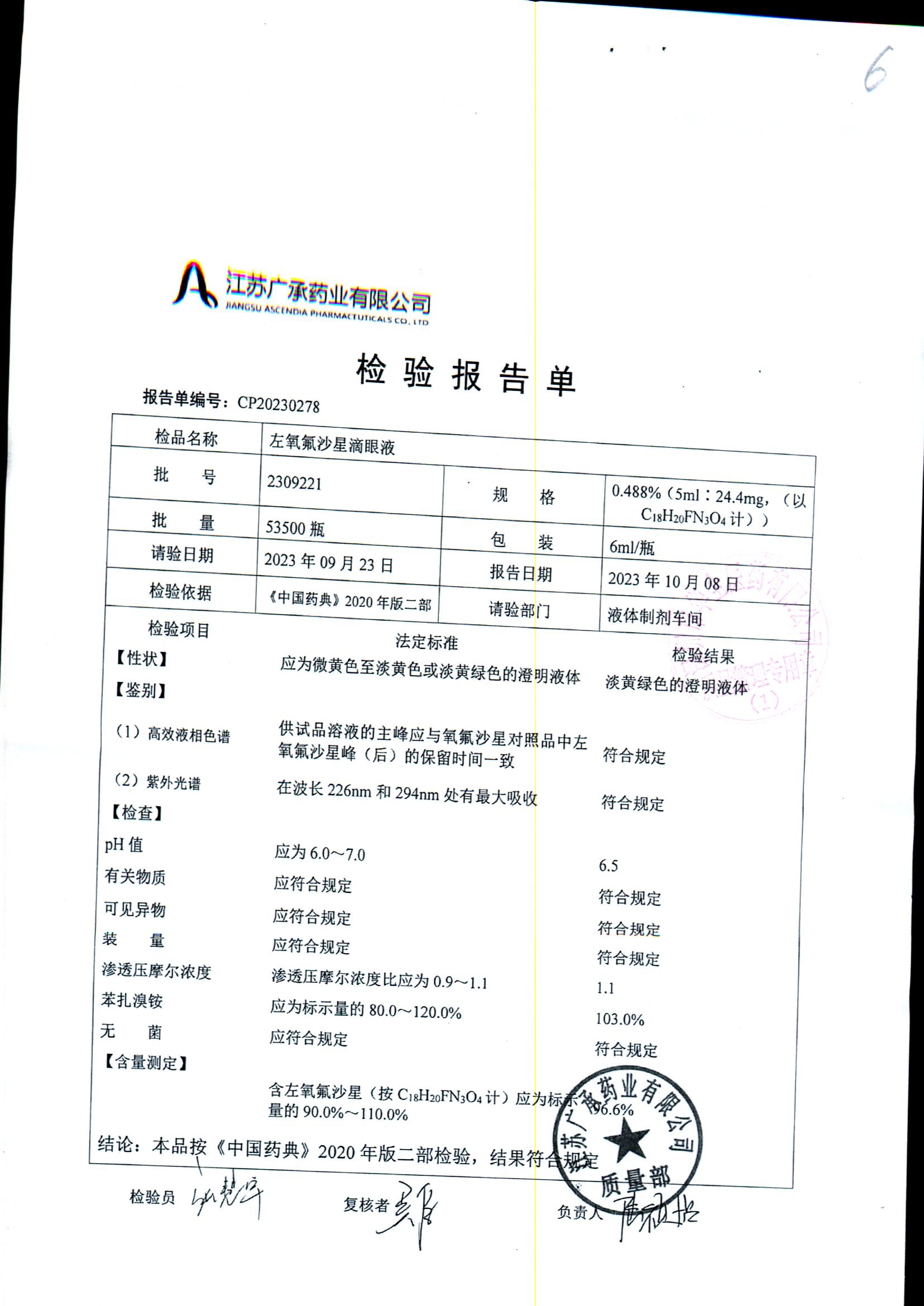 左氧氟沙星滴眼液 | 0.488%*6ml | 2312041 | 查看详情 |