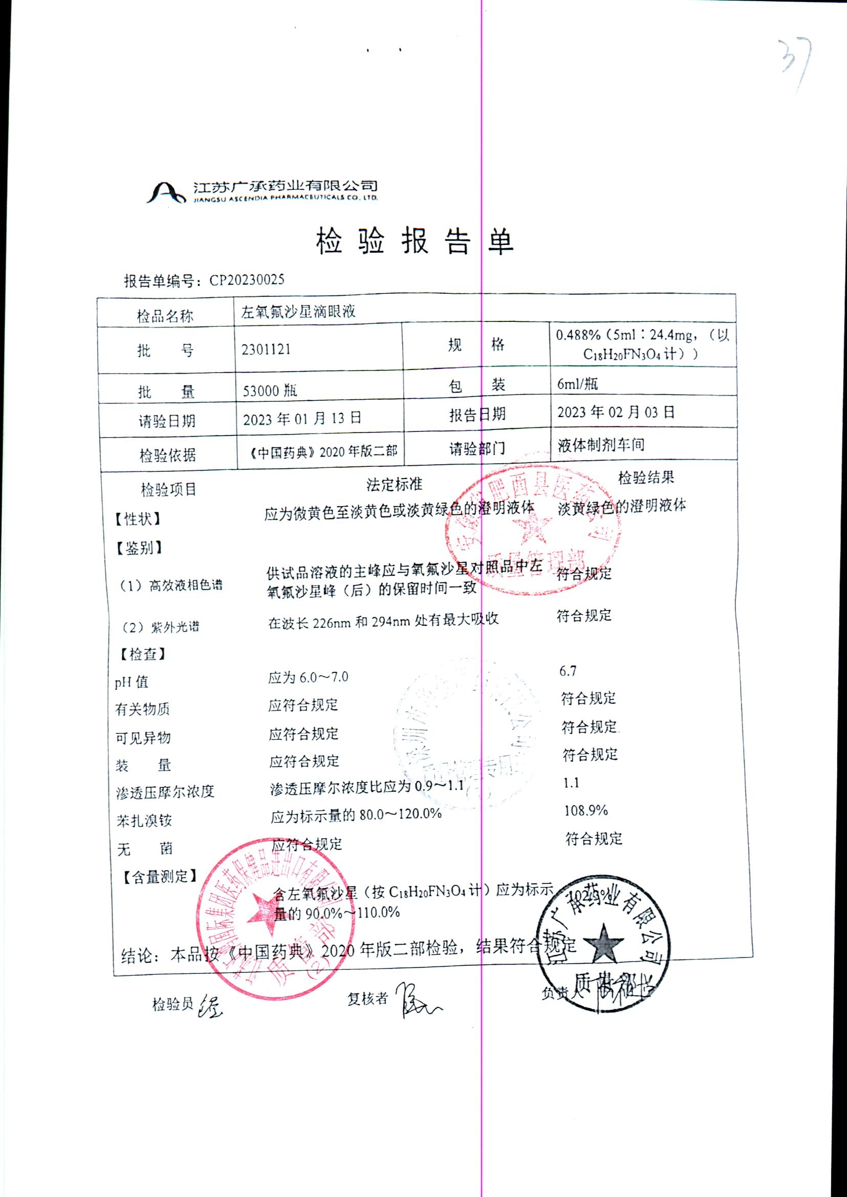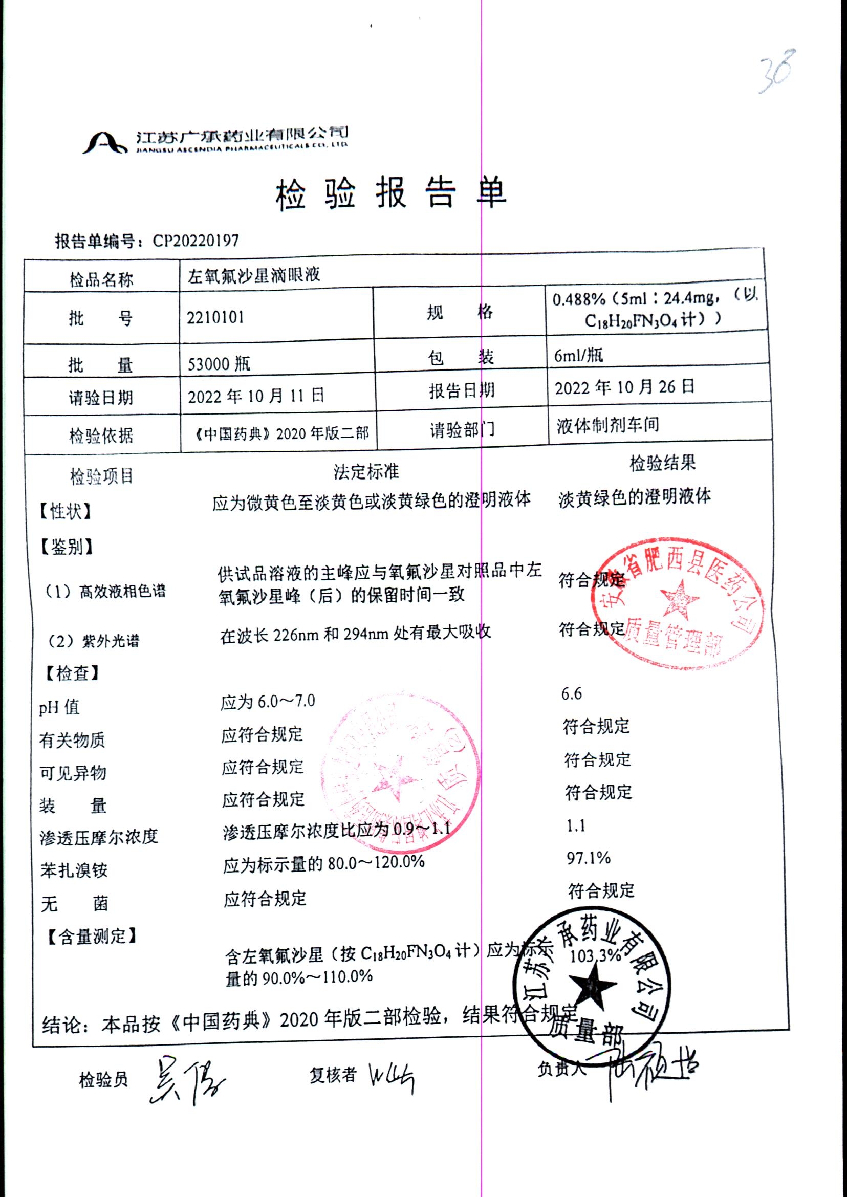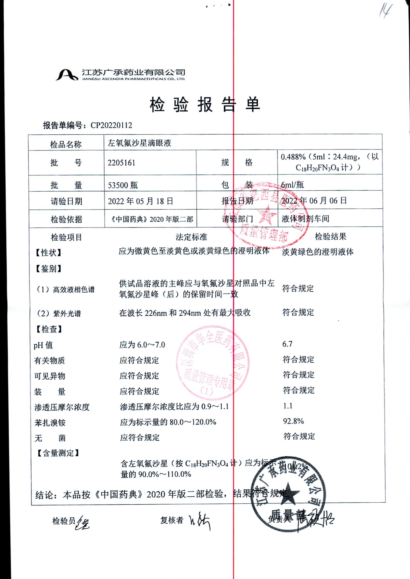 左氧氟沙星滴眼液 | 0.488%*6ml | 2312041 | 查看详情 |