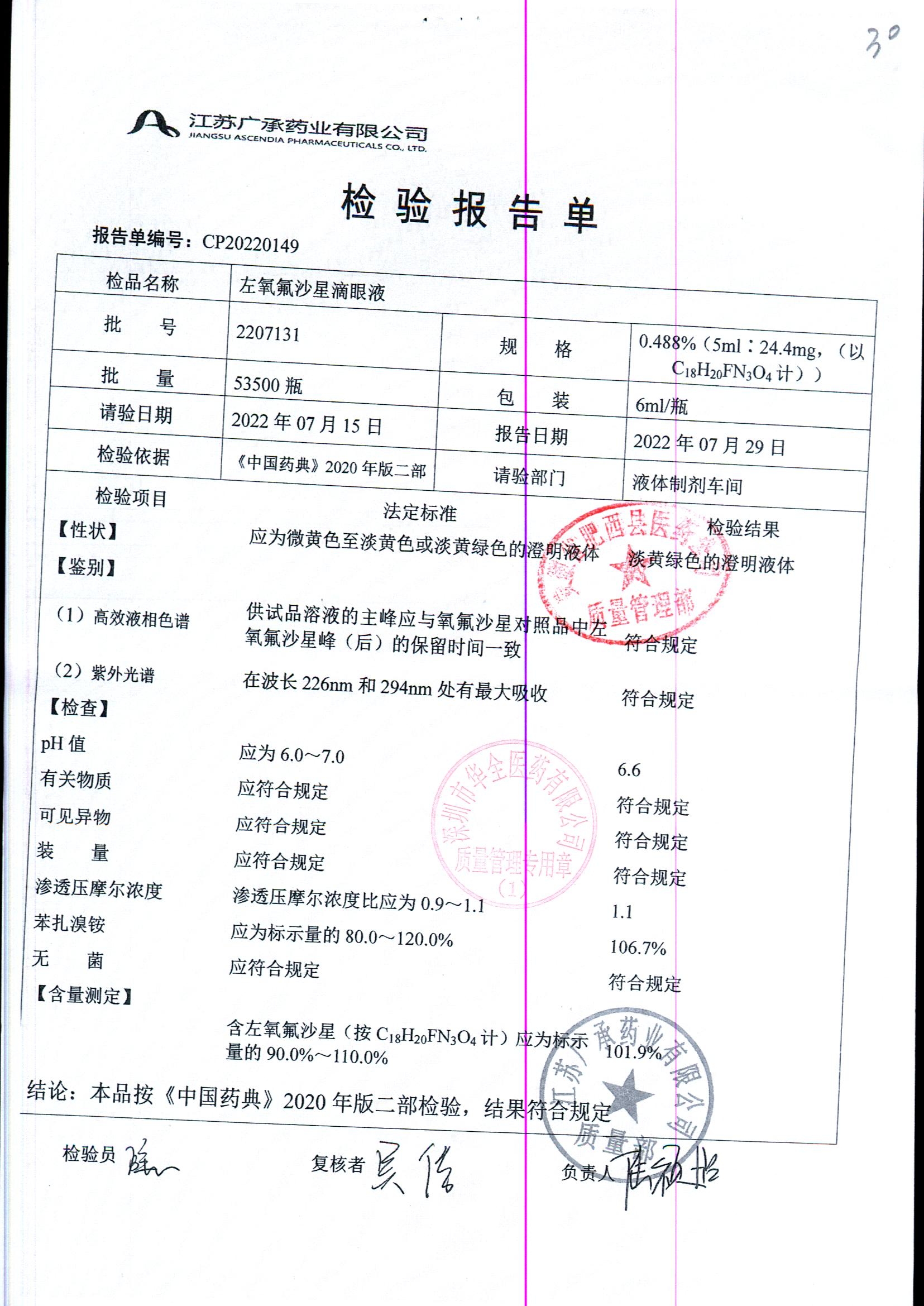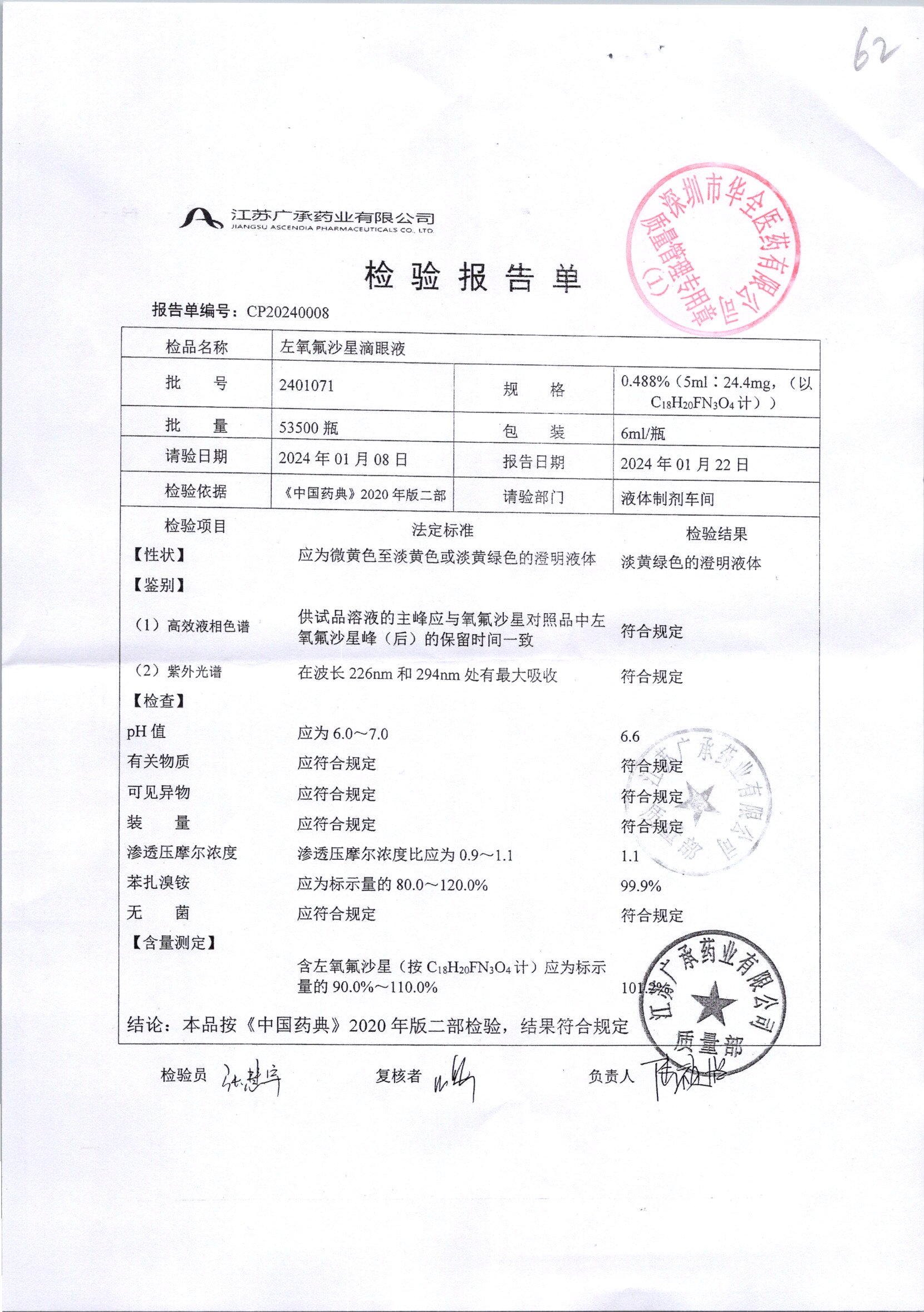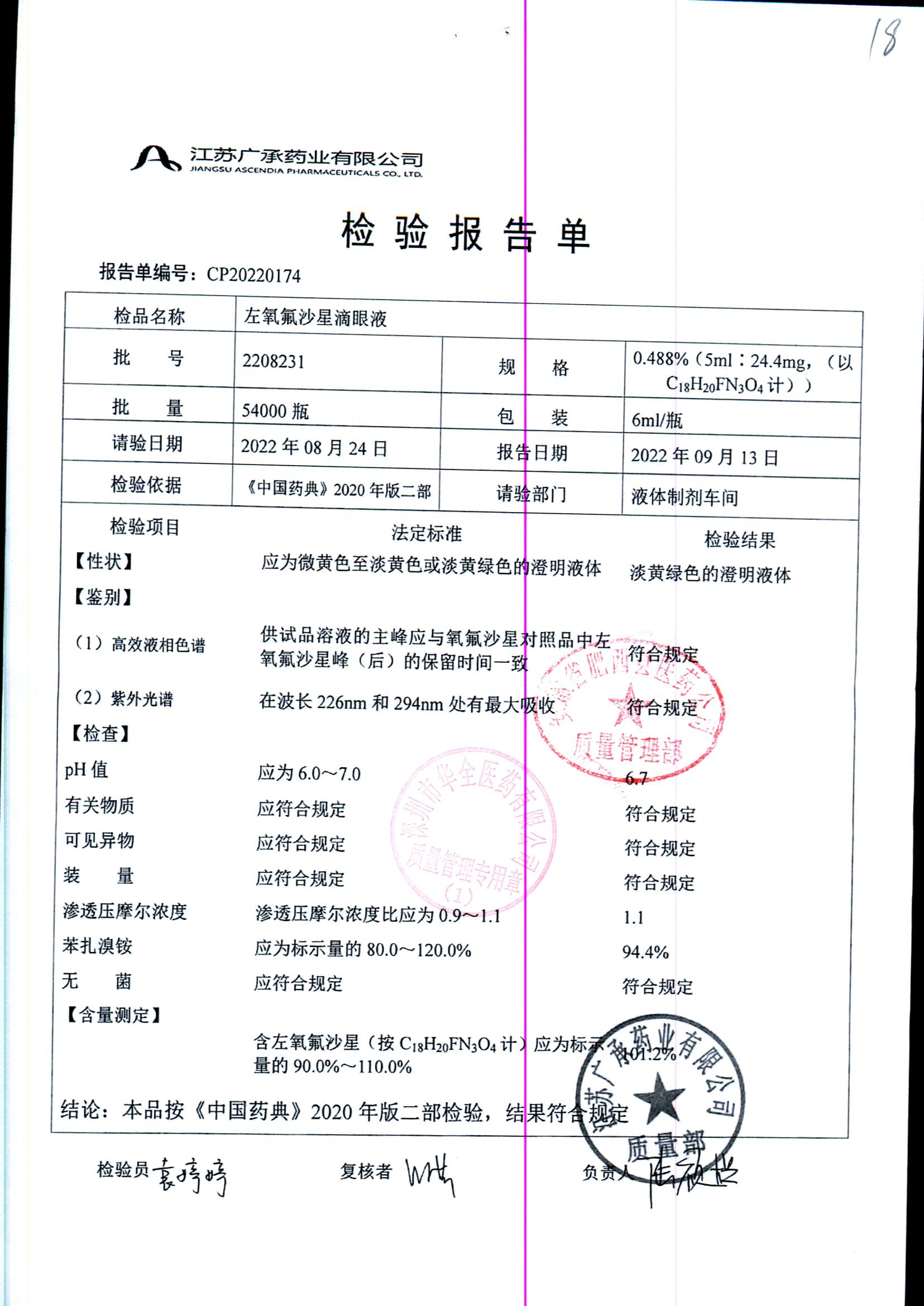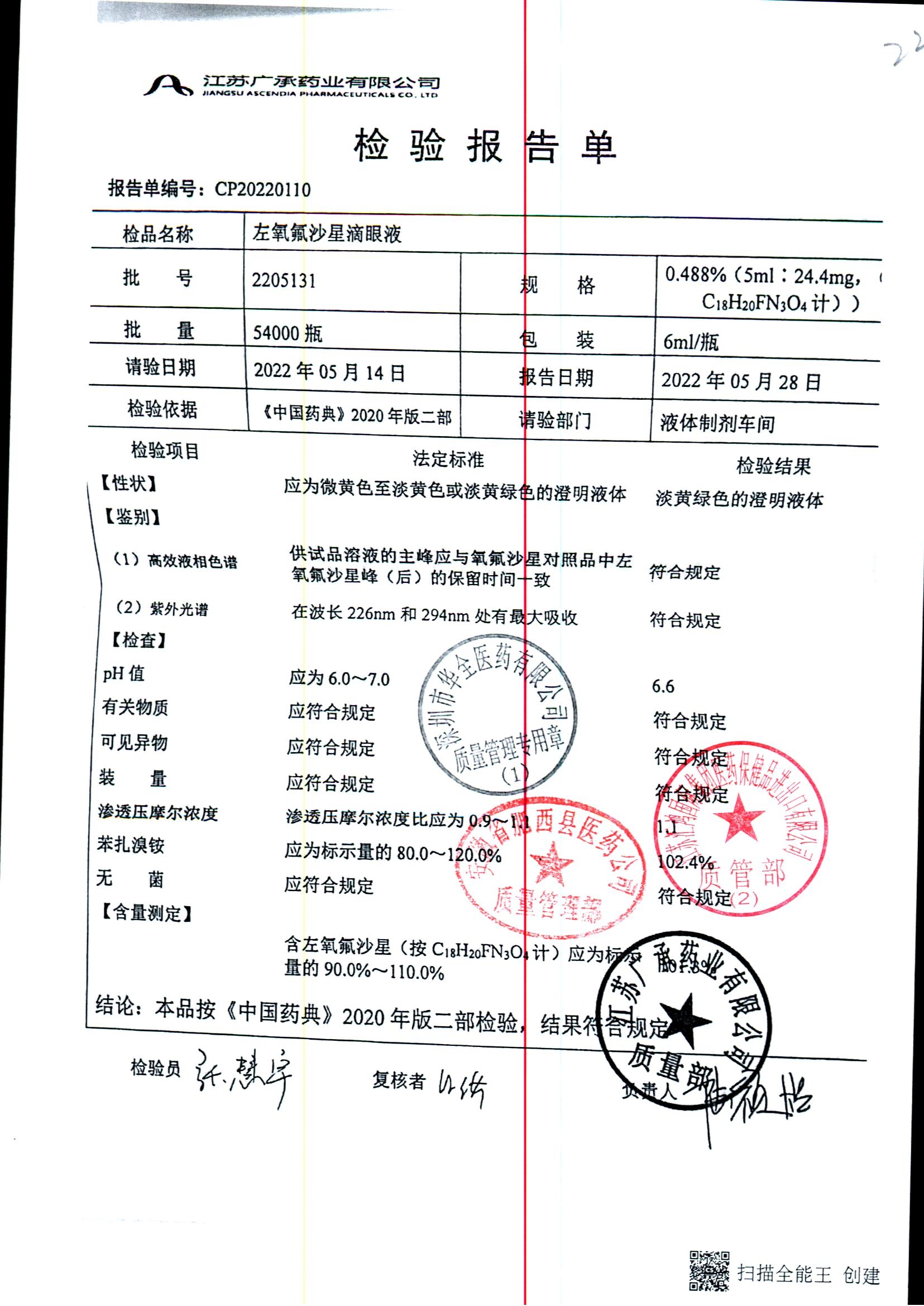 左氧氟沙星滴眼液 | 0.488%*6ml | 2312041 | 查看详情 |