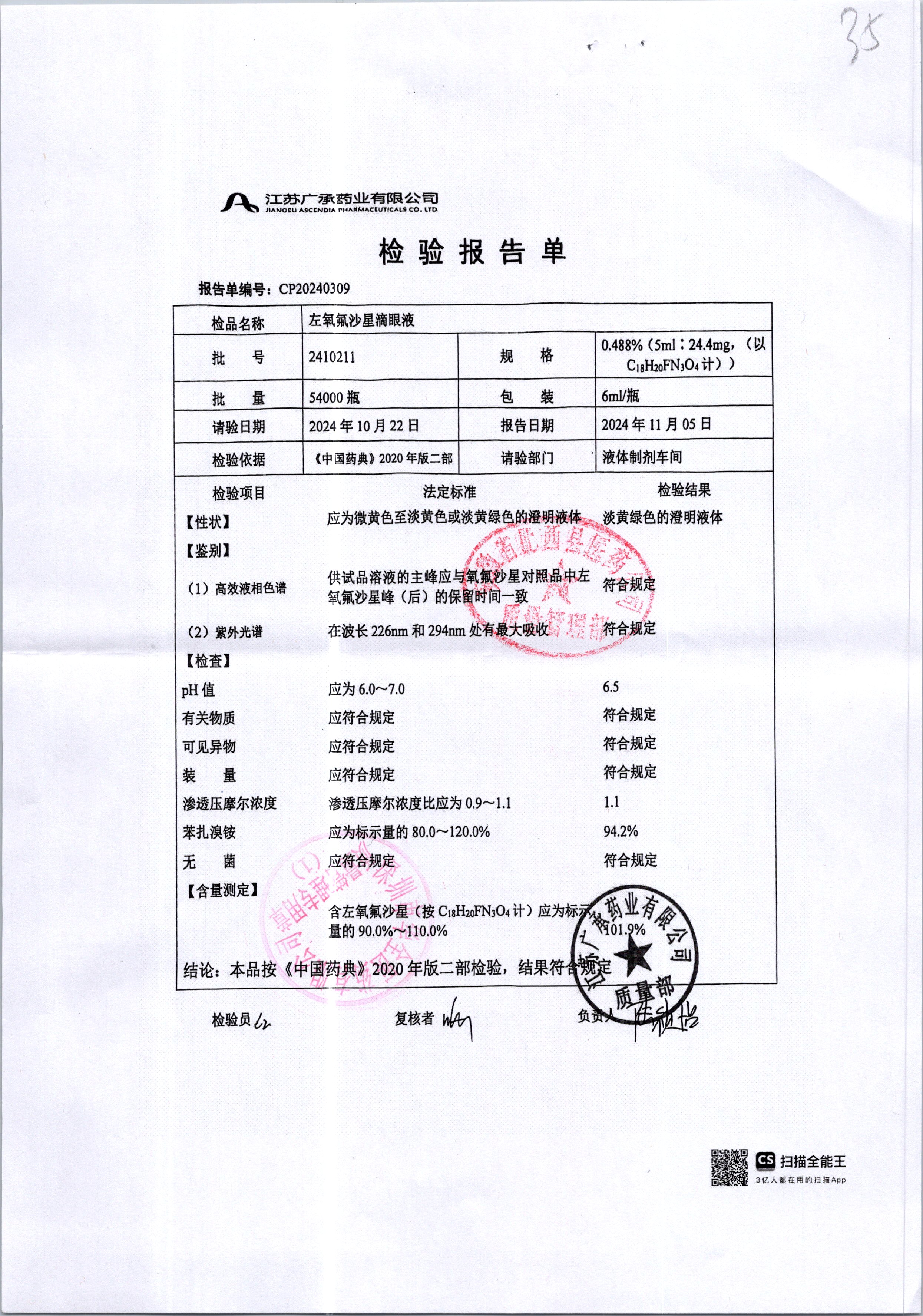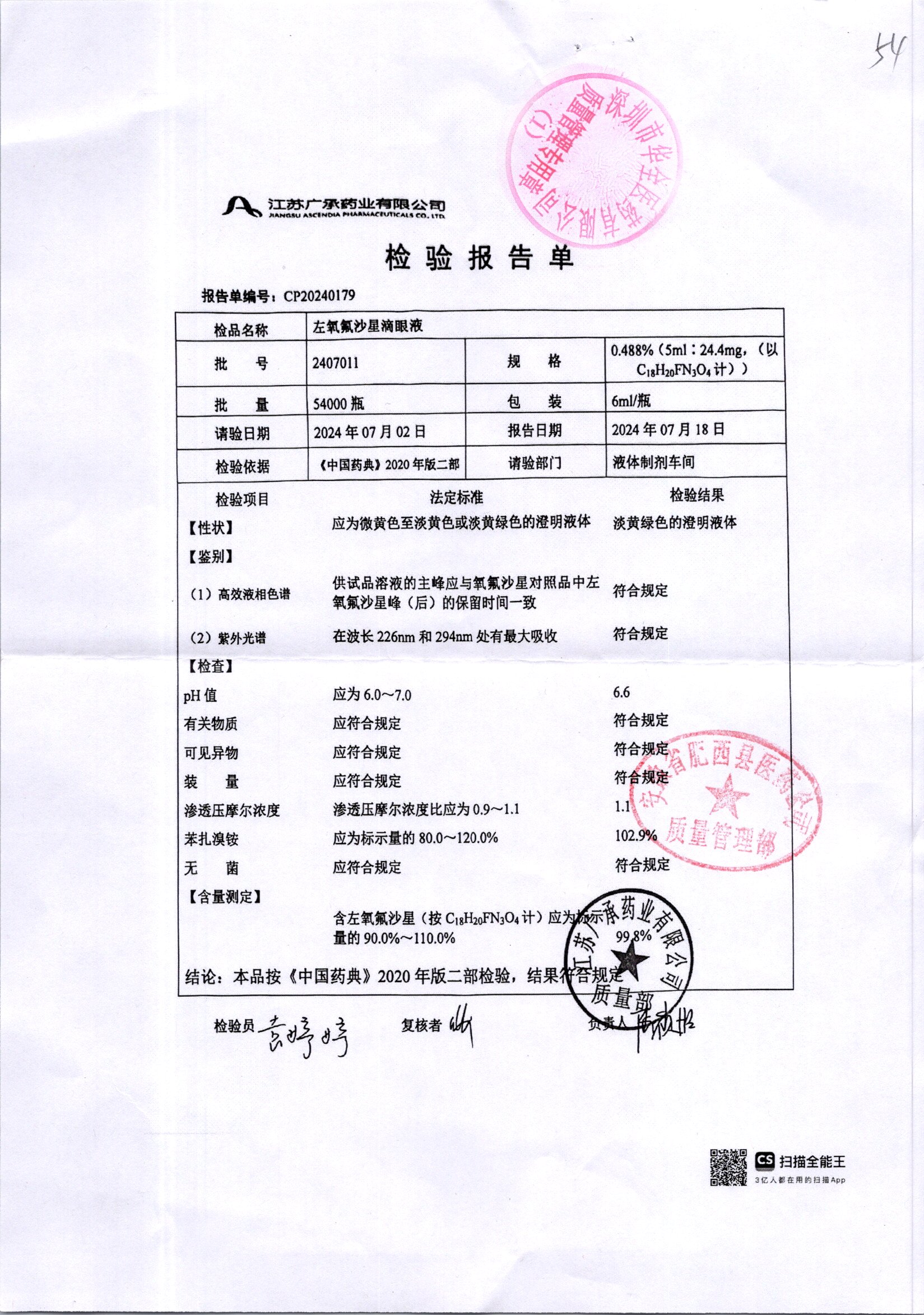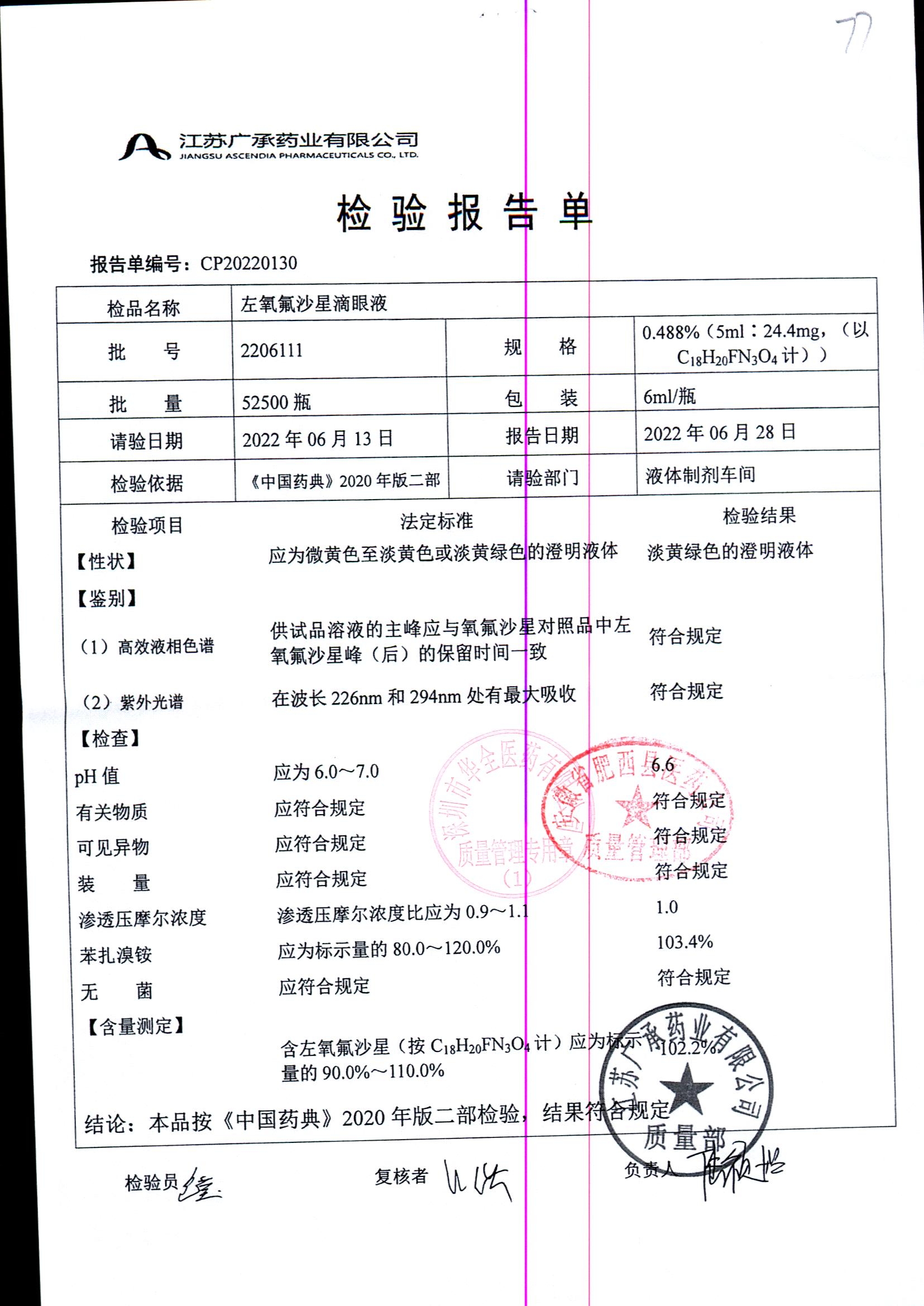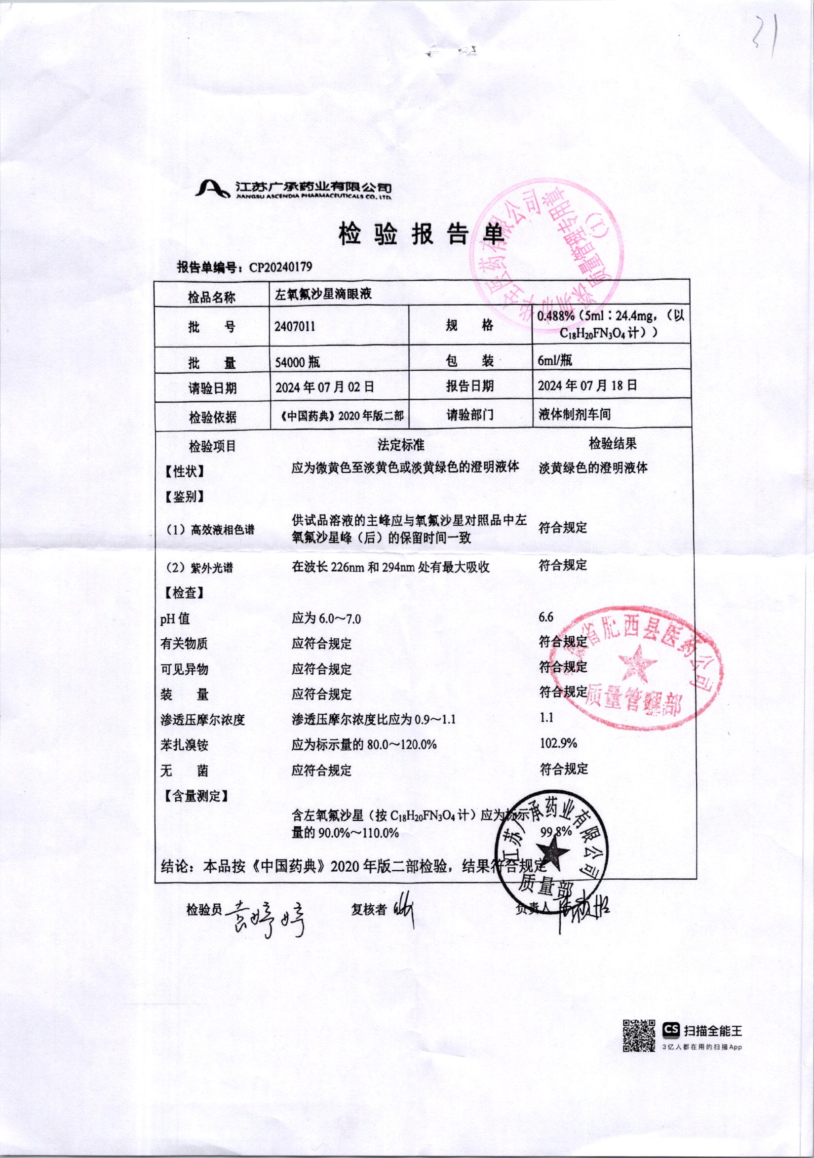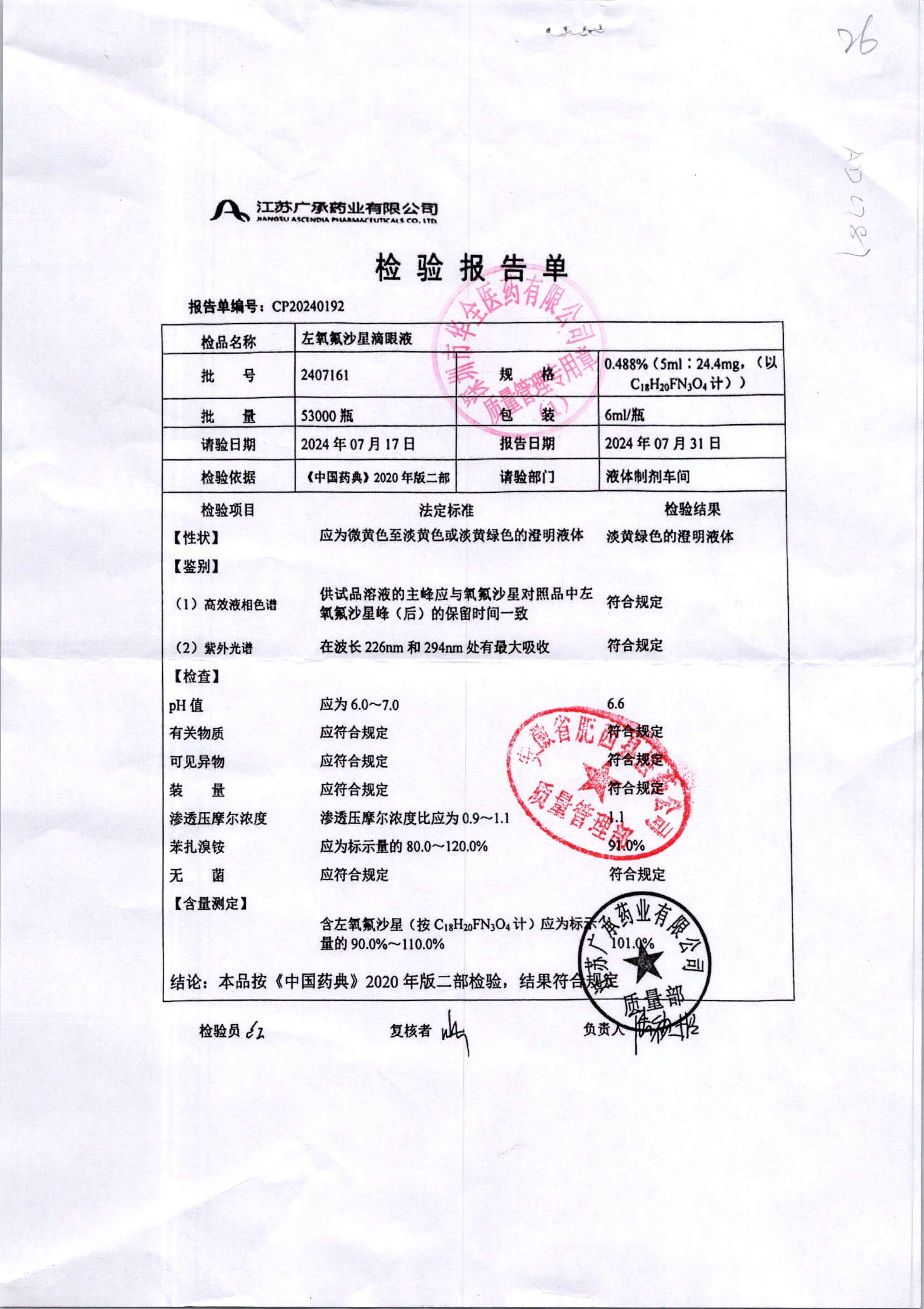 左氧氟沙星滴眼液 | 0.488%*6ml | 2407011 | 查看详情 |