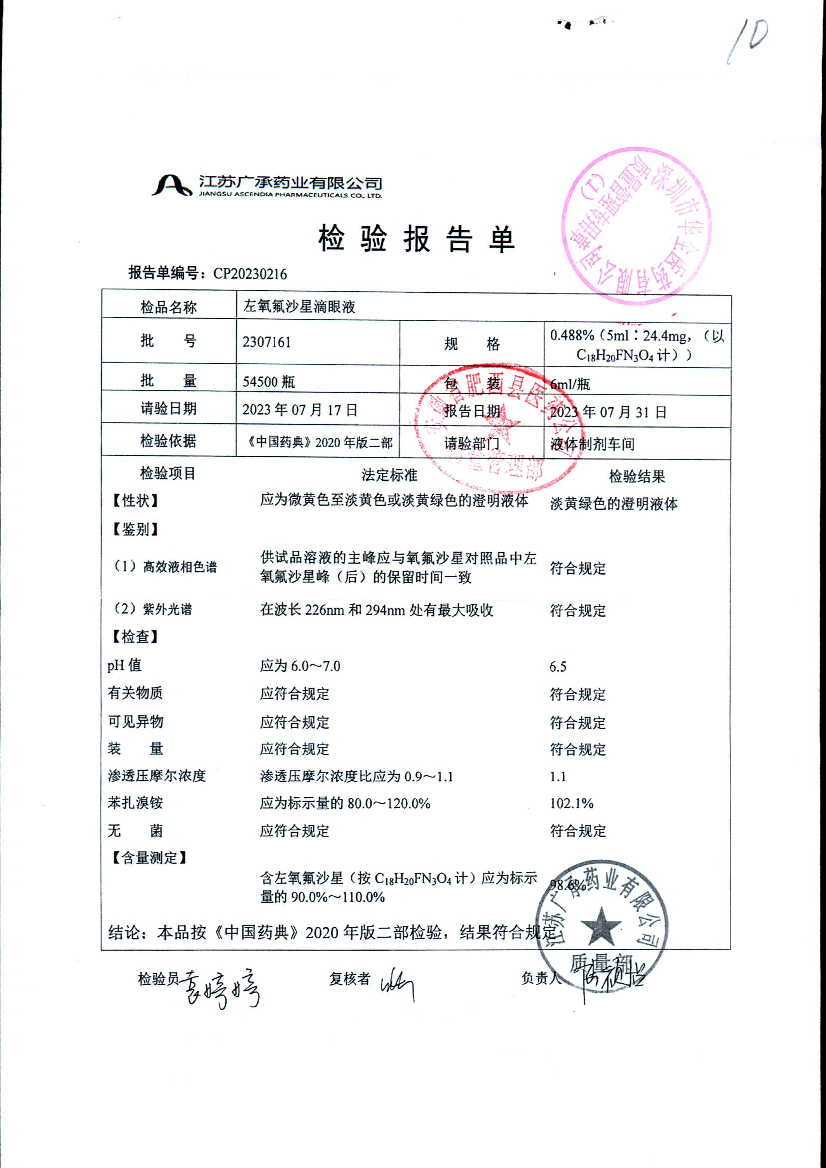 左氧氟沙星滴眼液 | 0.488%*6ml | 2307161 | 查看详情 |