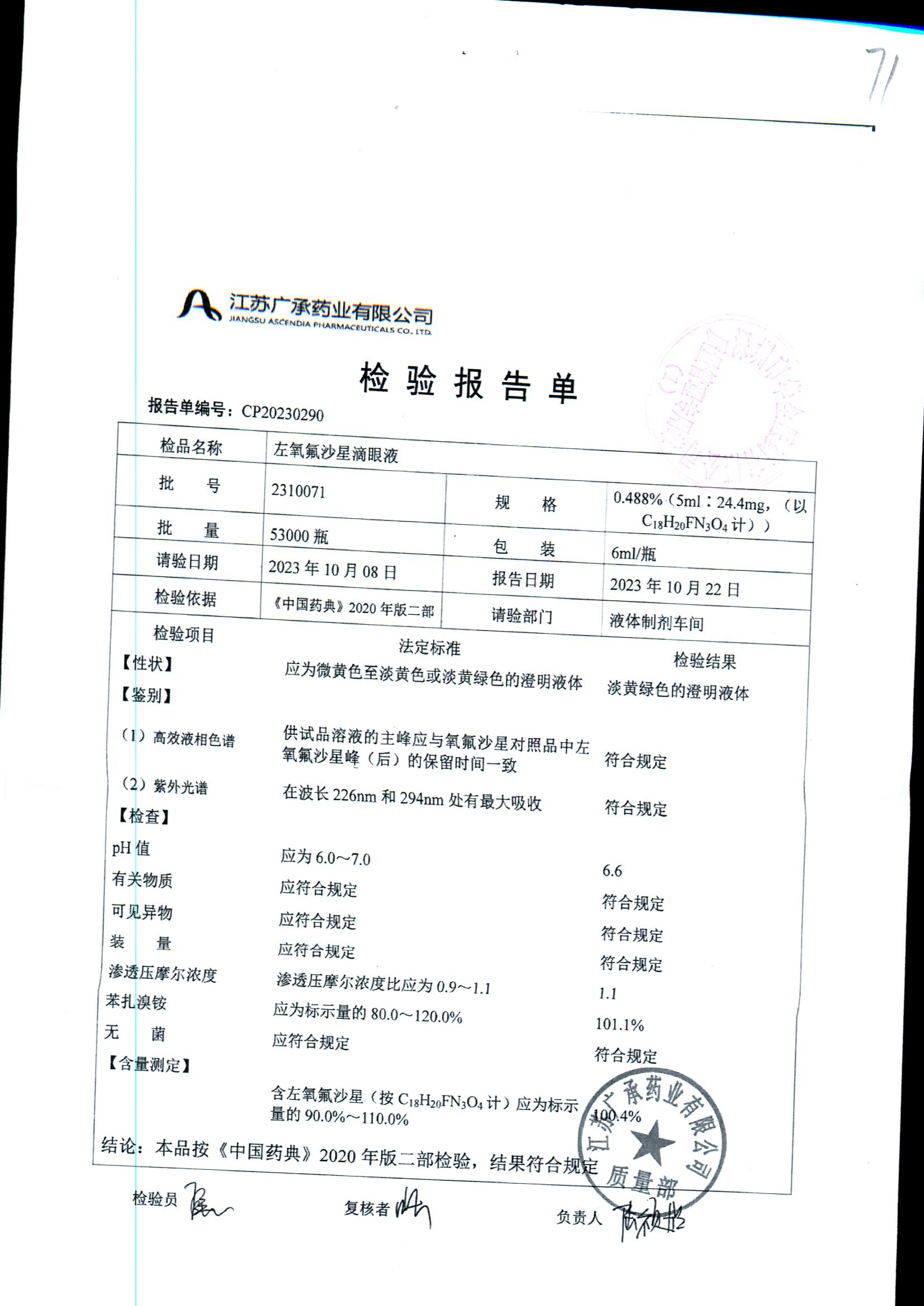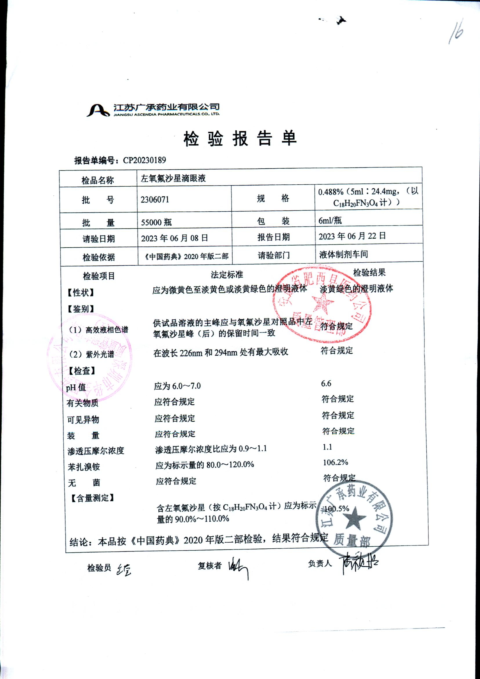 左氧氟沙星滴眼液 | 0.488%*6ml | 2306071 | 查看详情 |