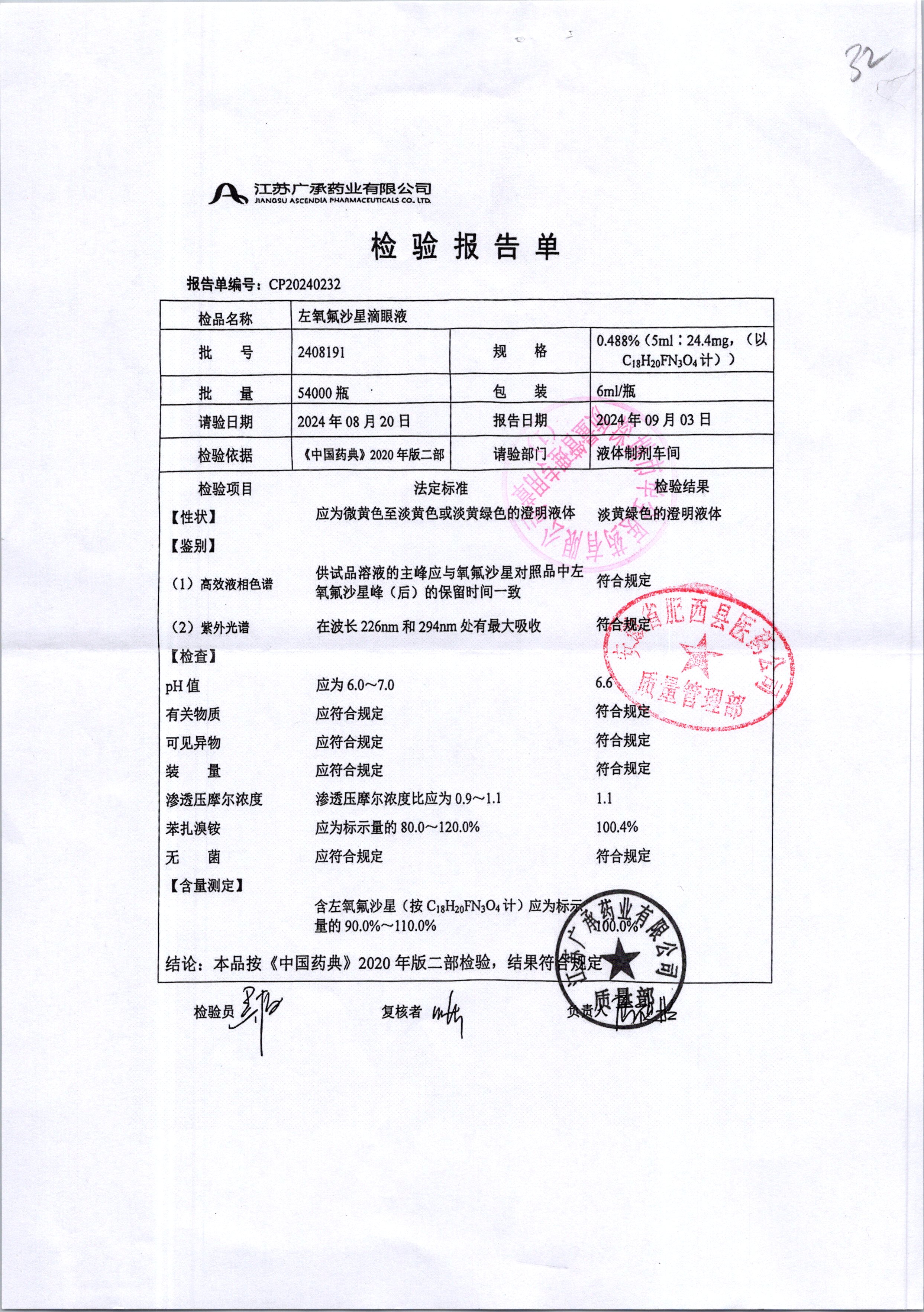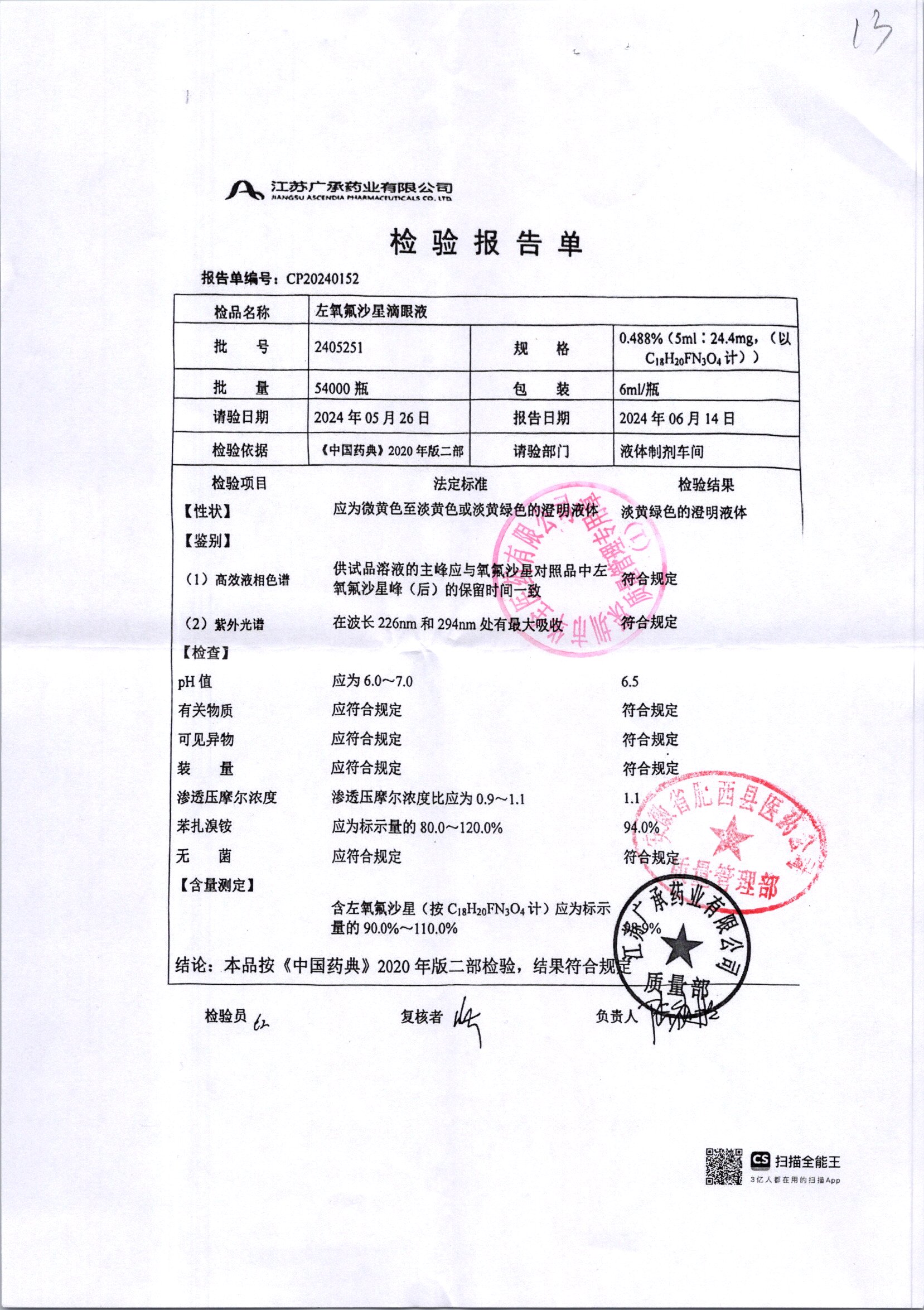 左氧氟沙星滴眼液 | 0.488%*6ml | 2405251 | 查看详情 |