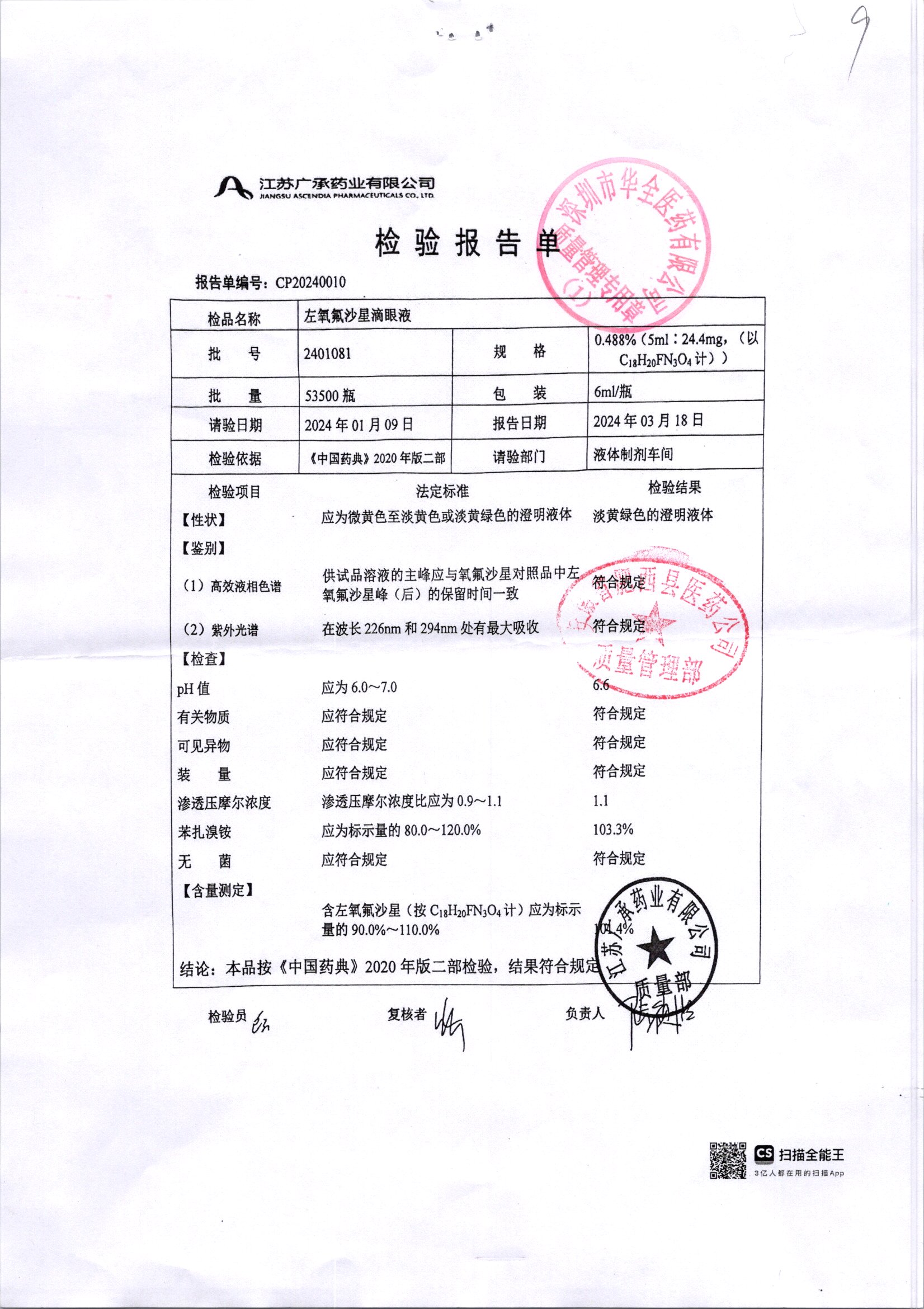 左氧氟沙星滴眼液 | 0.488%*6ml | 2401081 | 查看详情 |
