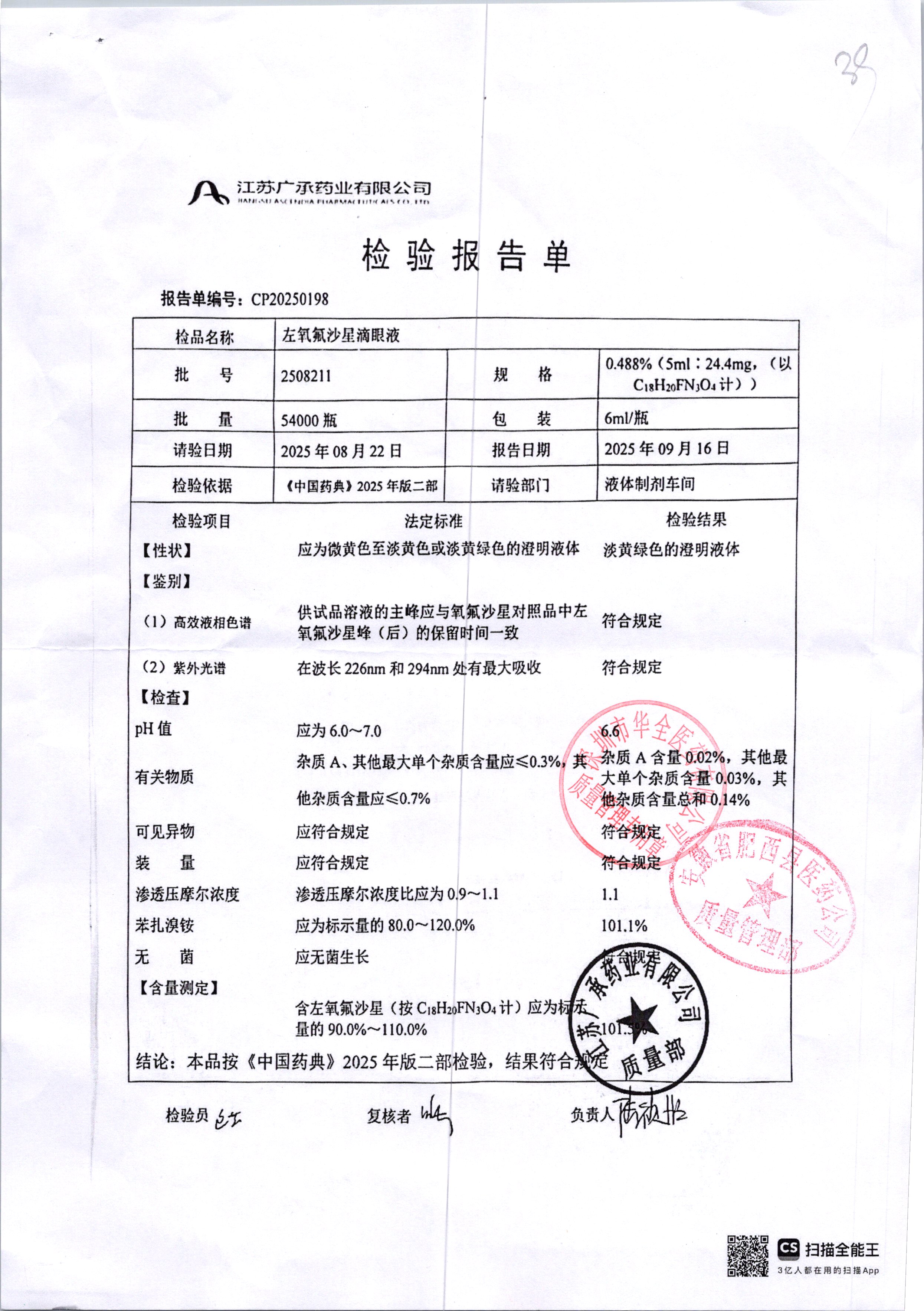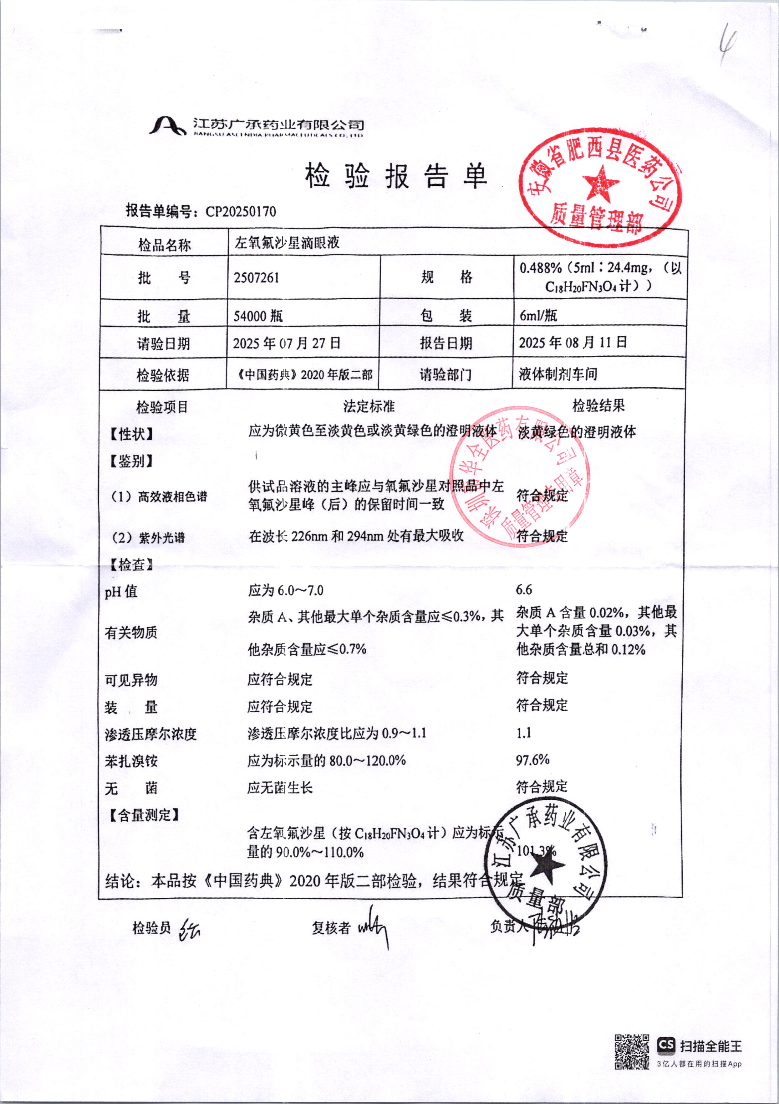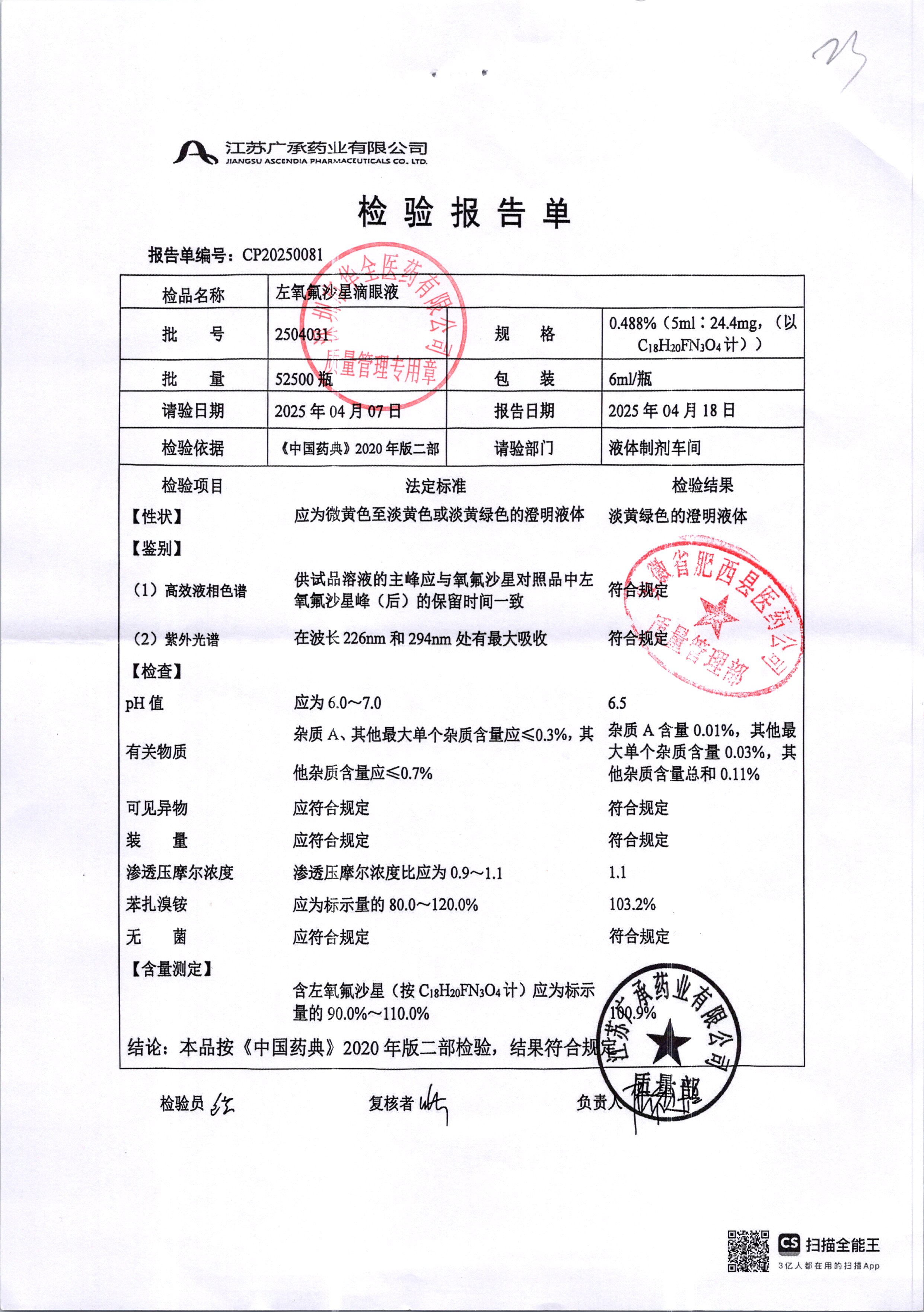 左氧氟沙星滴眼液 | 0.488%*6ml | 2504031 | 查看详情 |