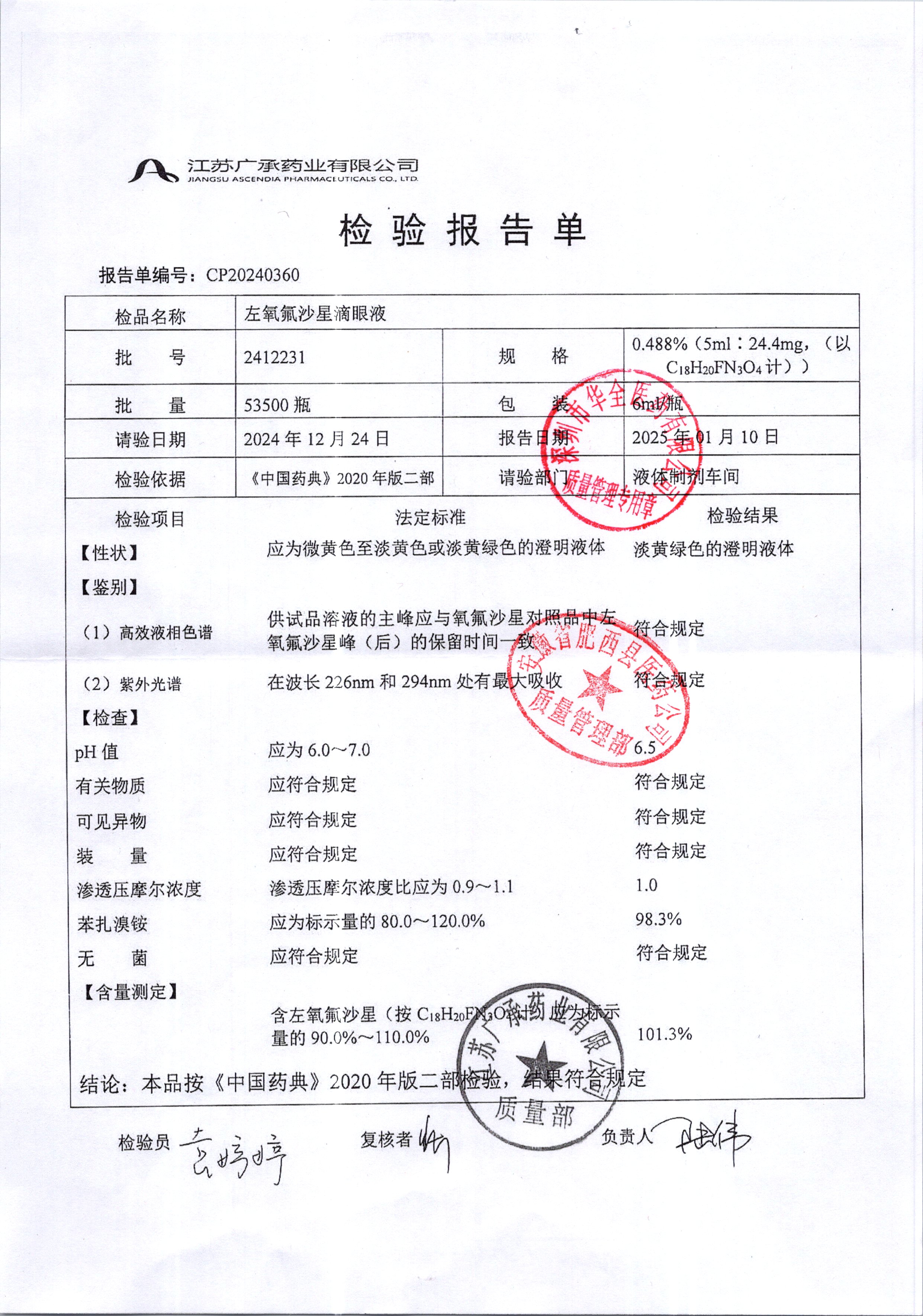 左氧氟沙星滴眼液 | 0.488%*6ml | 2412231 | 查看详情 |