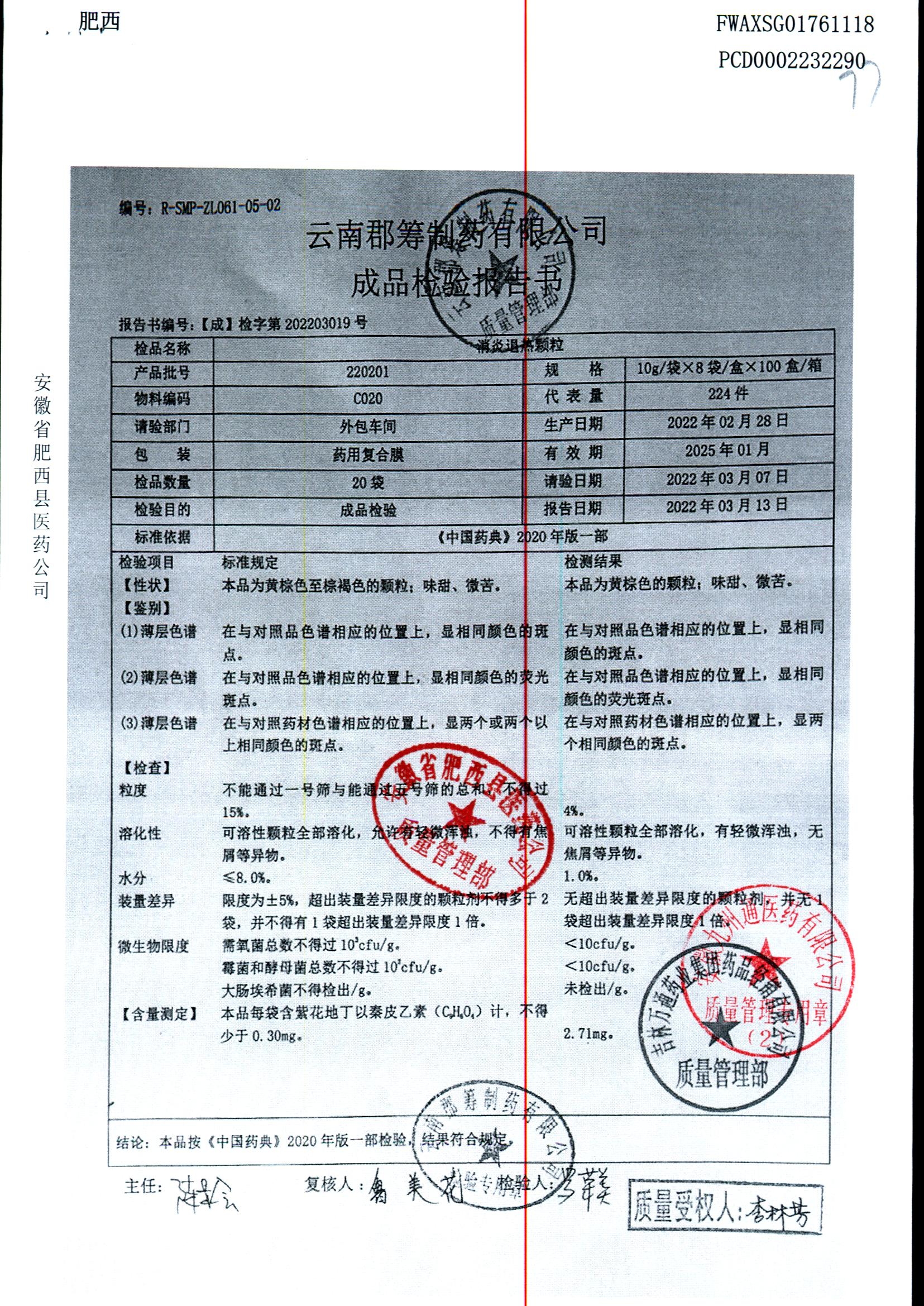 消炎退热颗粒 | 10g*8袋 | 220201 | 查看详情 |