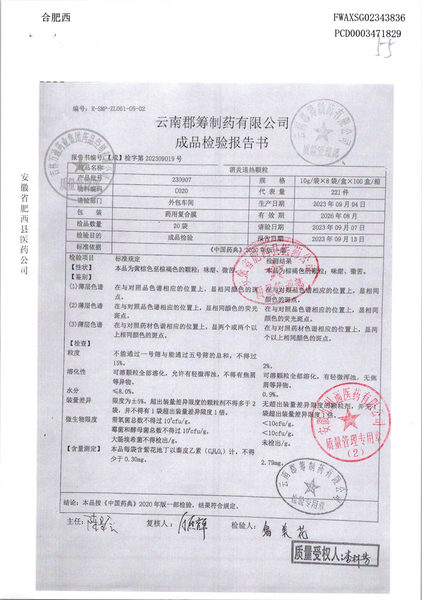 消炎退热颗粒 | 10g*8袋 | 230907 | 查看详情 |