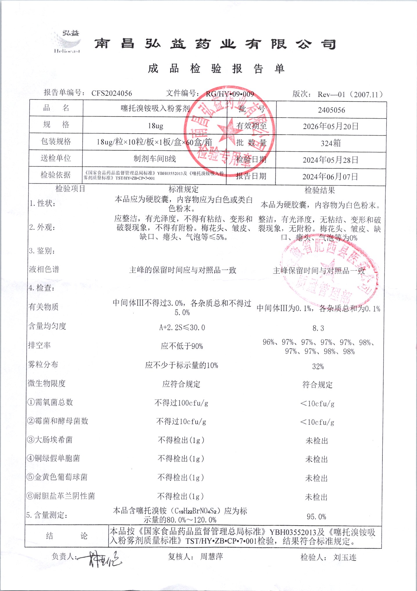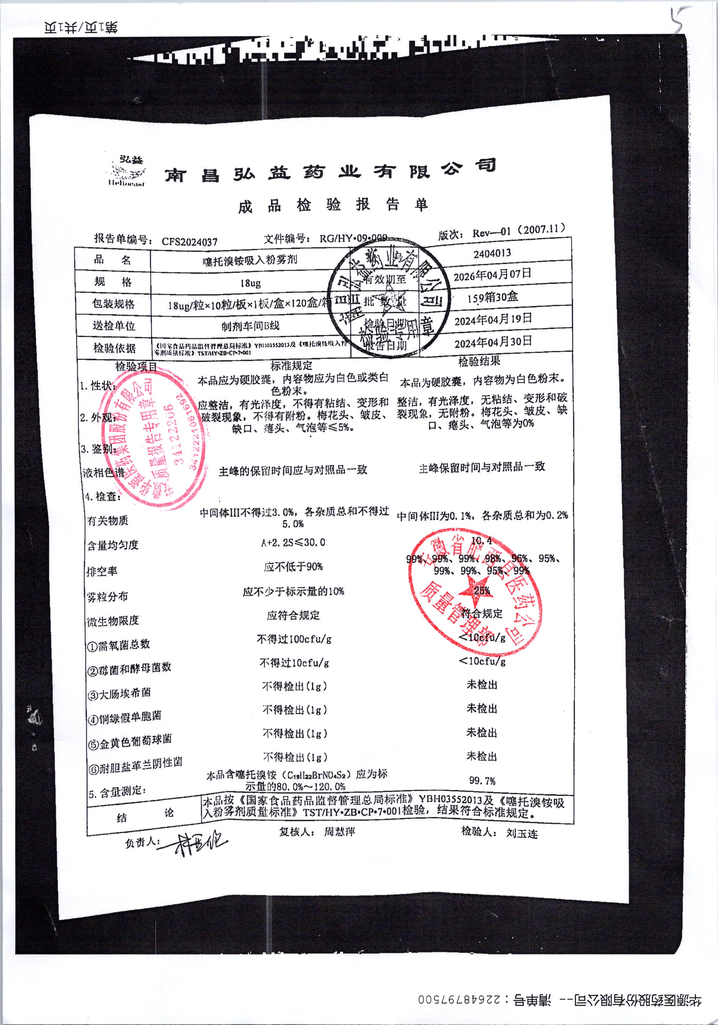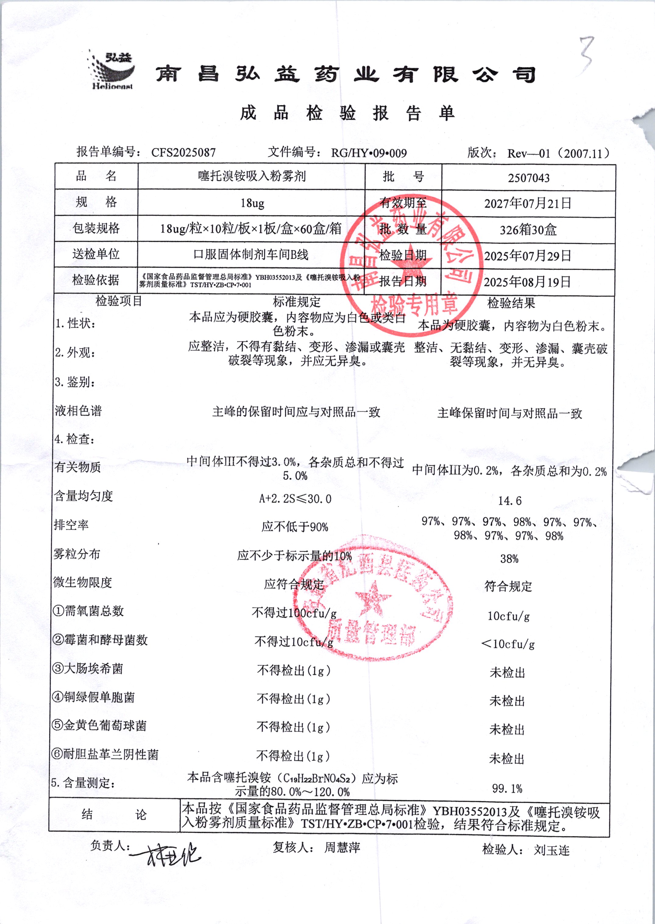 噻托溴铵吸入粉雾剂 | 18微克*10粒(一个Helioeast粉雾吸入器) | 220506 | 查看详情 |
