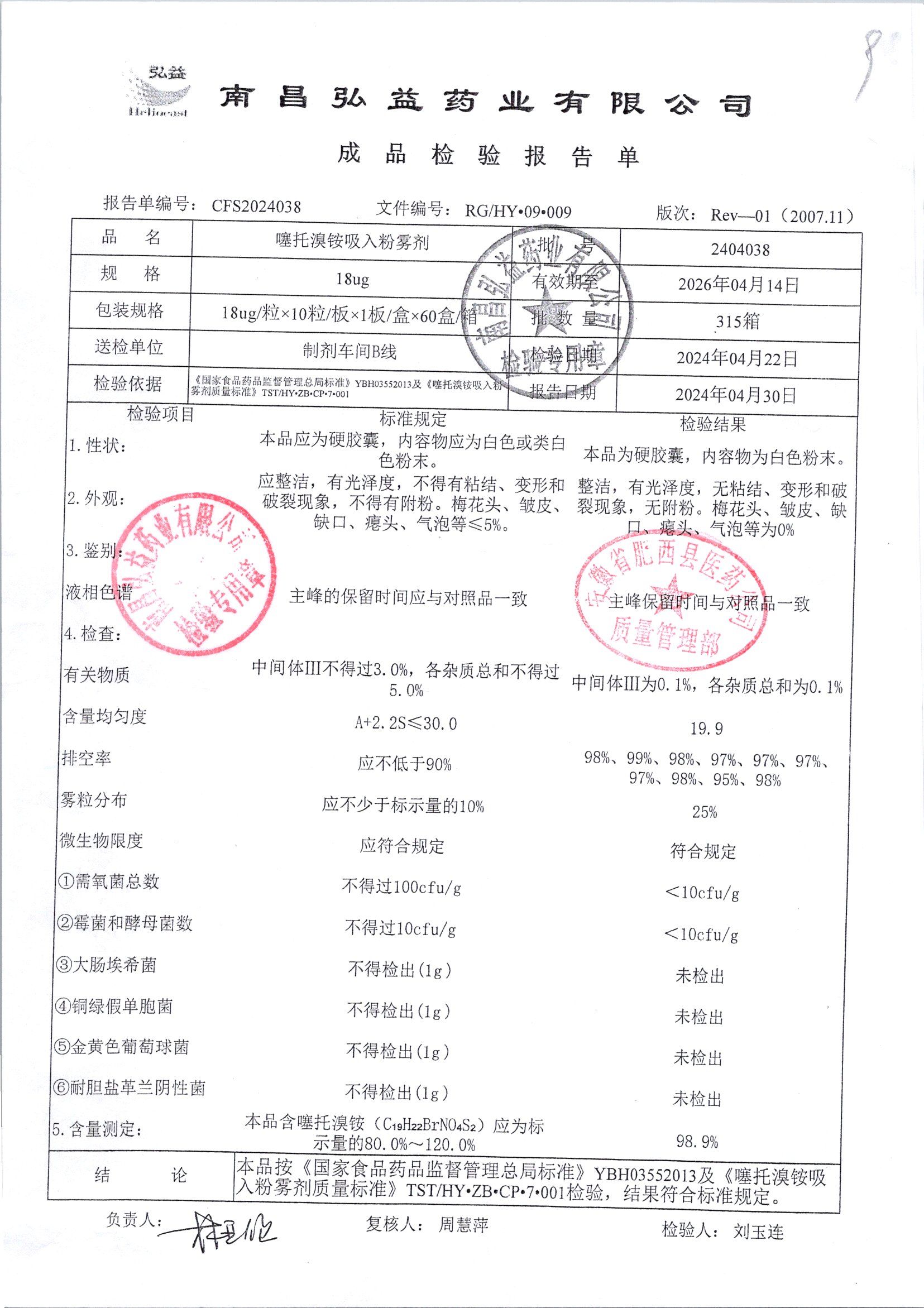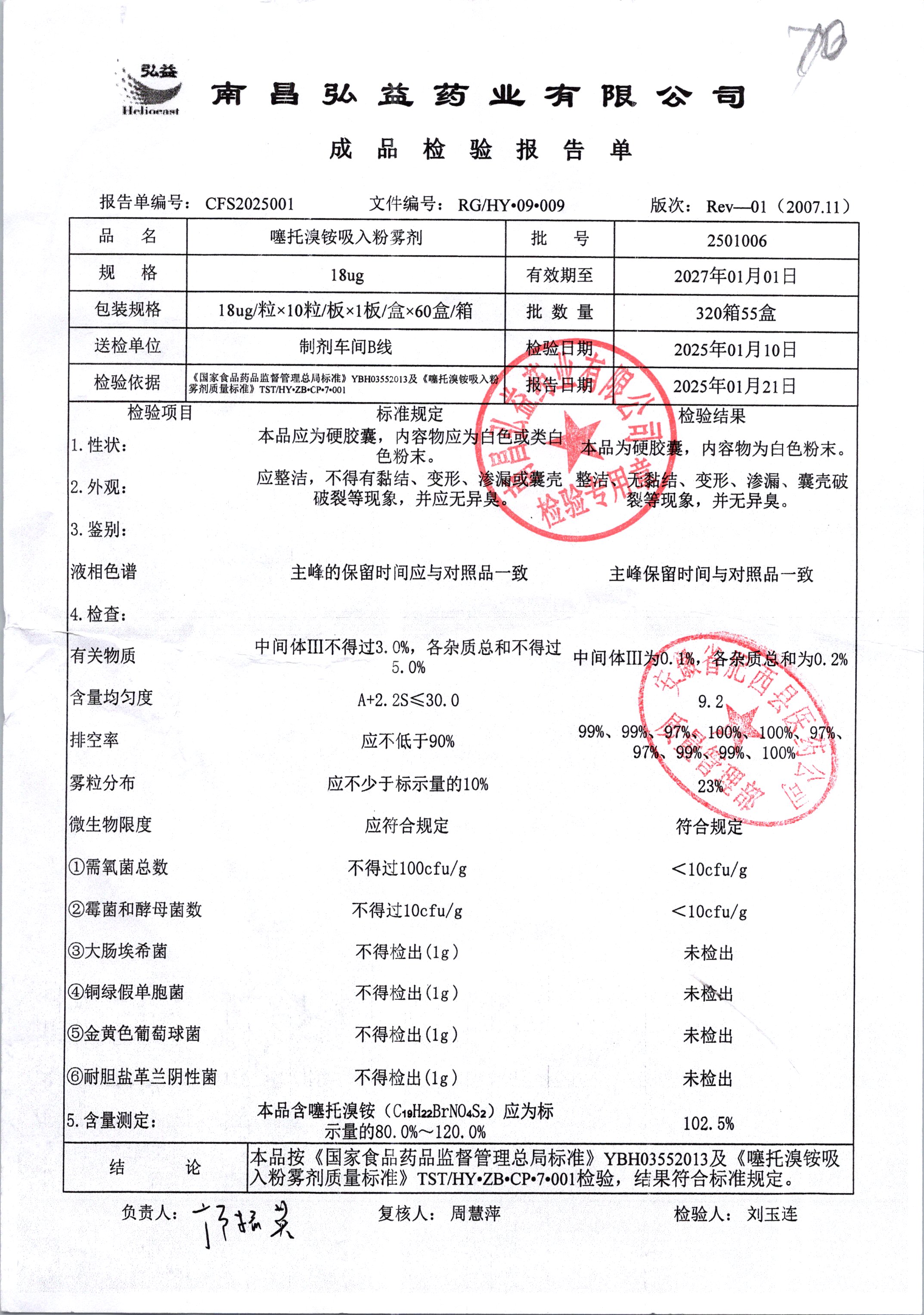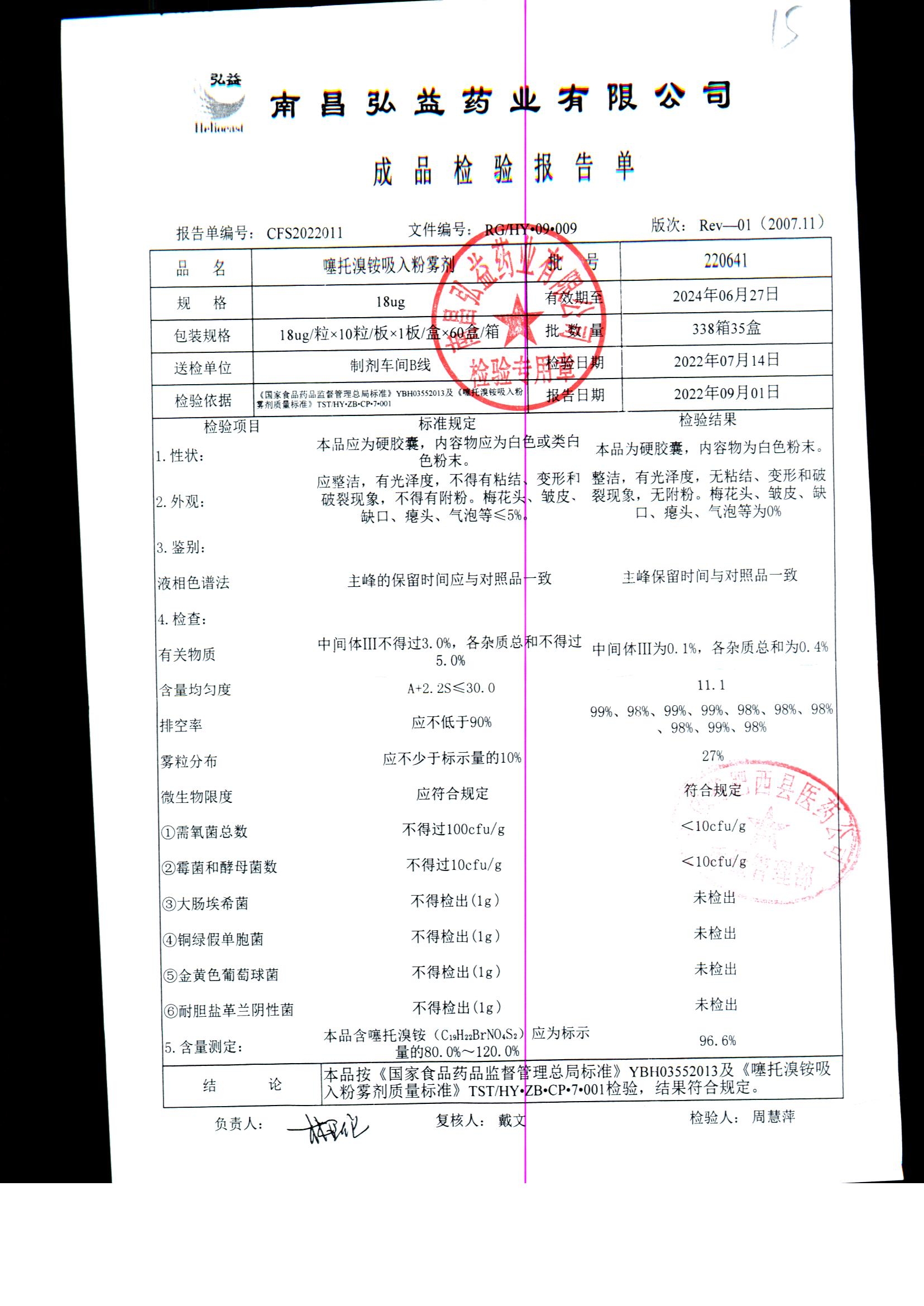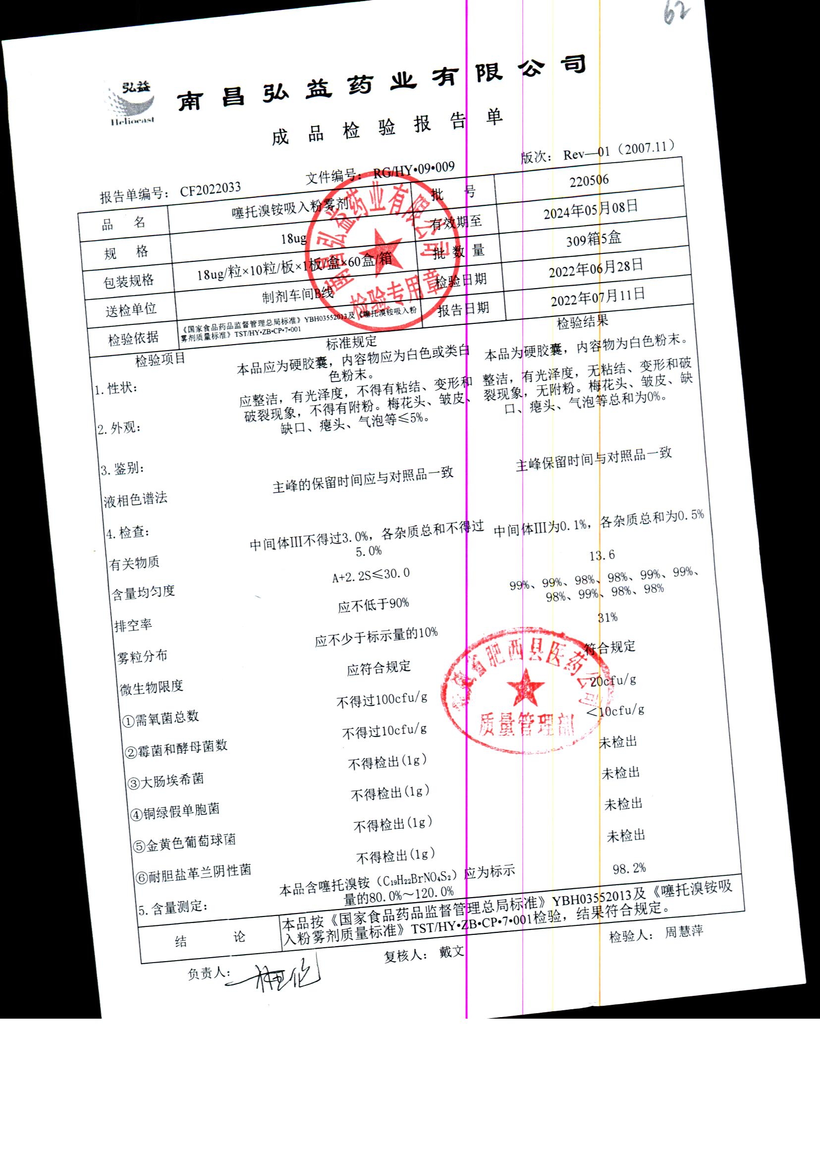噻托溴铵吸入粉雾剂 | 18微克*10粒(一个Helioeast粉雾吸入器) | 220506 | 查看详情 |