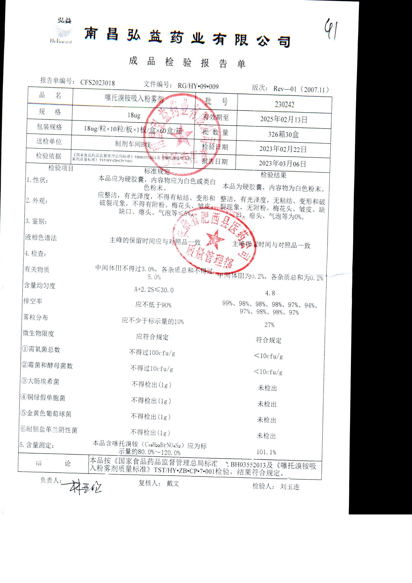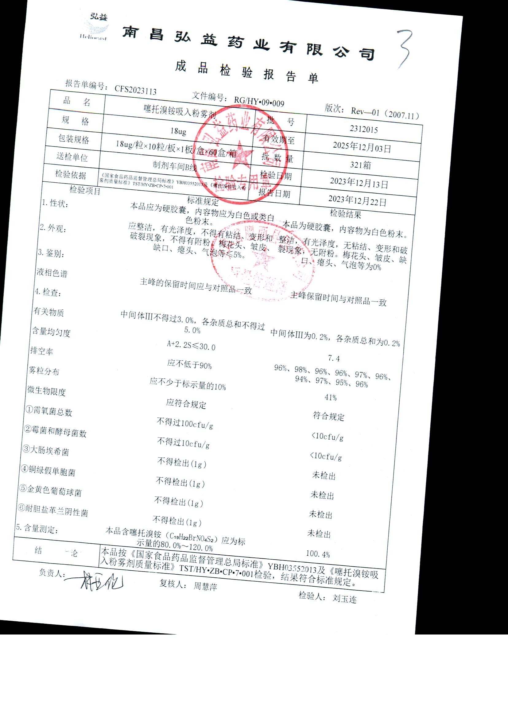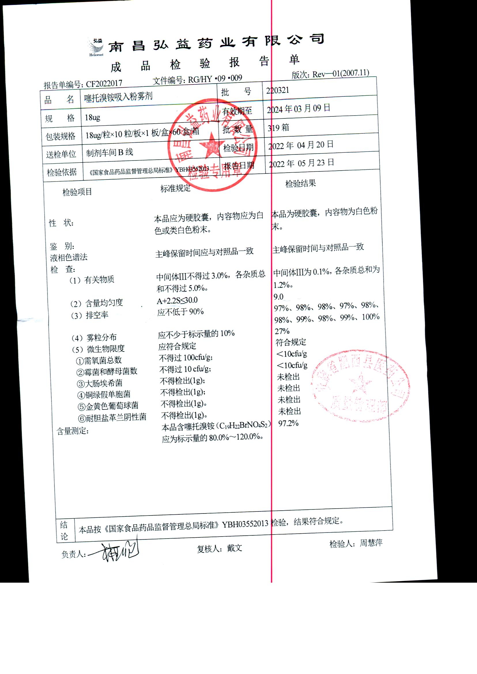 噻托溴铵吸入粉雾剂 | 18微克*10粒(一个Helioeast粉雾吸入器) | 220321 | 查看详情 |