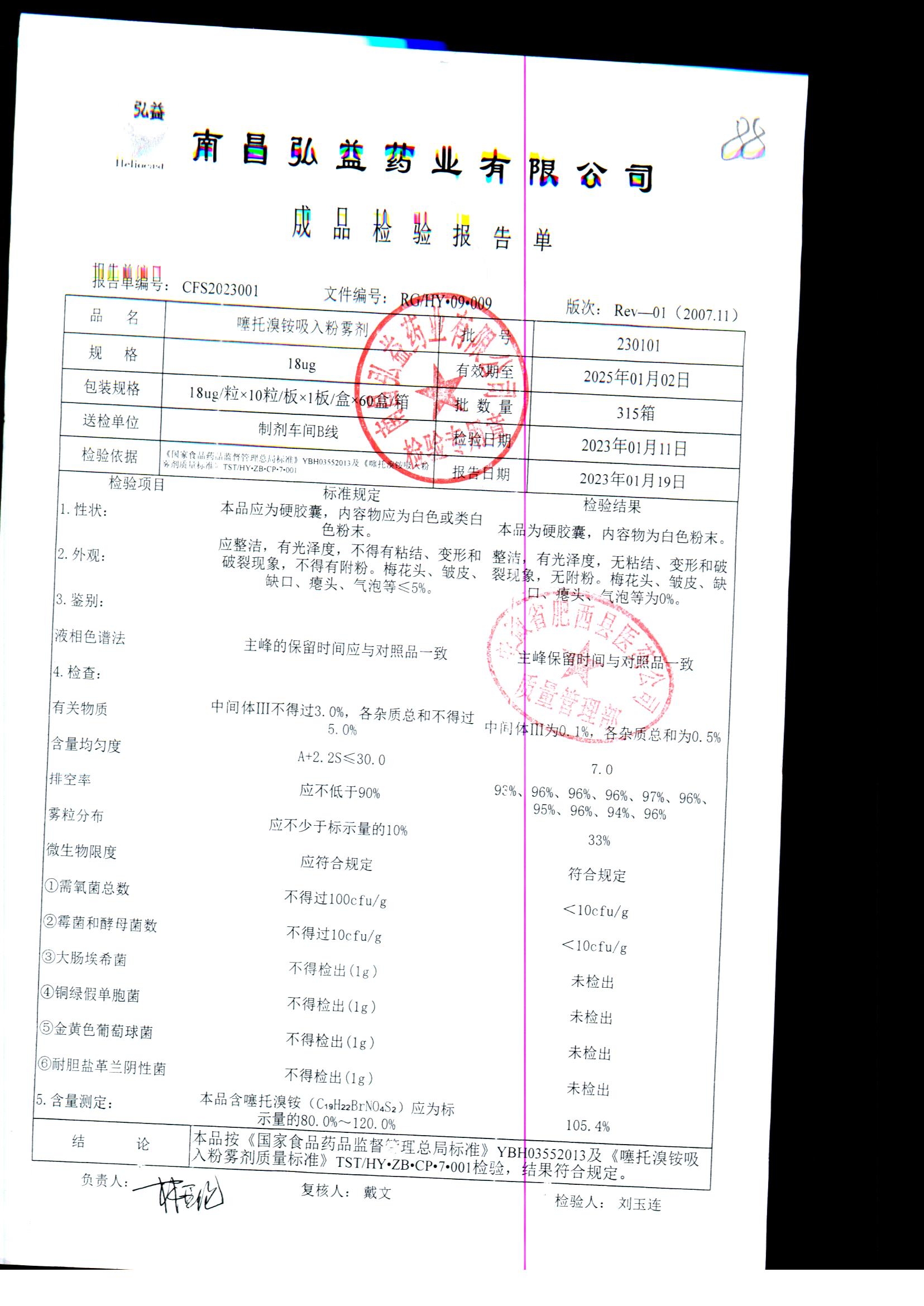 噻托溴铵吸入粉雾剂 | 18微克*10粒(一个Helioeast粉雾吸入器) | 2312015 | 查看详情 |