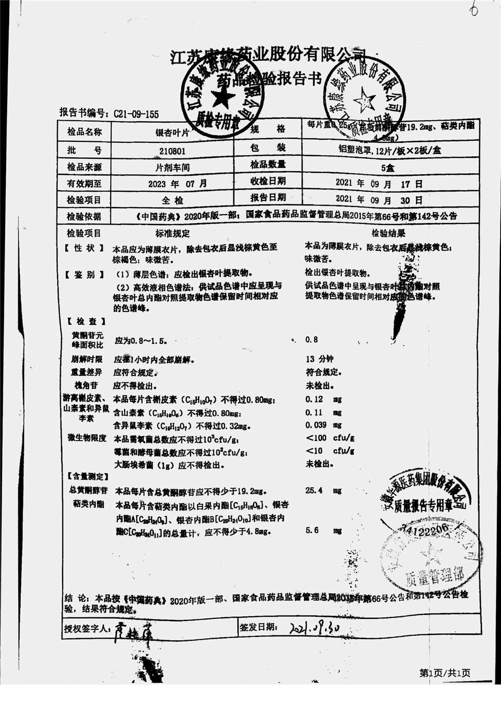 0.25g*12片*2板/盒(含总黄酮醇苷19.2mg、萜类内酯4.8mg)